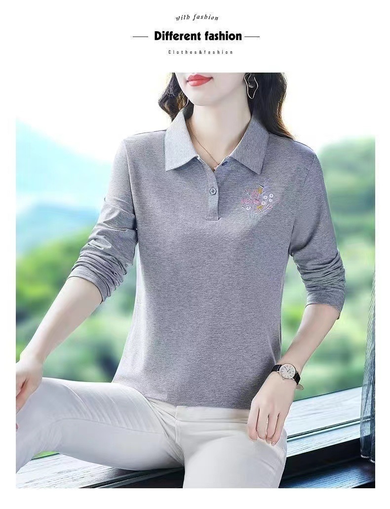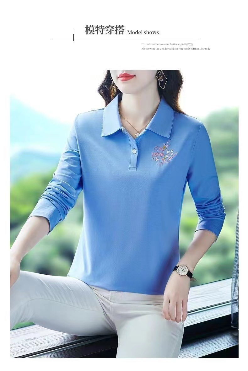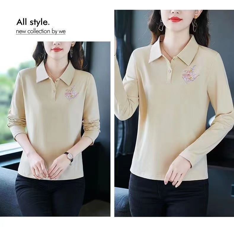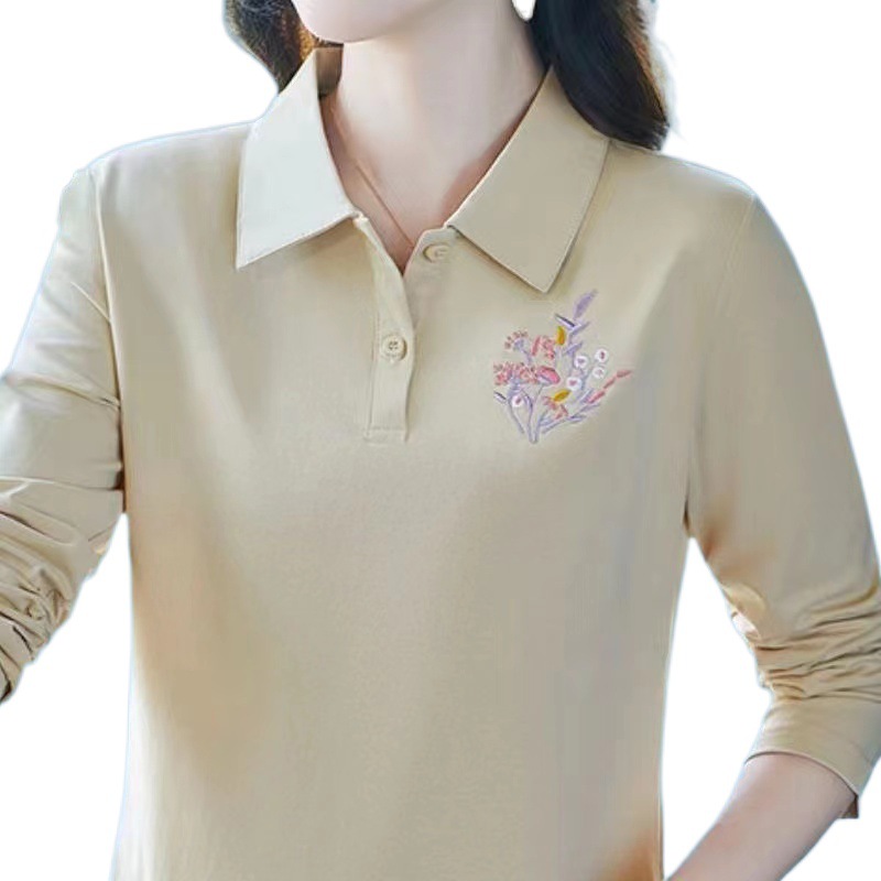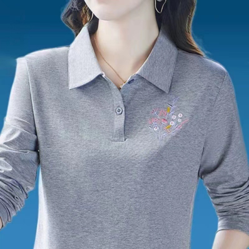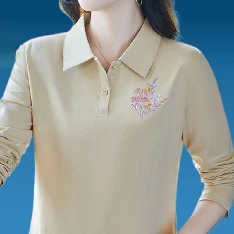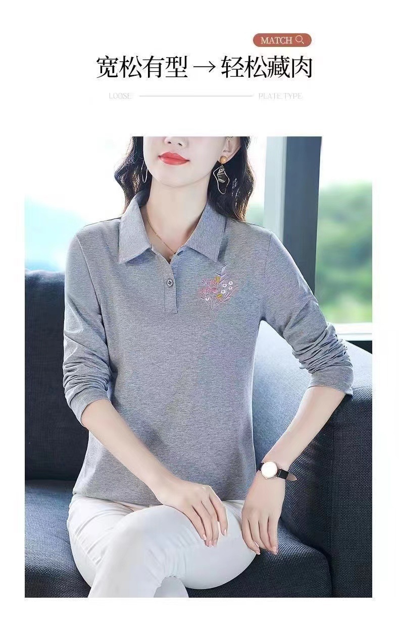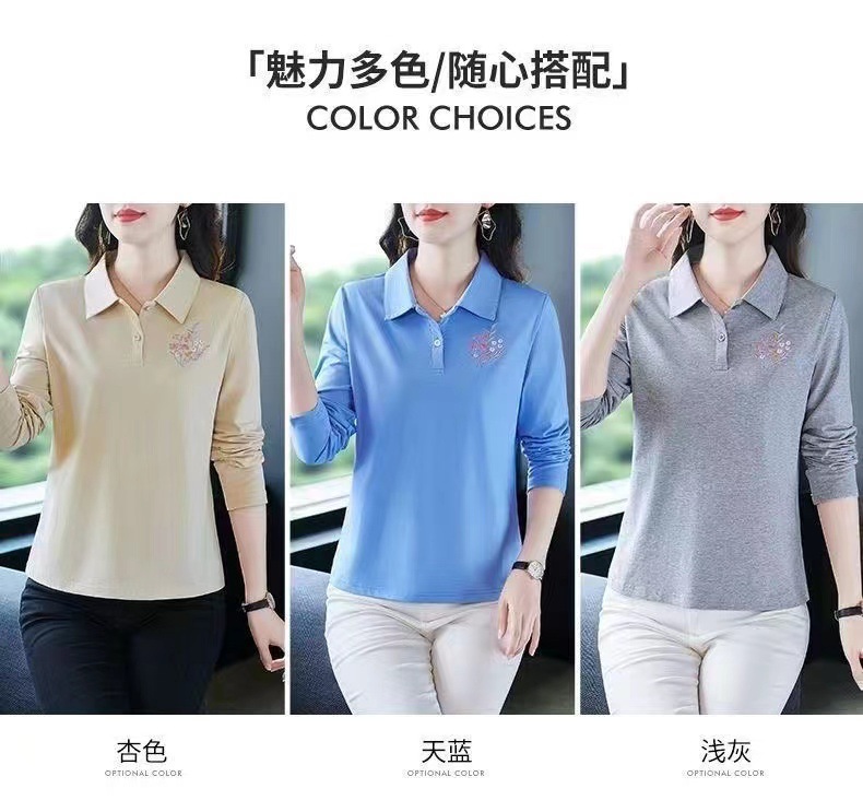 2023新款翻领长袖T恤女秋季休闲中年妈妈上衣洋气时尚打底polo衫