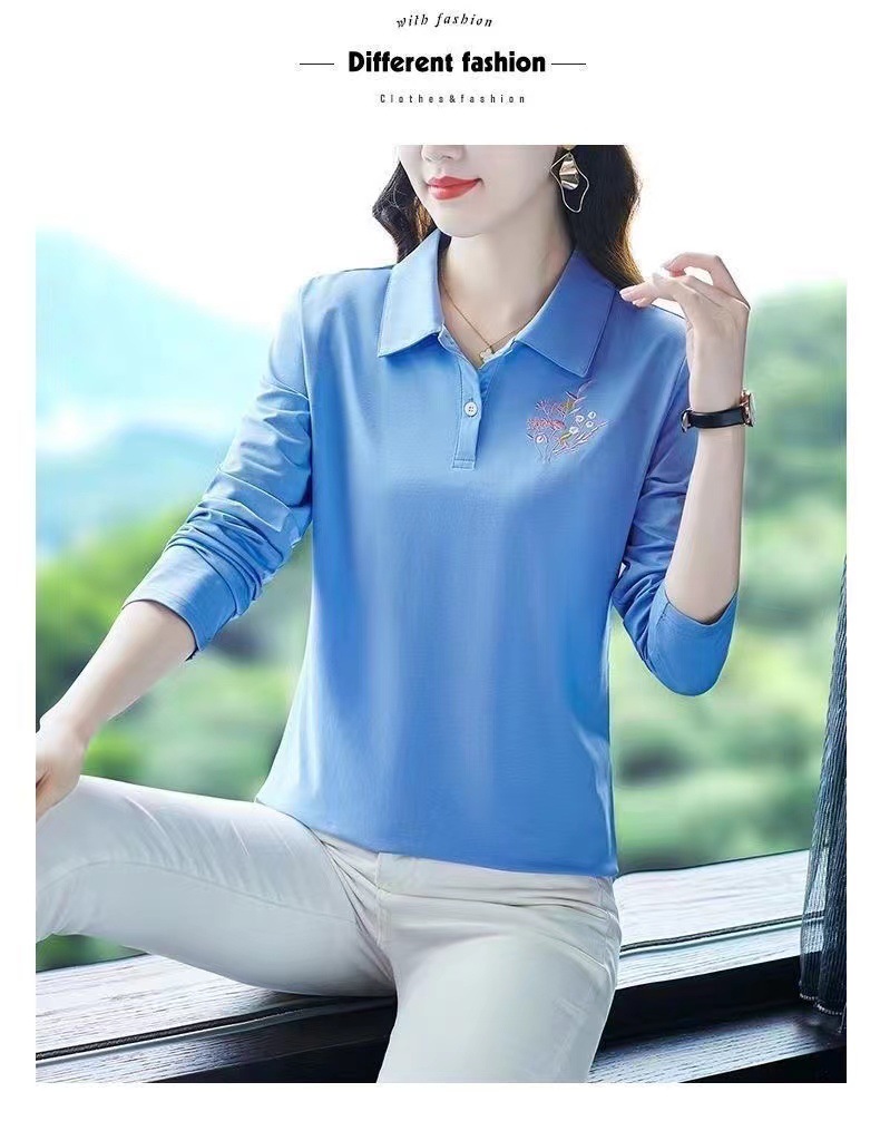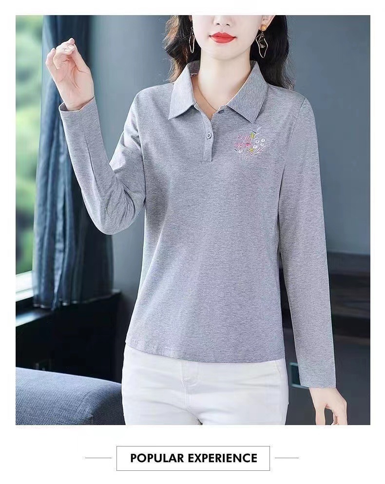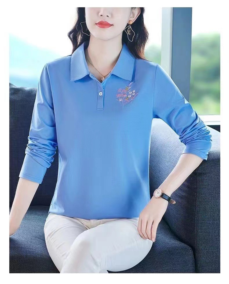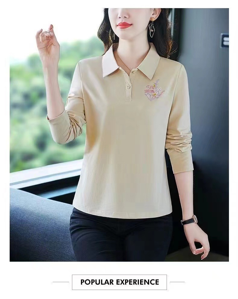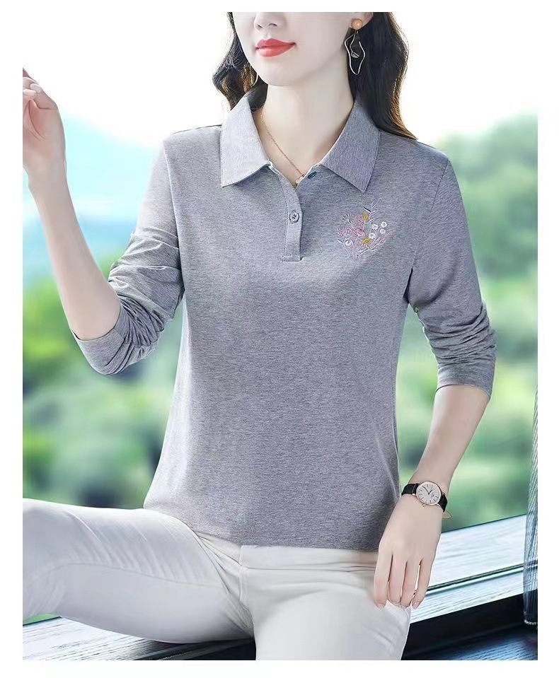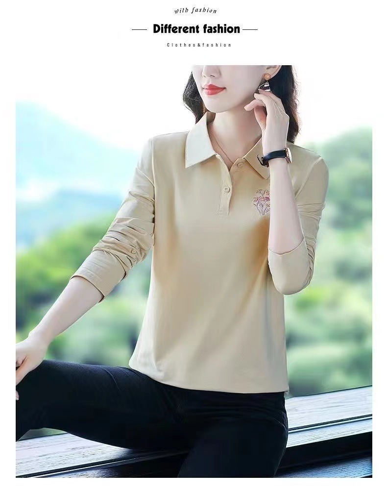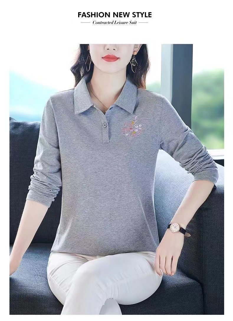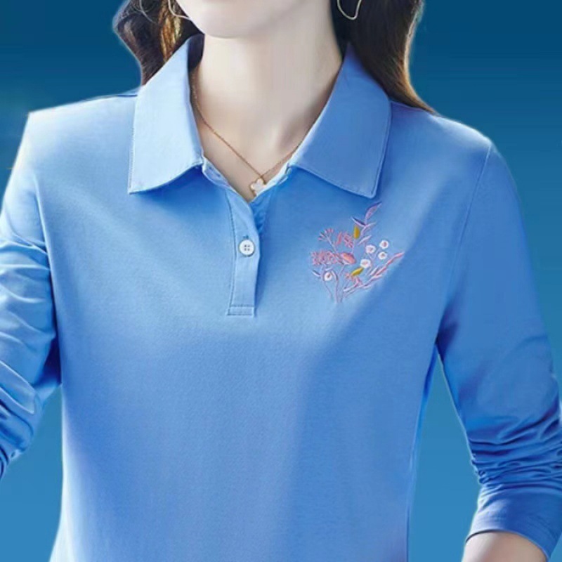 2023新款翻领长袖T恤女秋季休闲中年妈妈上衣洋气时尚打底polo衫