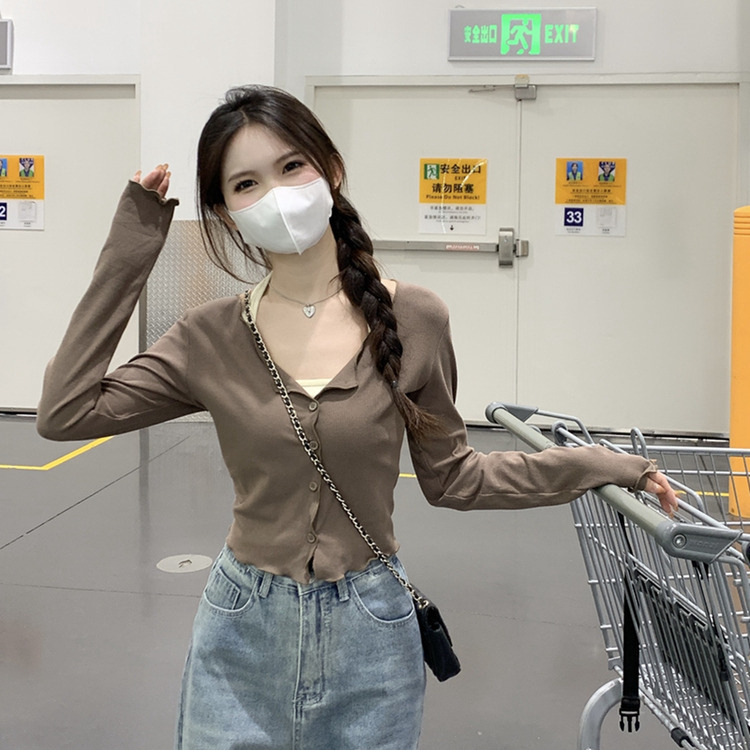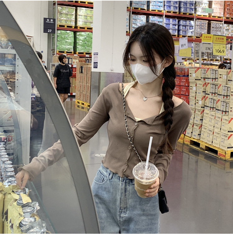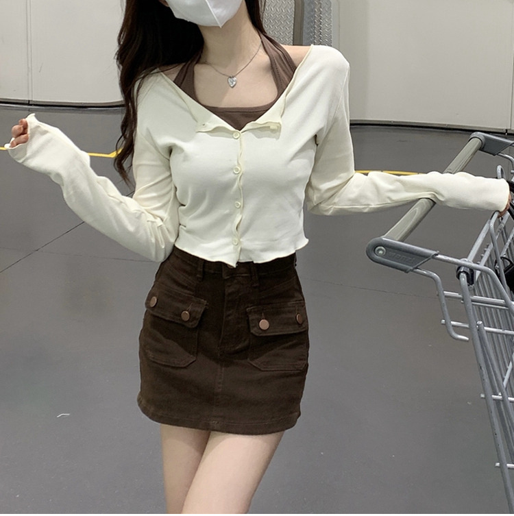 2024秋季新款纯欲挂脖内搭设计感假两件长袖T恤女装打底衫上衣潮
