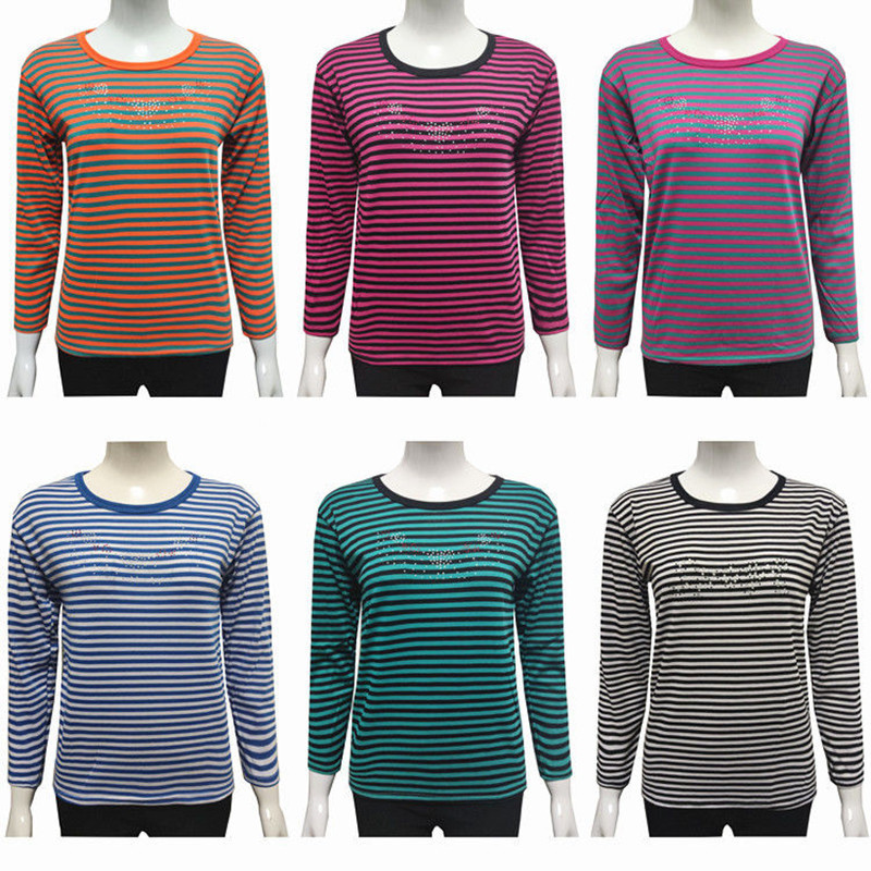 中老年女装春秋妈妈装条纹T恤女士打底衫翻领长袖t恤女地摊上衣服