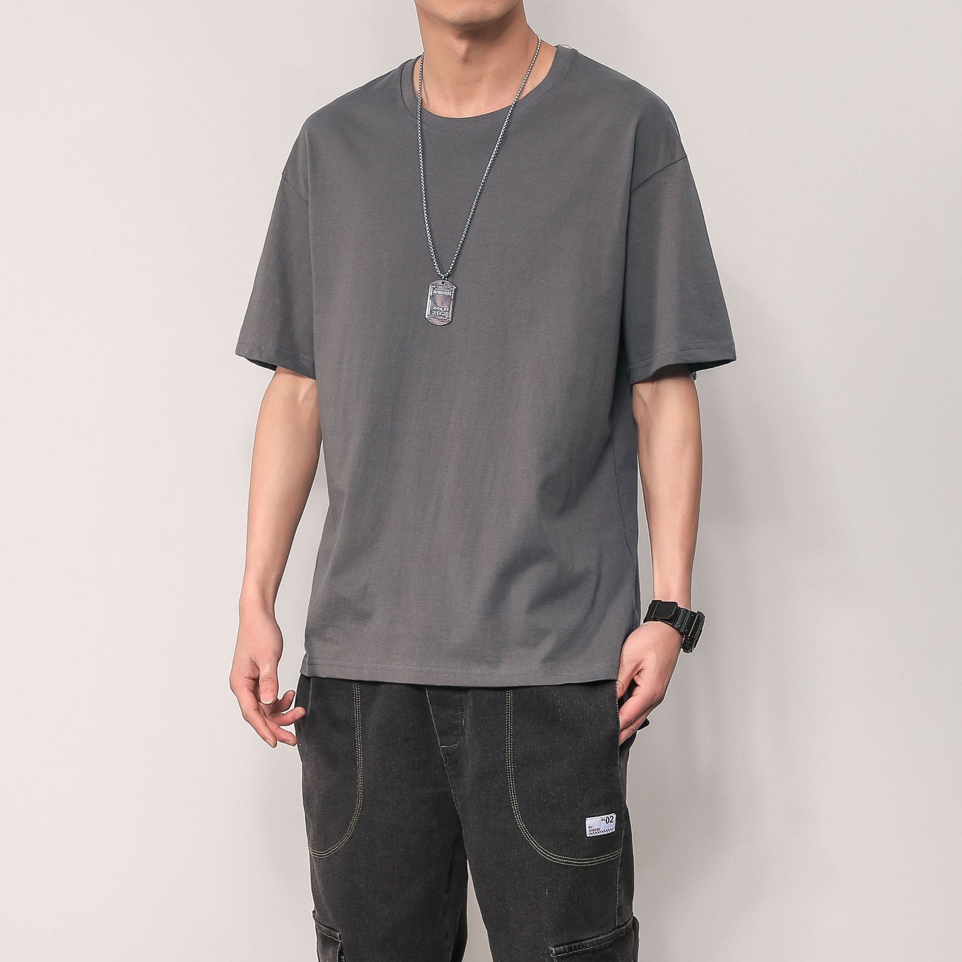 长袖t恤男士宽松纯色上衣春夏季ins潮流内搭打底情侣百搭潮牌卫衣