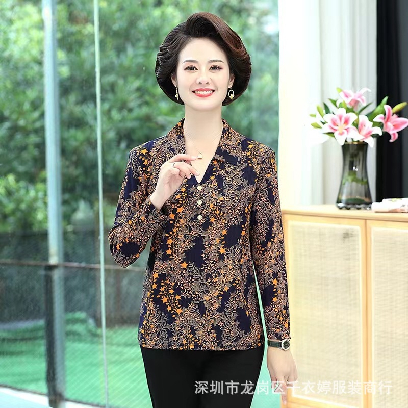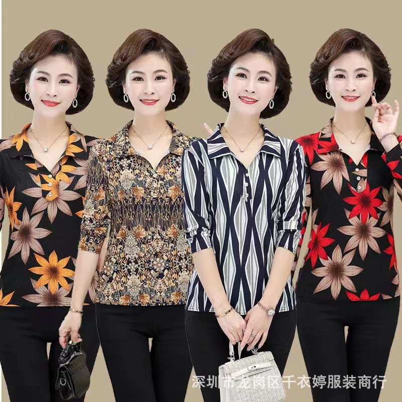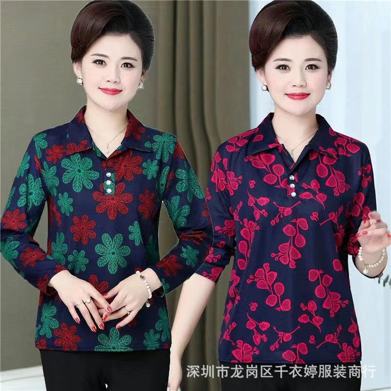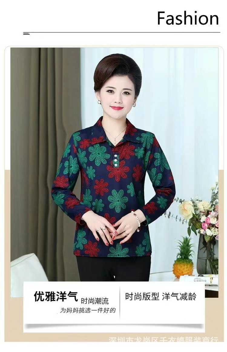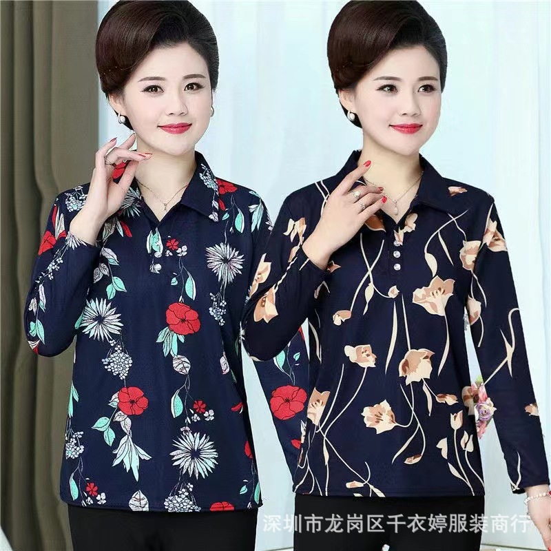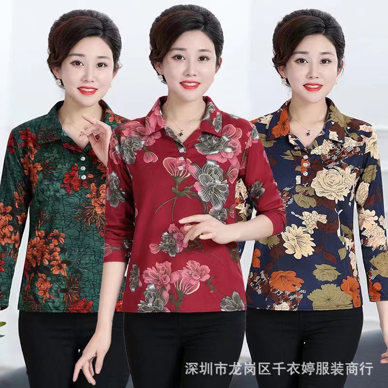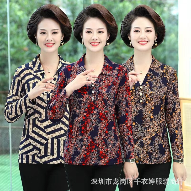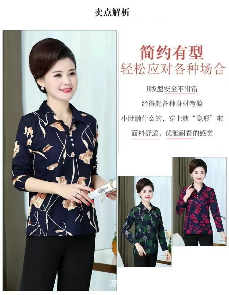 中老年冰丝套头长袖春秋季女装妈妈装上衣T恤阿婆打底女衫地摊