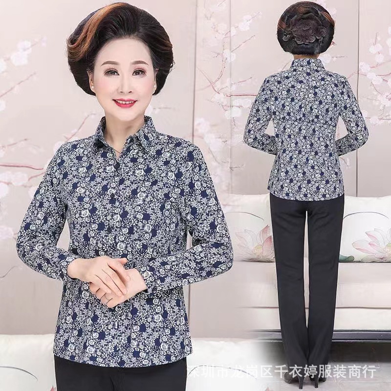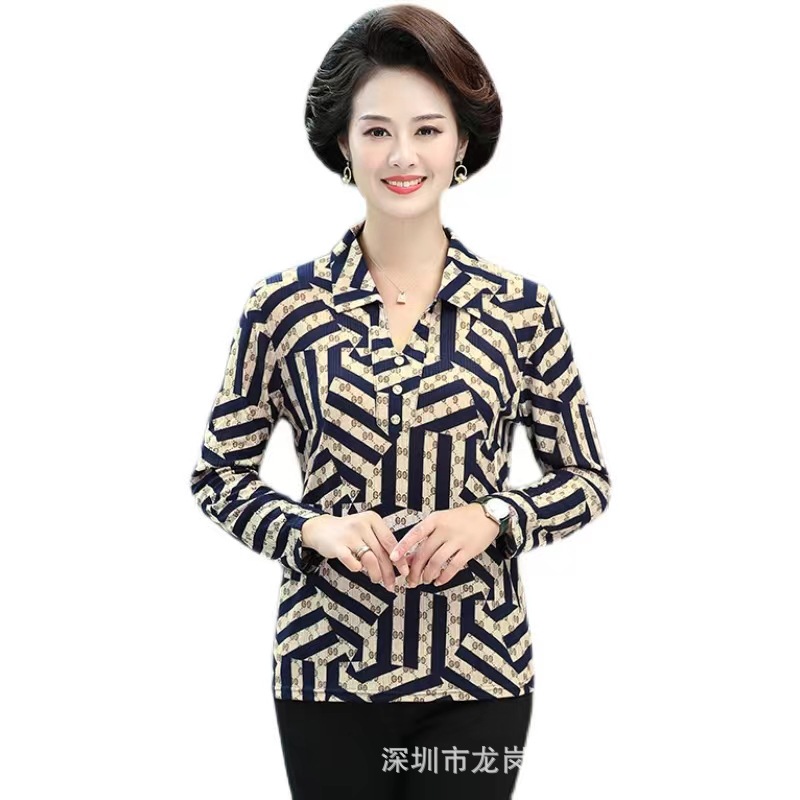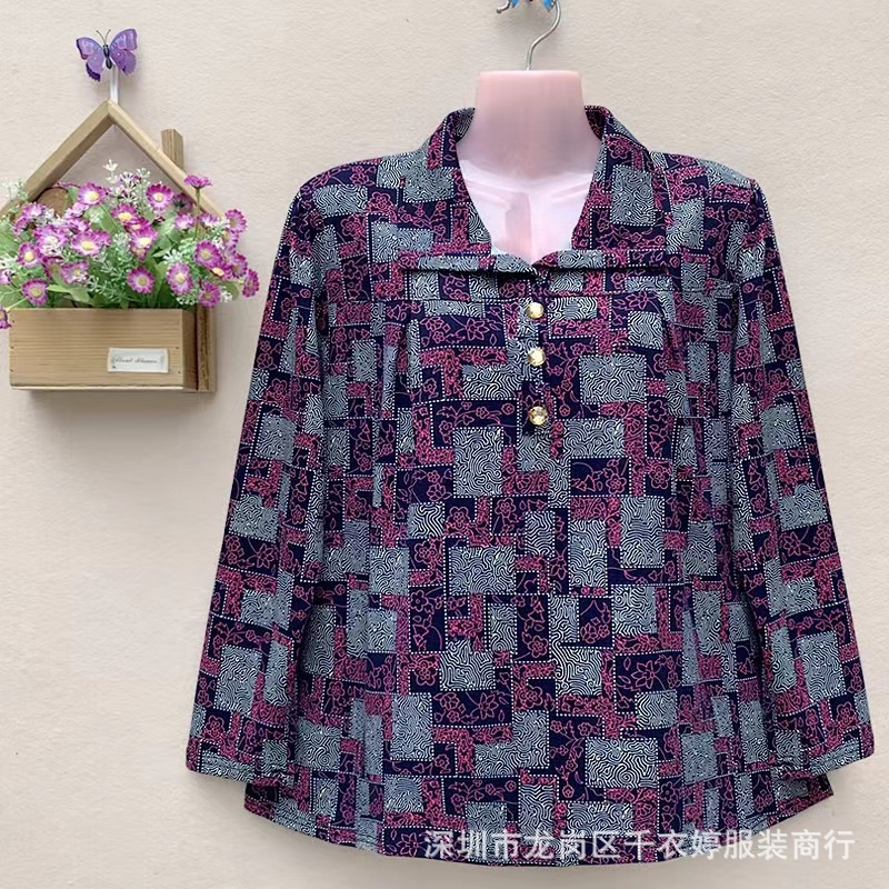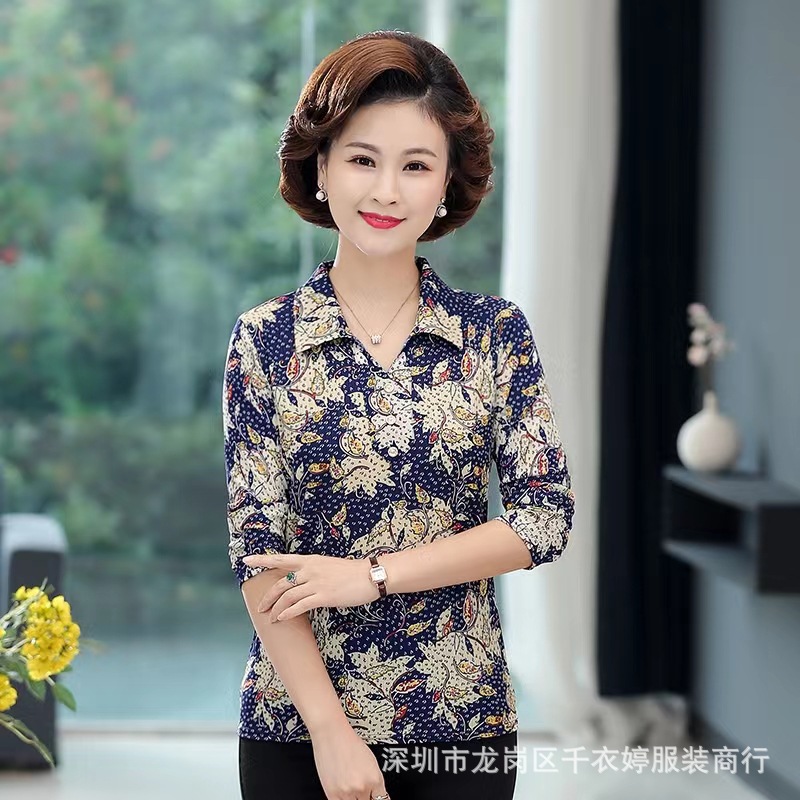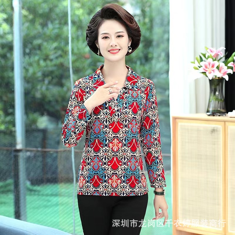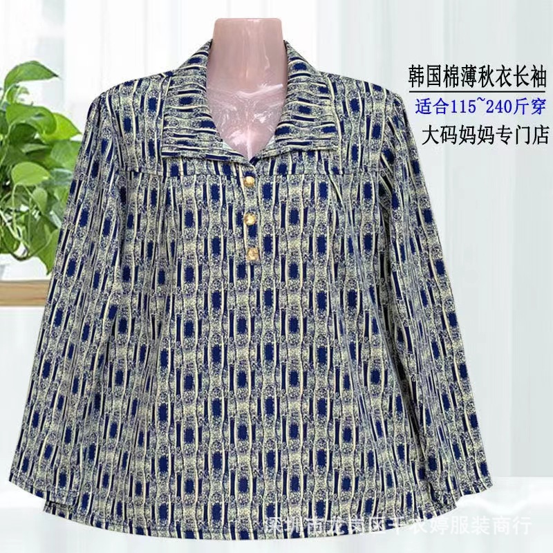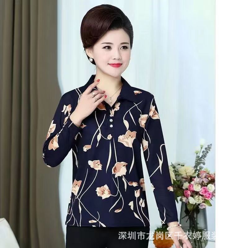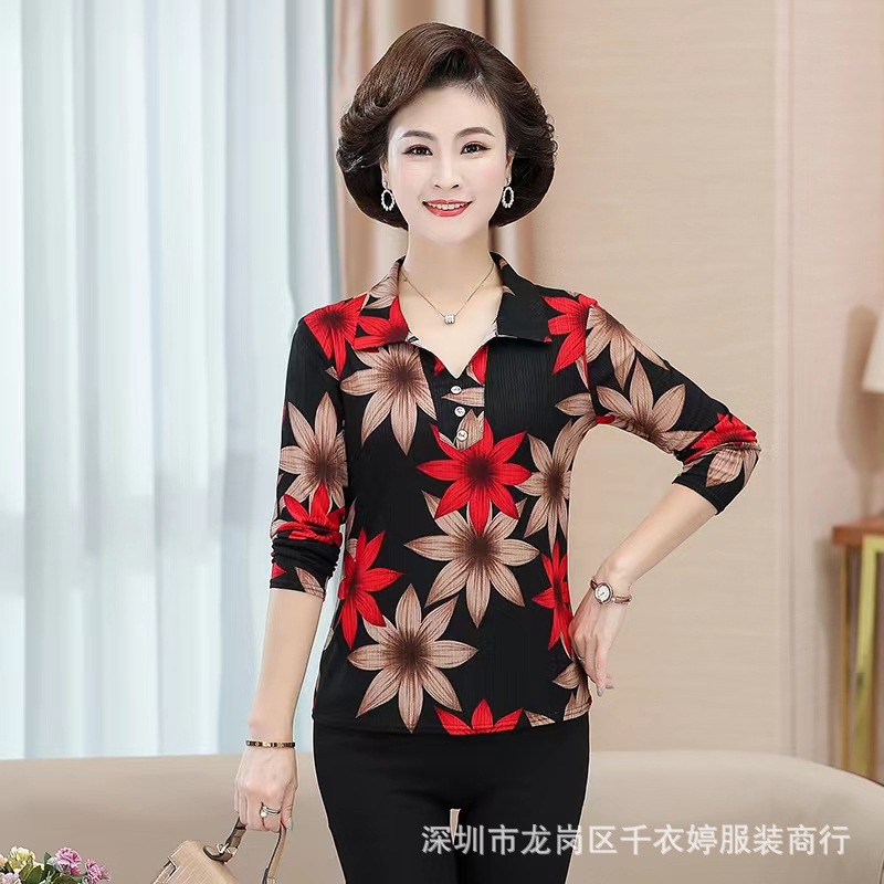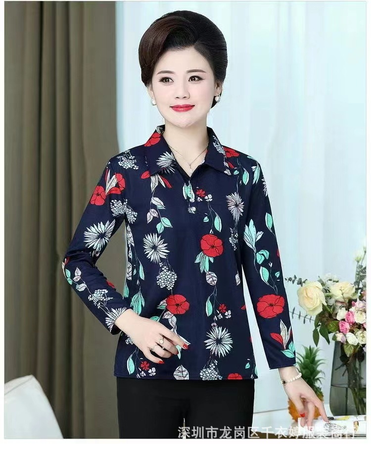 中老年冰丝套头长袖春秋季女装妈妈装上衣T恤阿婆打底女衫地摊
