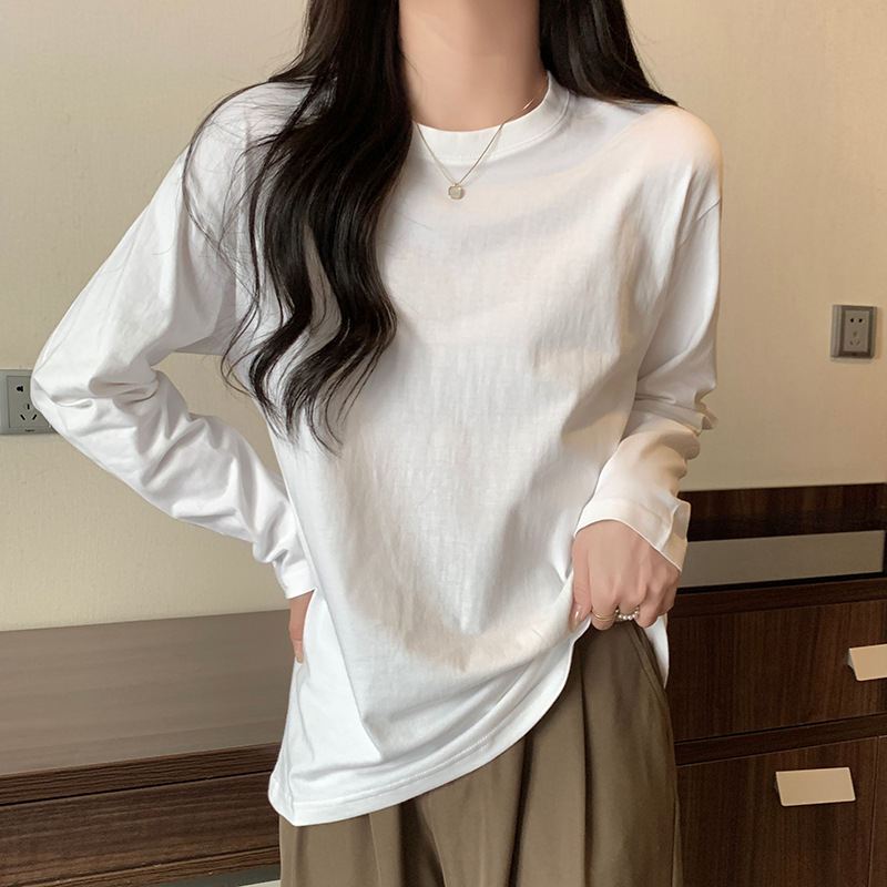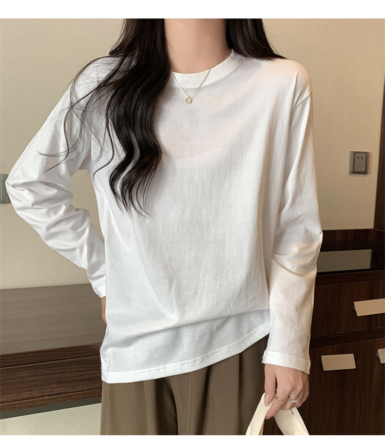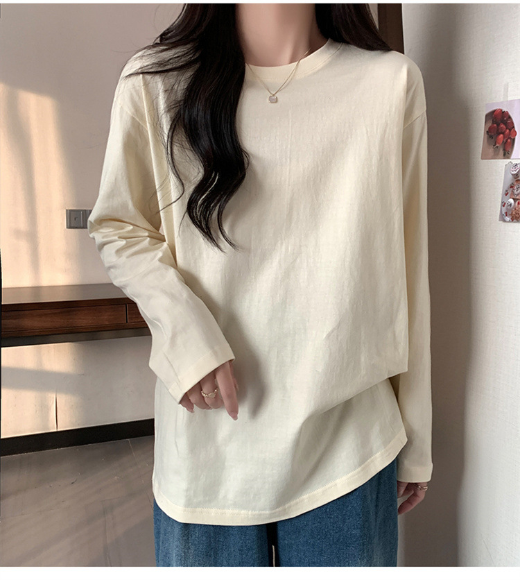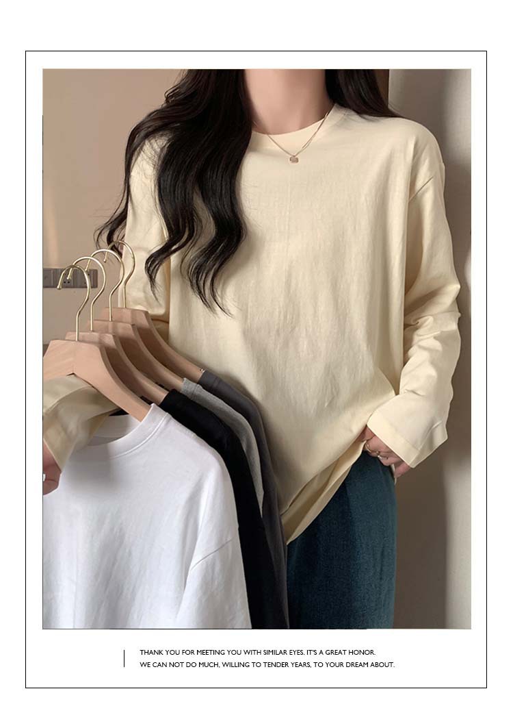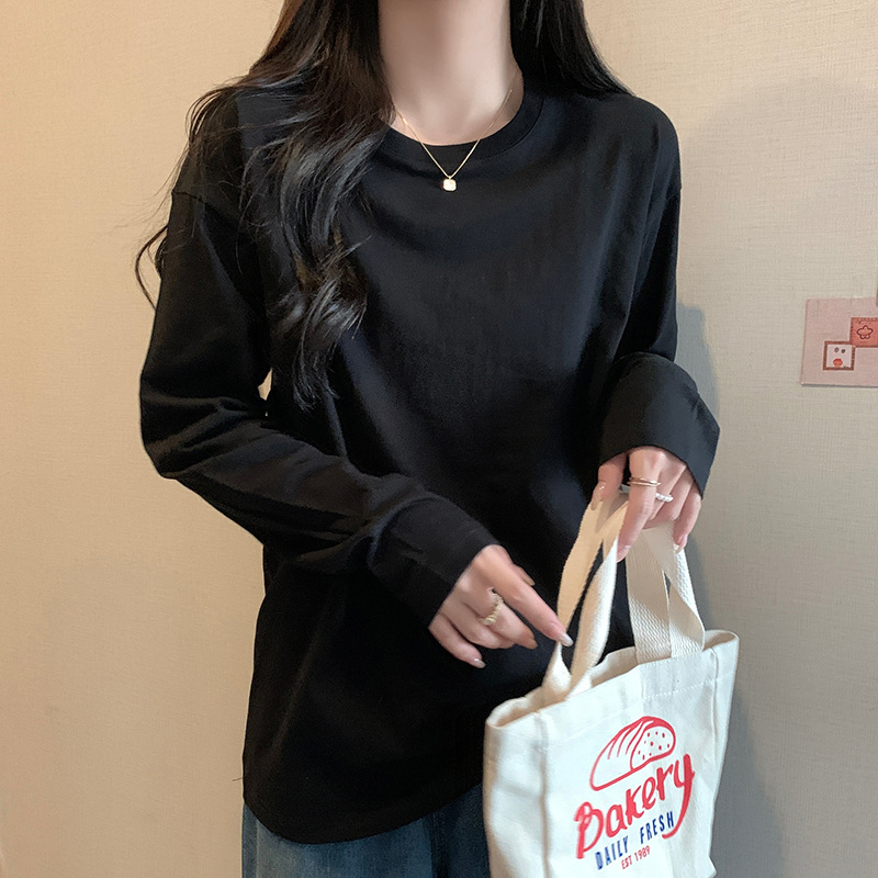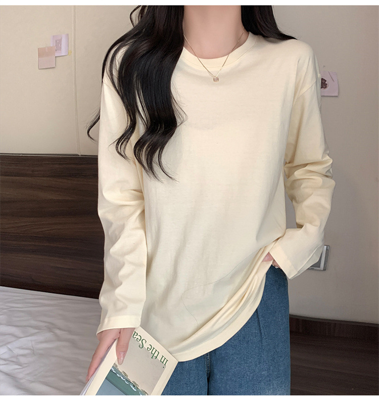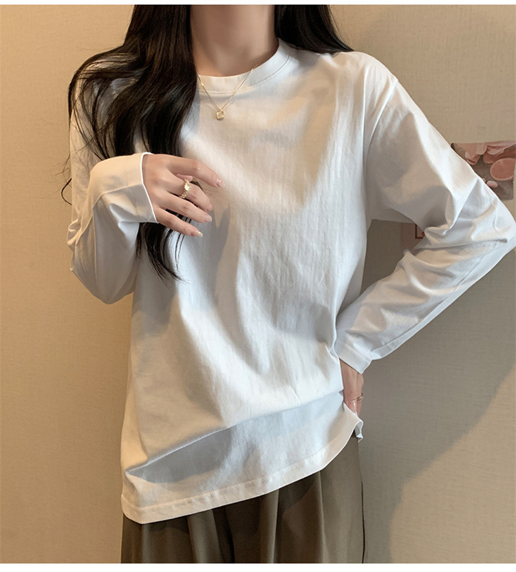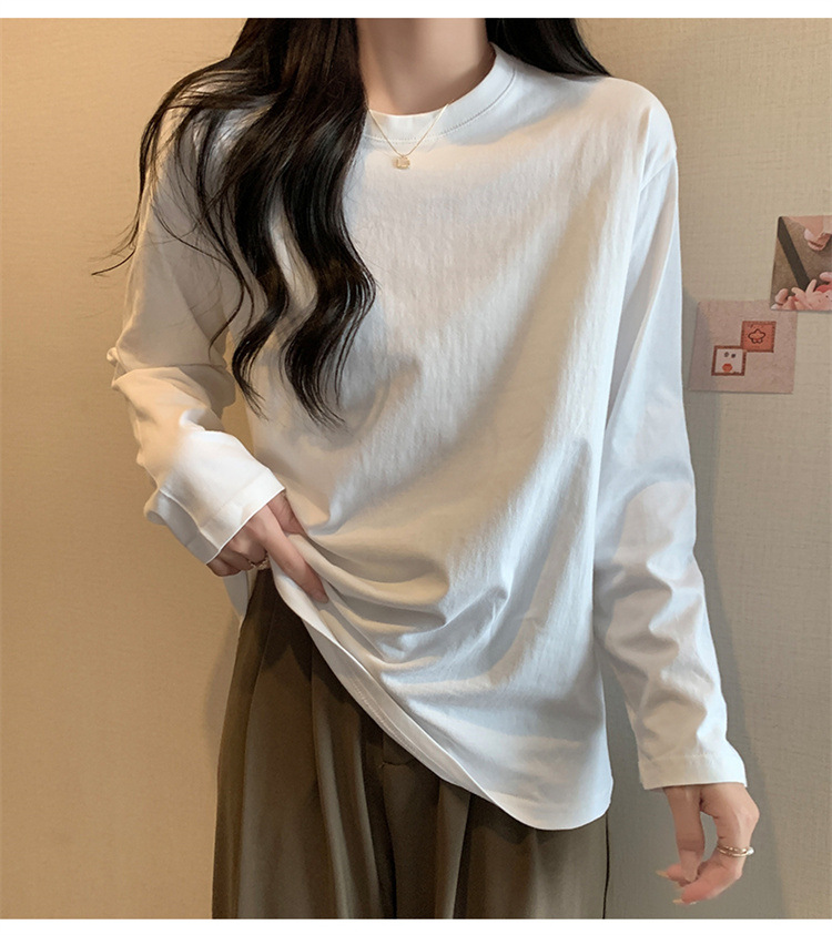 纯色内搭白色打底衫长袖T恤女款春秋2024新款宽松圆领套头上衣ins