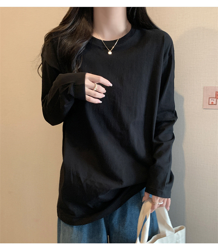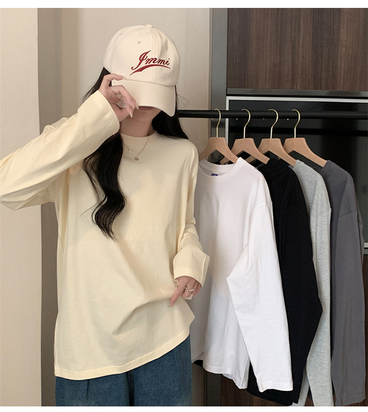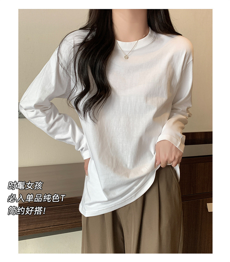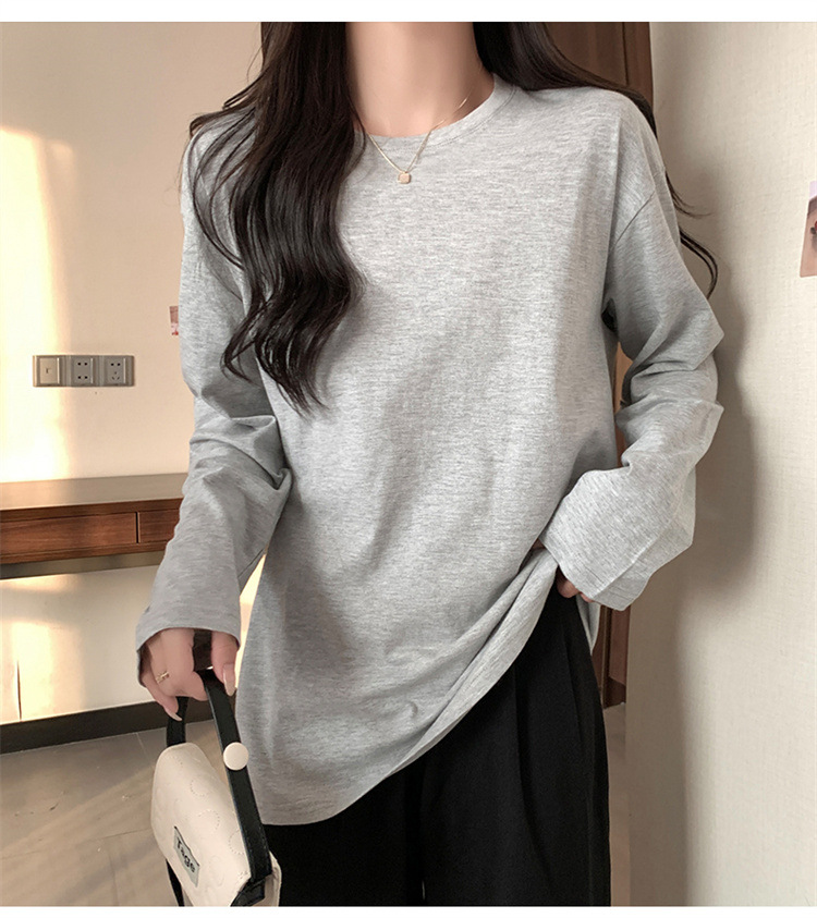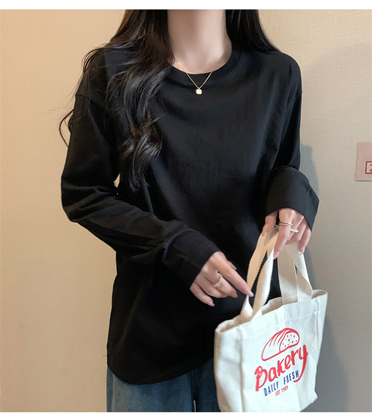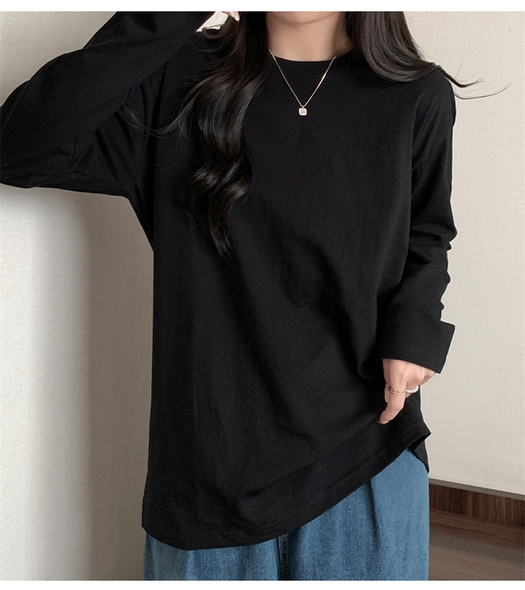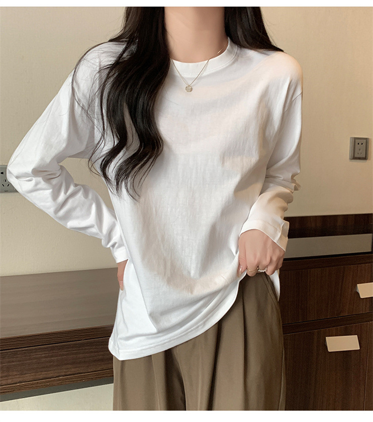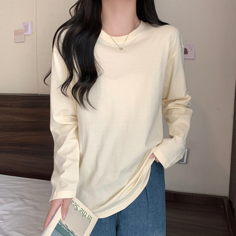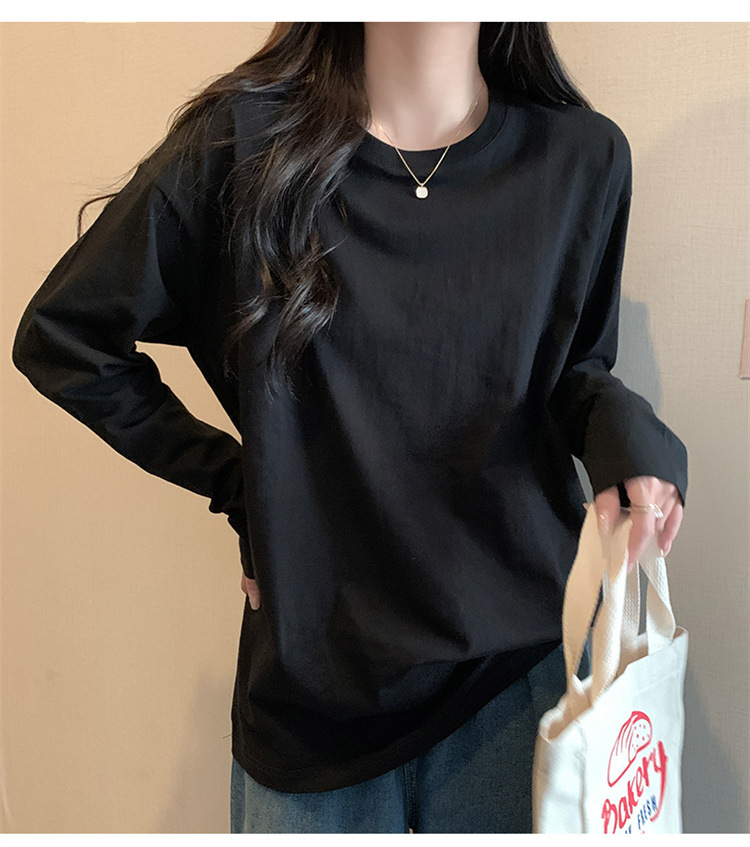纯色内搭白色打底衫长袖T恤女款春秋2024新款宽松圆领套头上衣ins