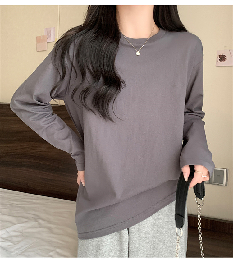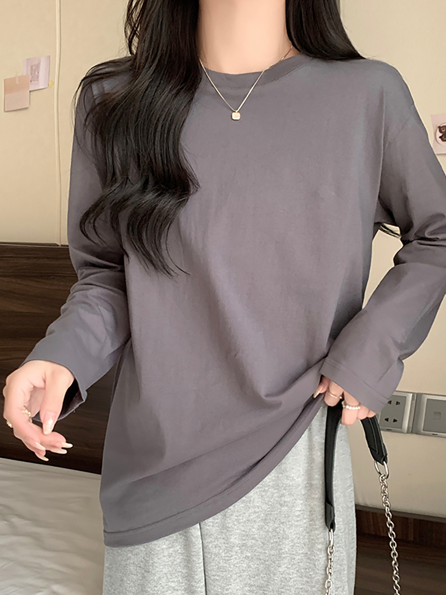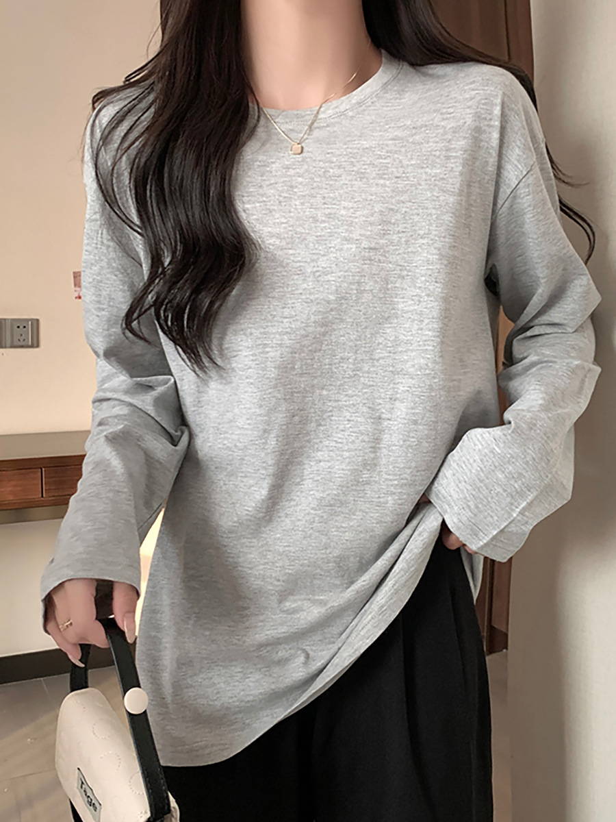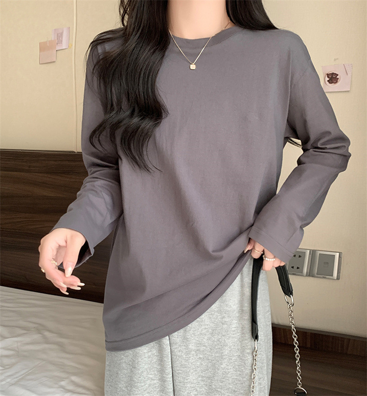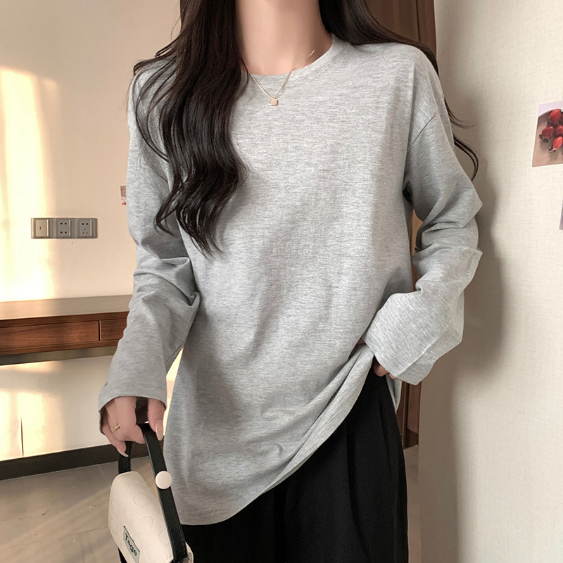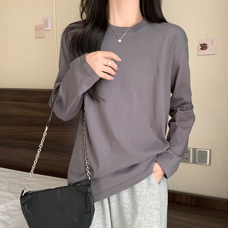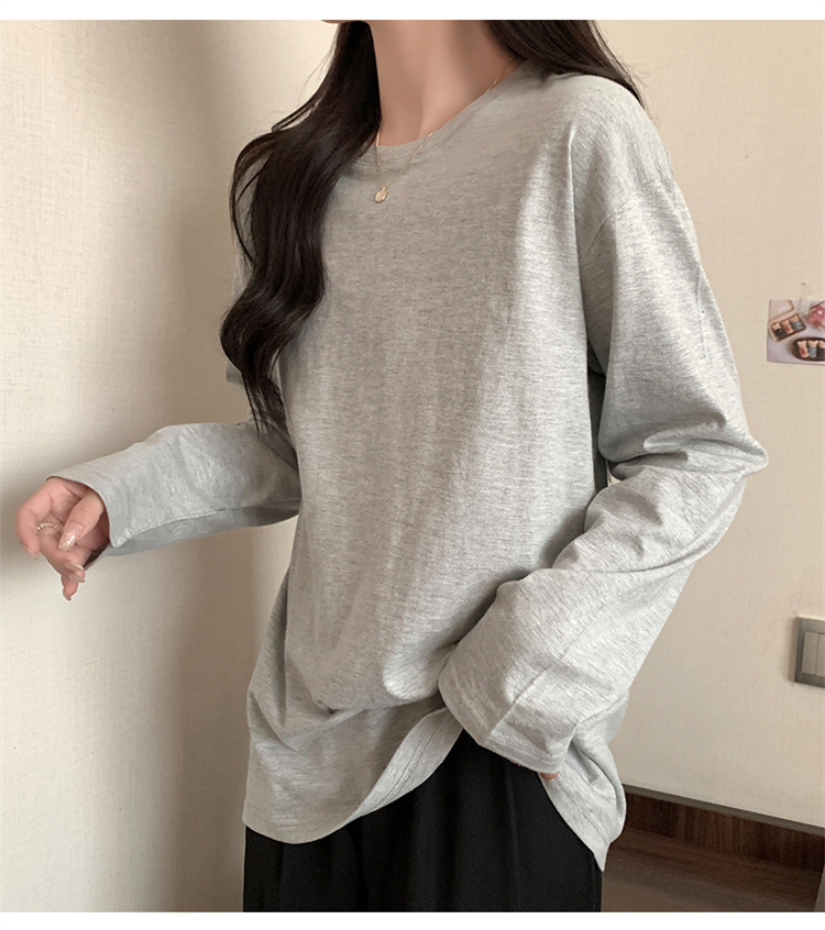 纯色内搭白色打底衫长袖T恤女款春秋2024新款宽松圆领套头上衣ins