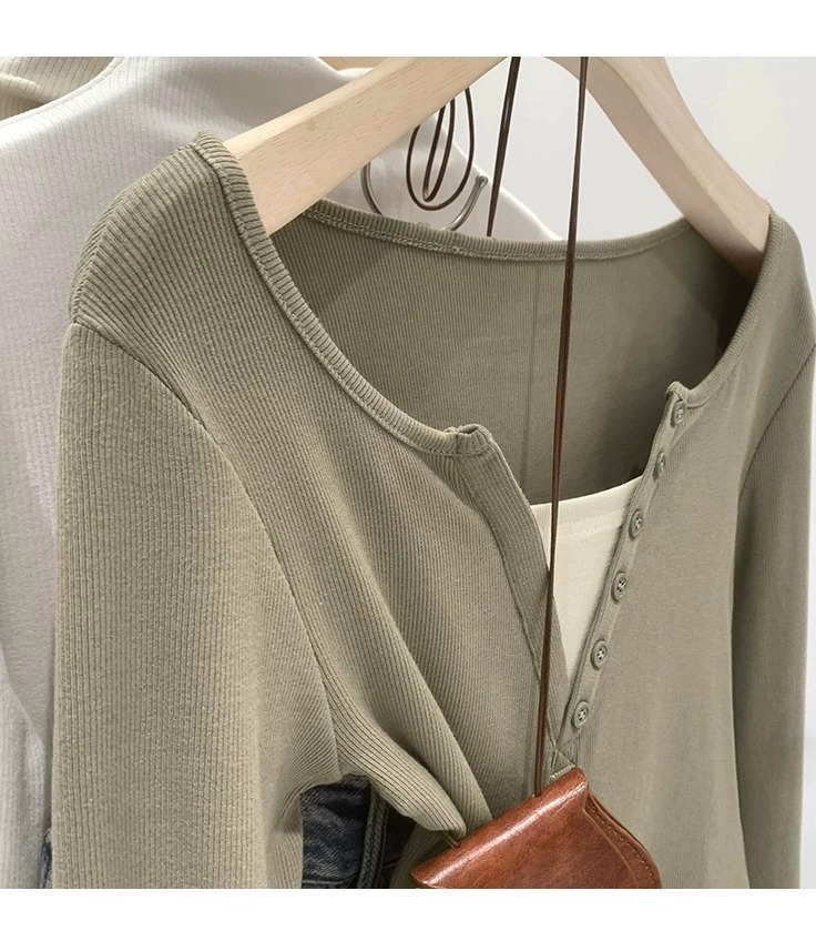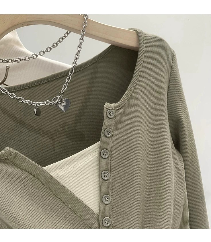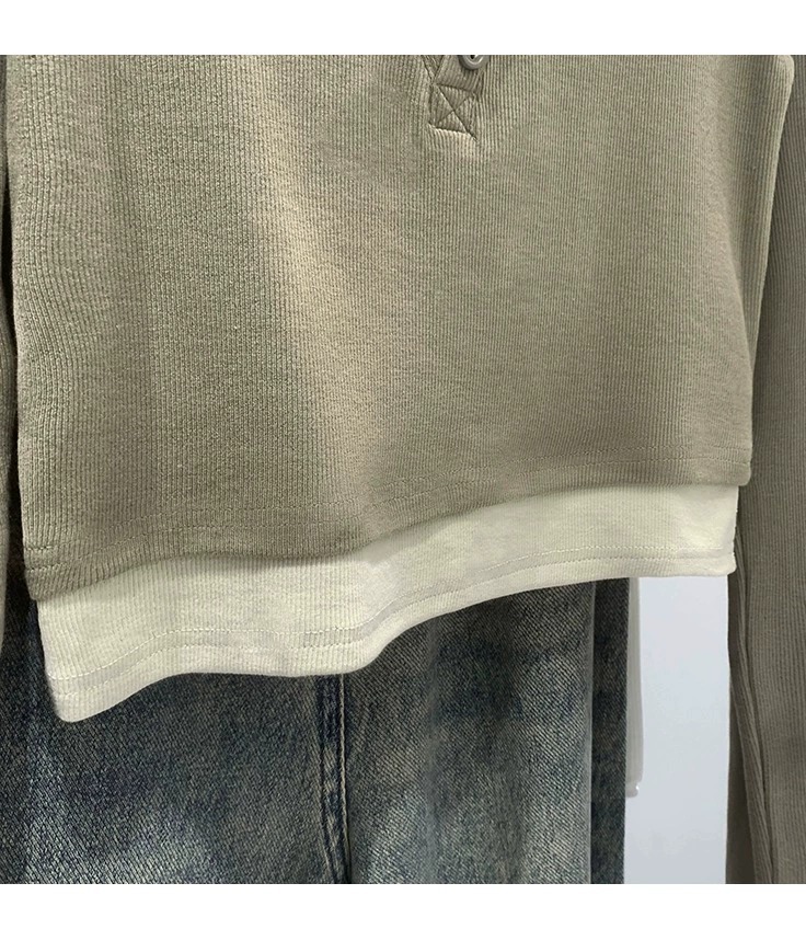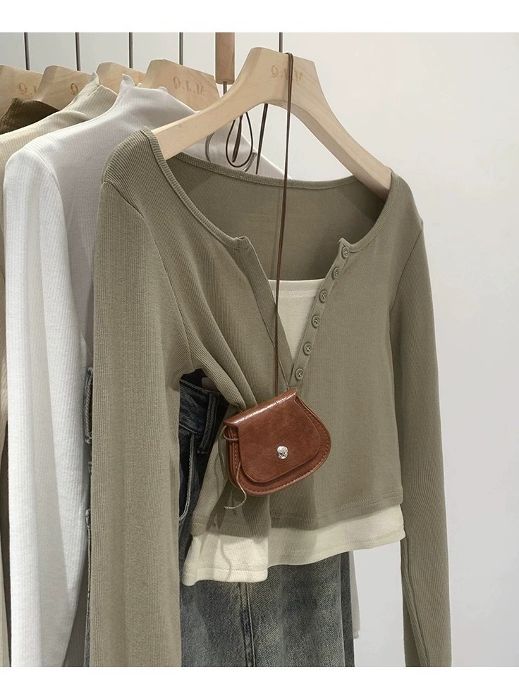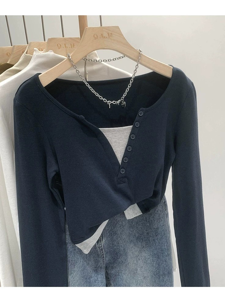 撞色假两件长袖T恤女秋季2024年新款设计感小众V领短款上衣打底衫
