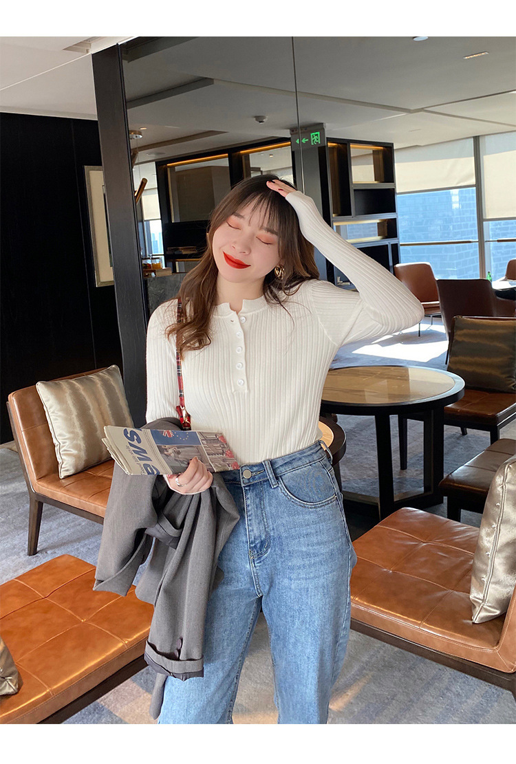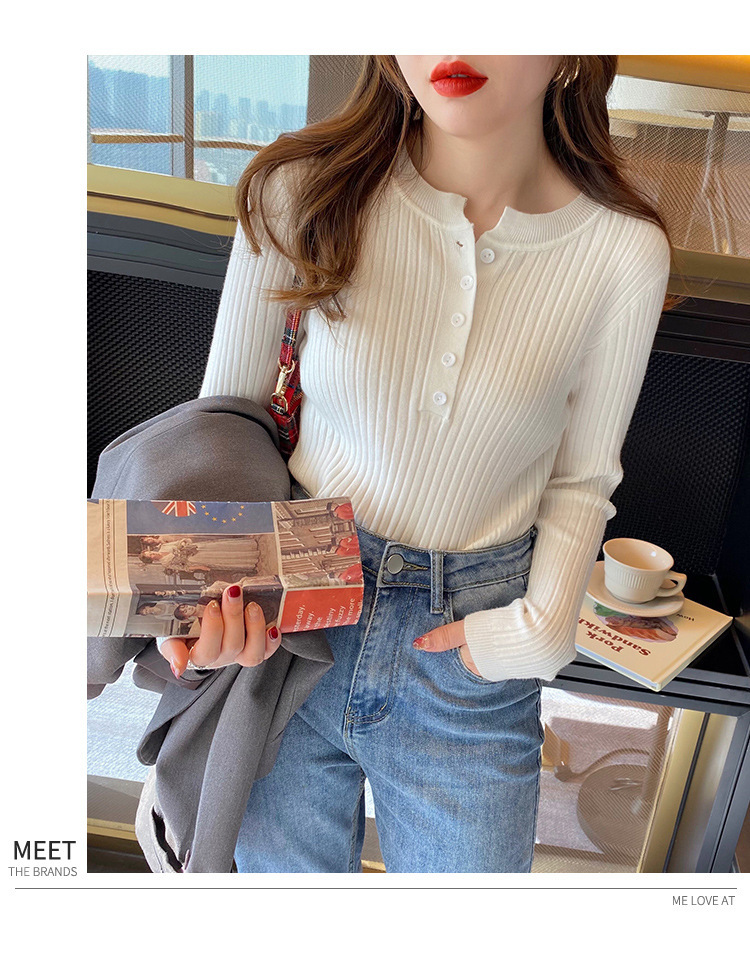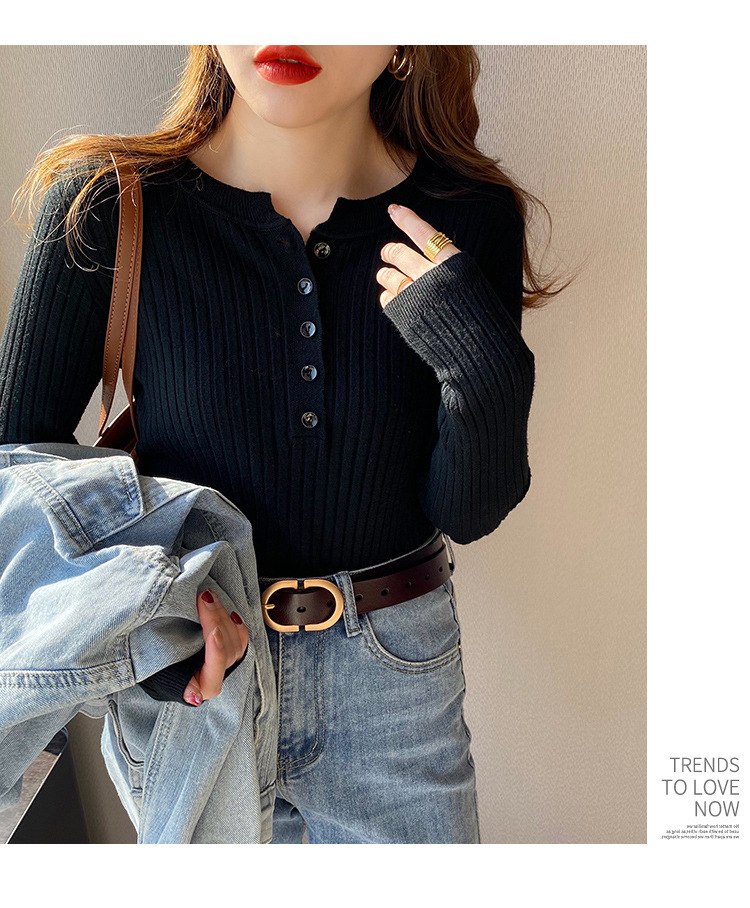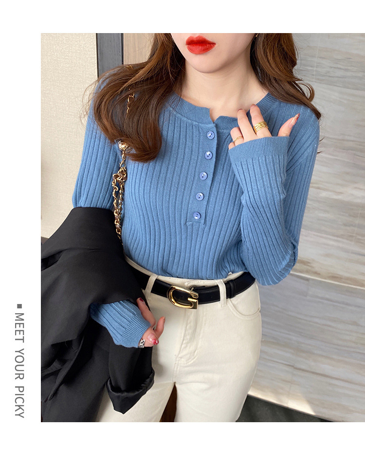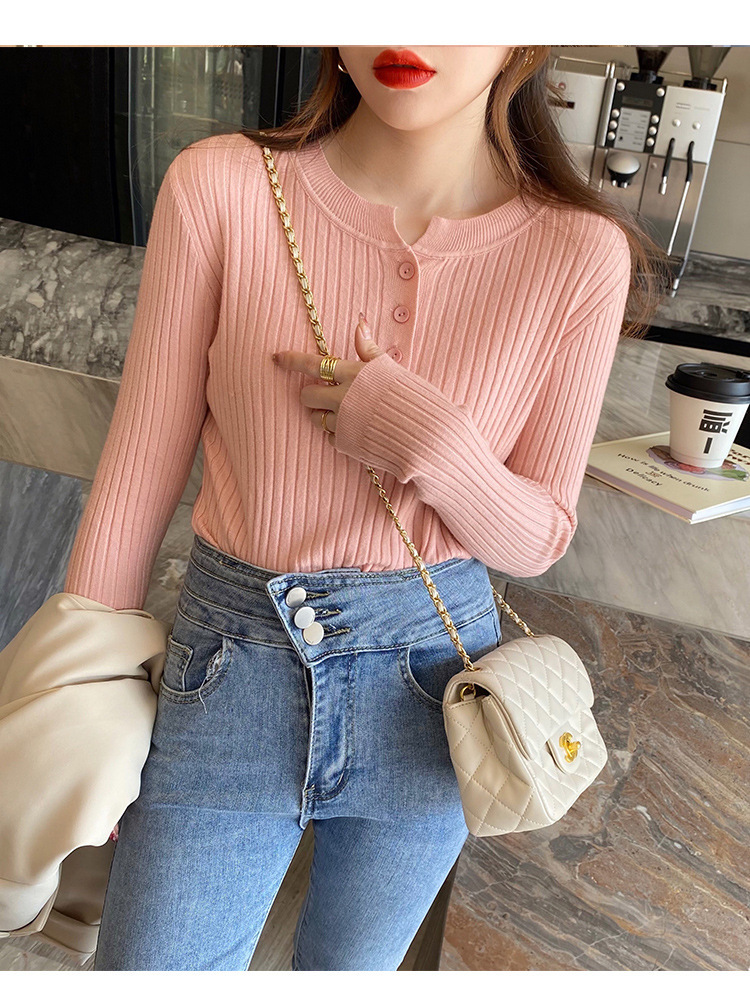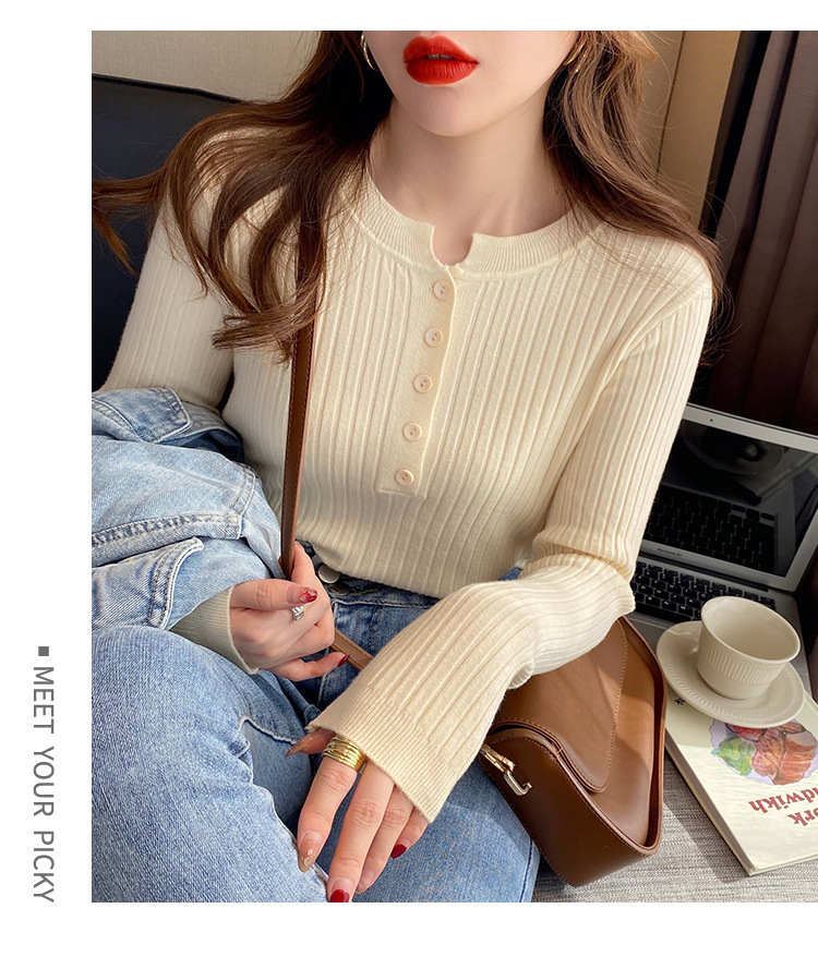圆领针织衫女秋季2024新款洋气内搭打底衫设计感小众毛衣套头上衣