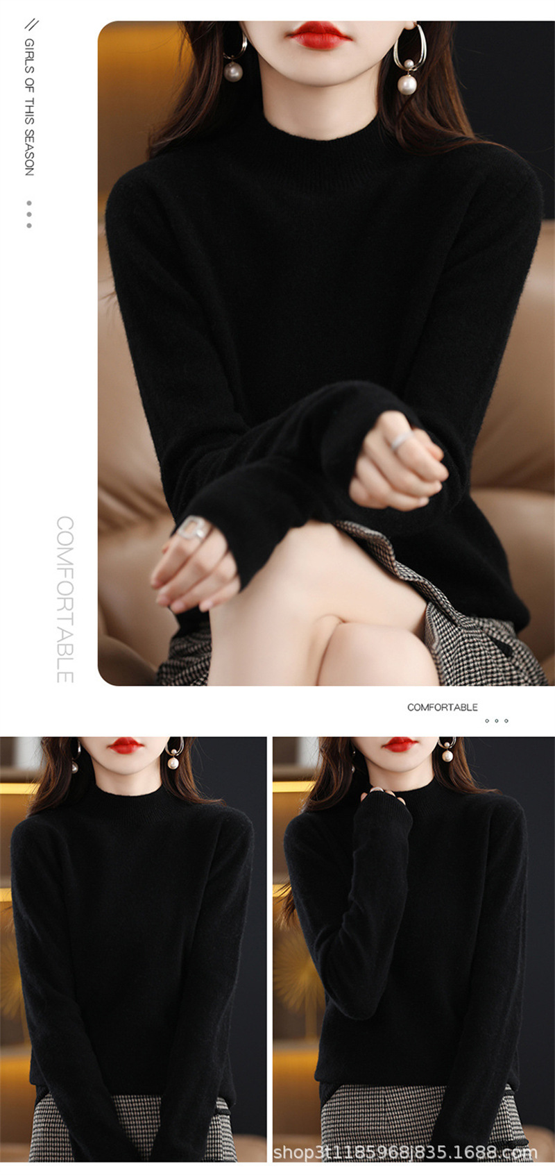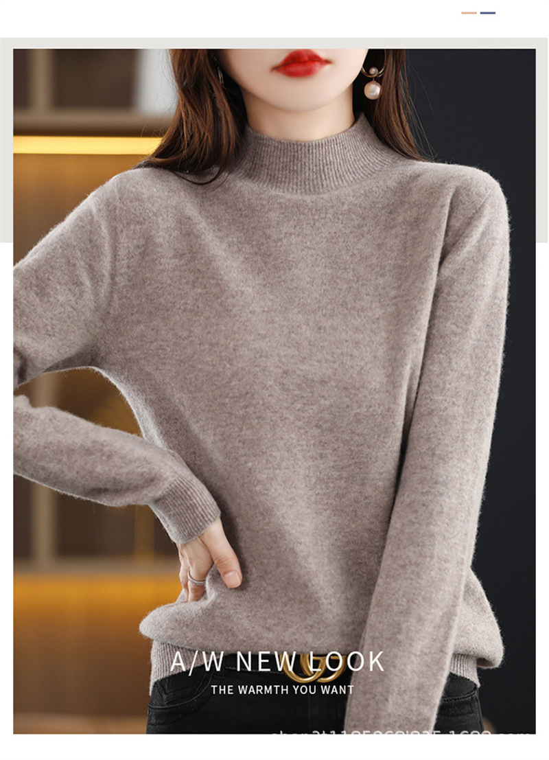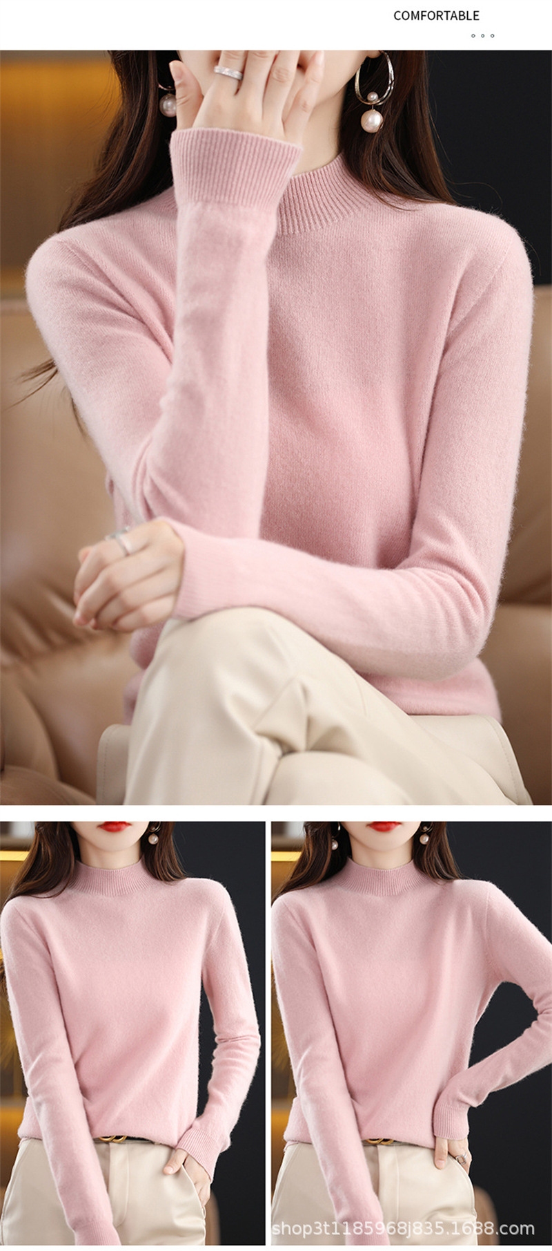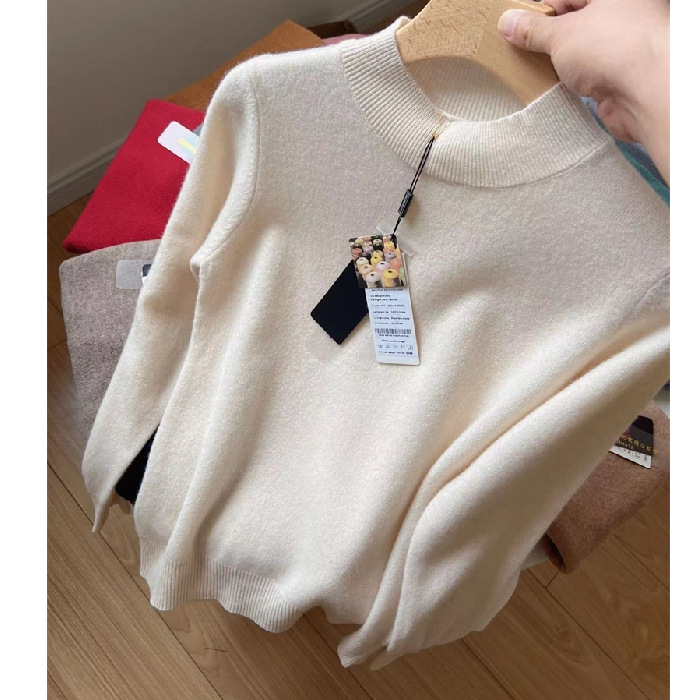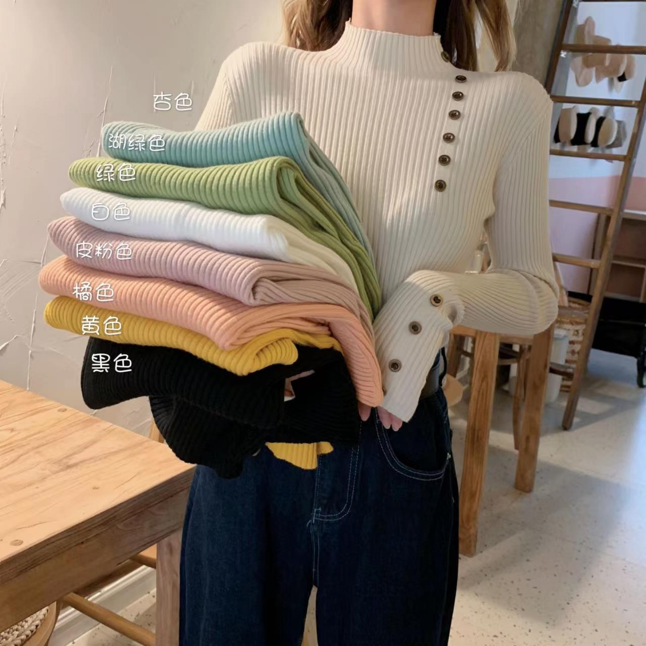 秋冬新款女针织衫半高领纯色毛衣针织打底衫宽松套头长袖上衣