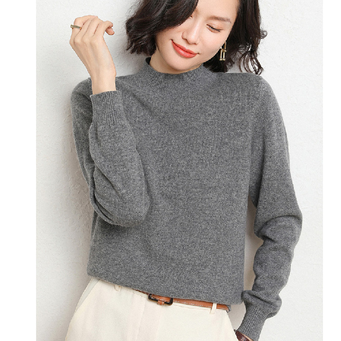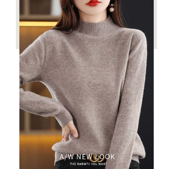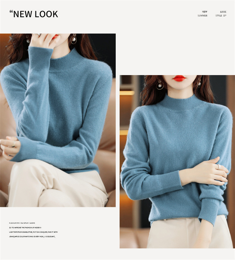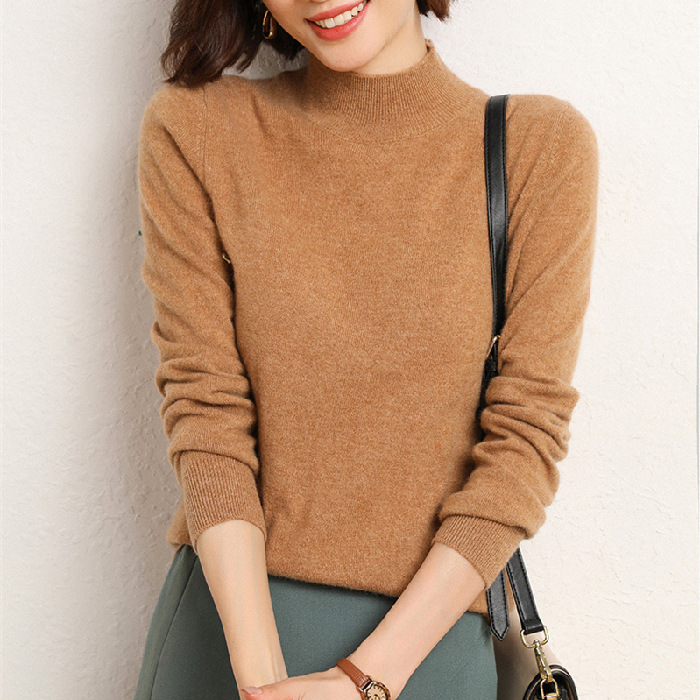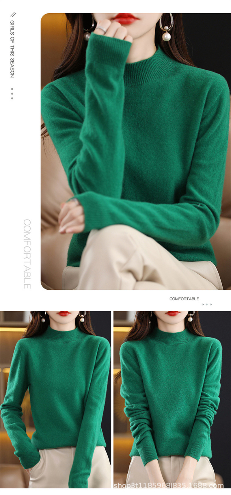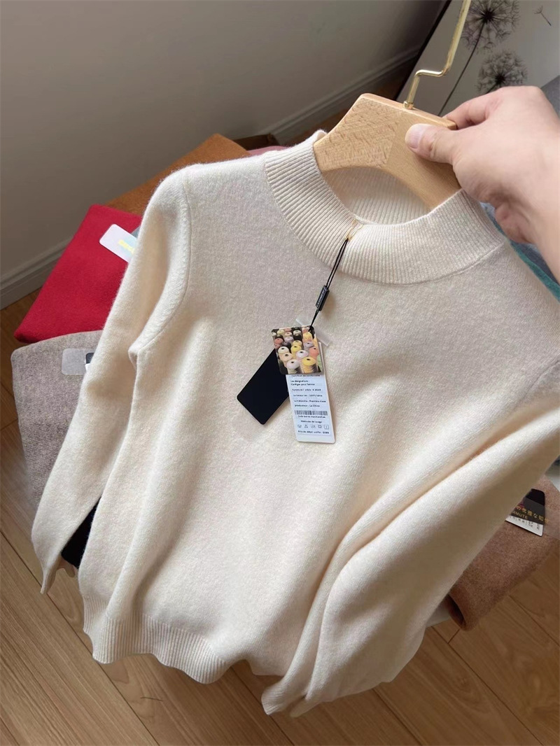 秋冬新款女针织衫半高领纯色毛衣针织打底衫宽松套头长袖上衣