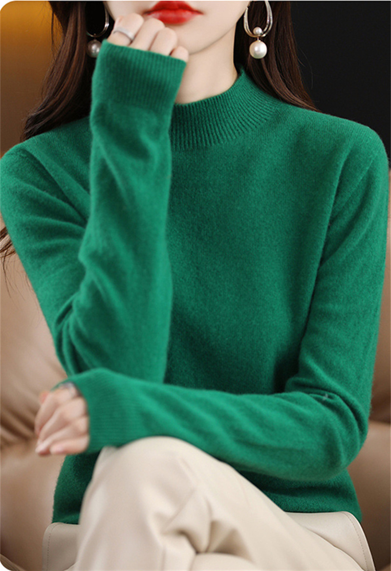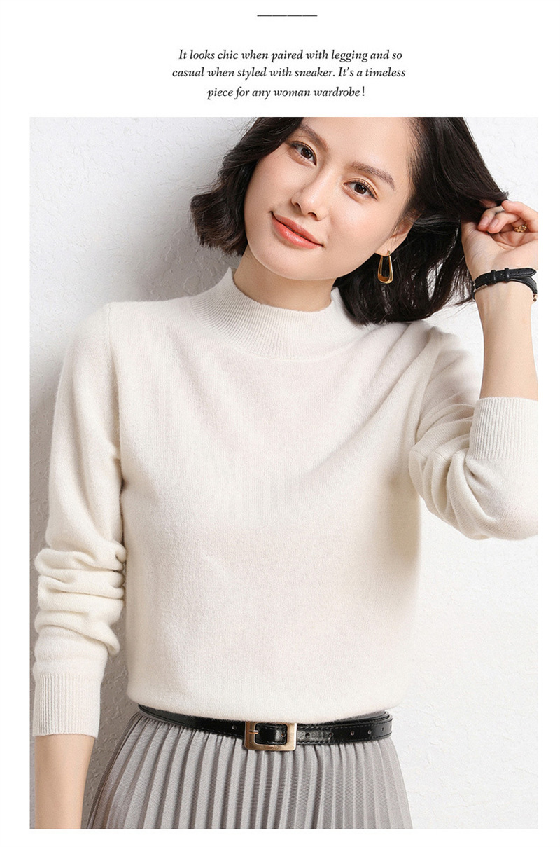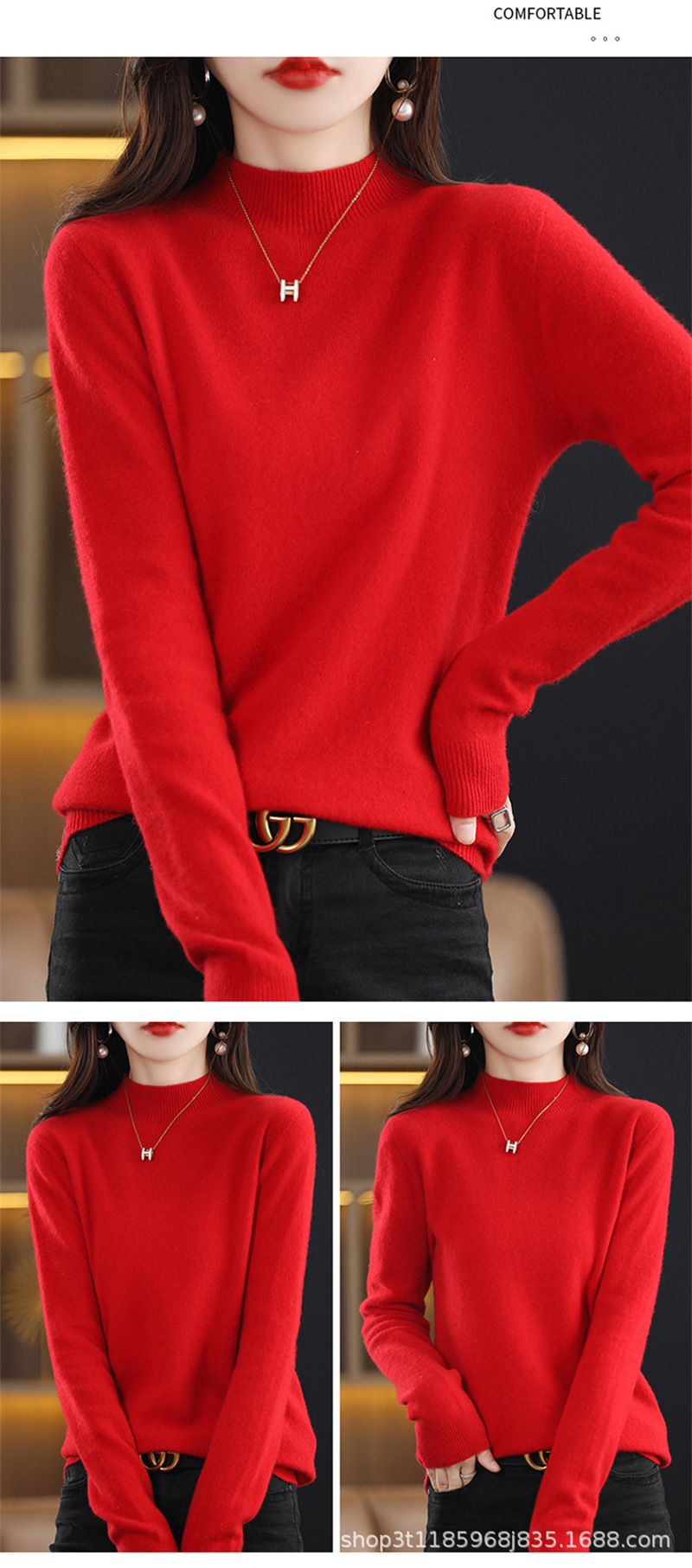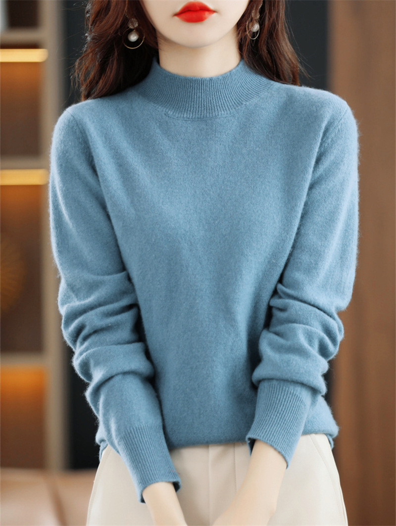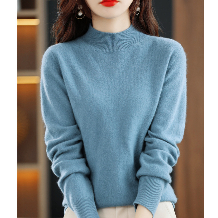 秋冬新款女针织衫半高领纯色毛衣针织打底衫宽松套头长袖上衣