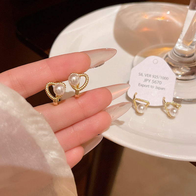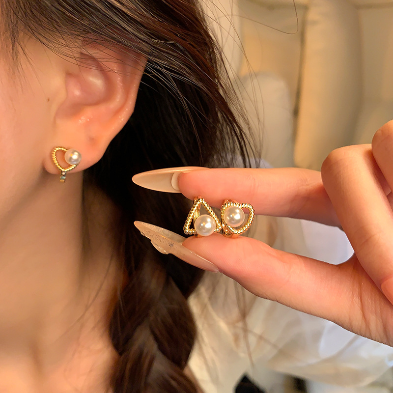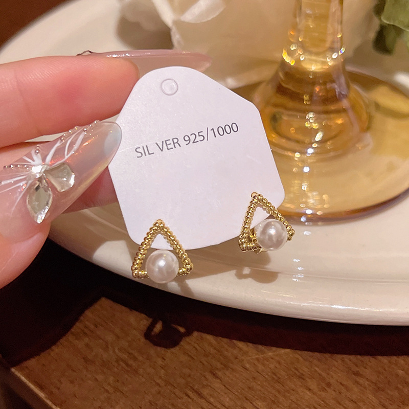 饰品小巧精致三角形爱心耳钉耳饰新款港风简约几何形珍珠耳环女