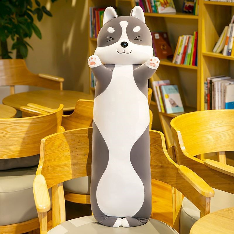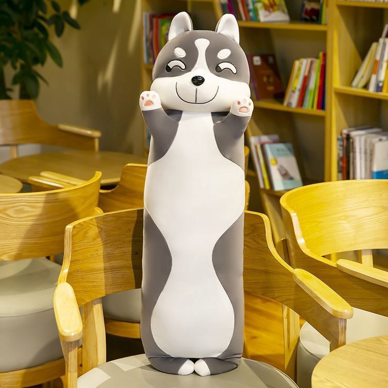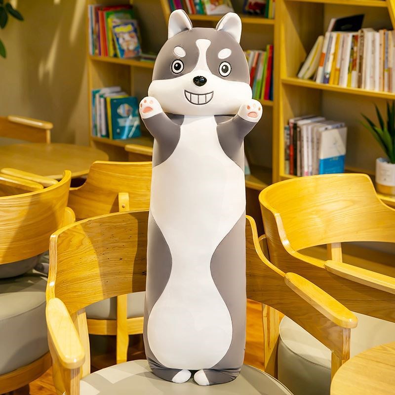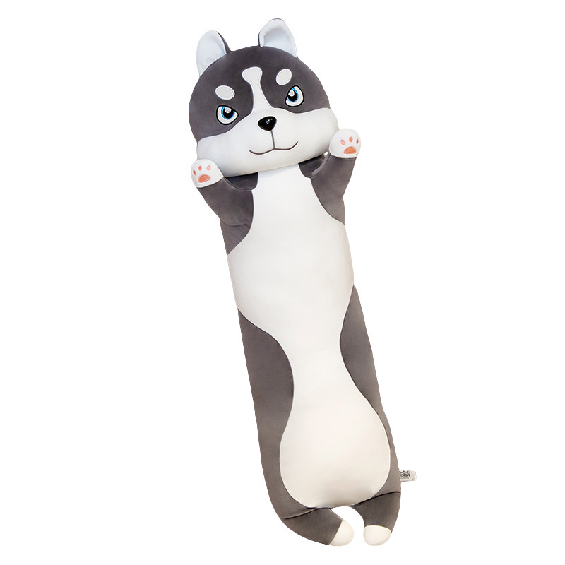 爆款呆萌滑稽长条哈士奇抱枕狗狗毛绒玩具公仔女生床上陪睡娃娃