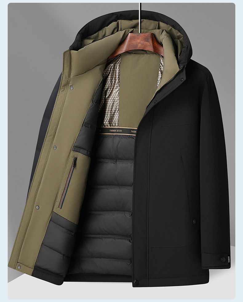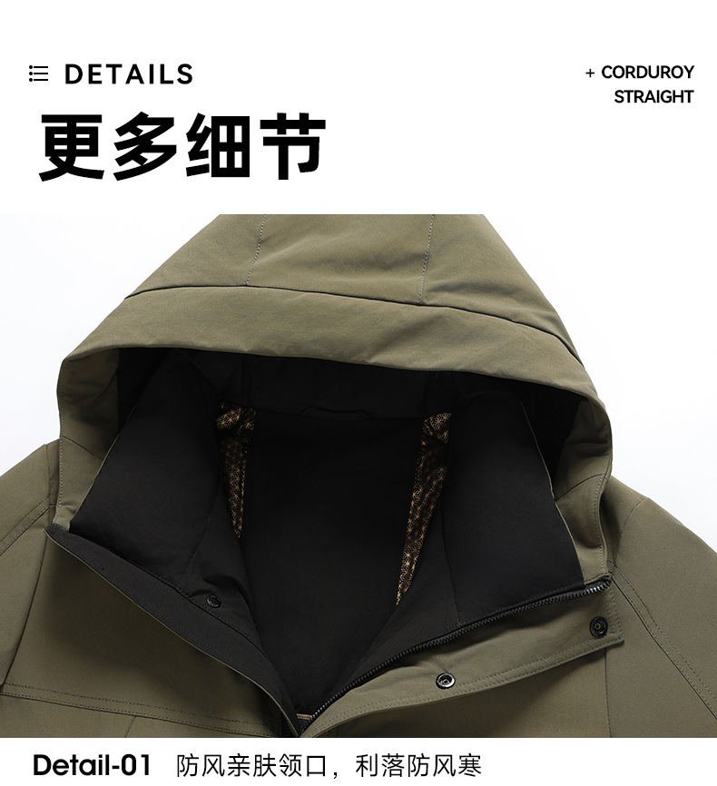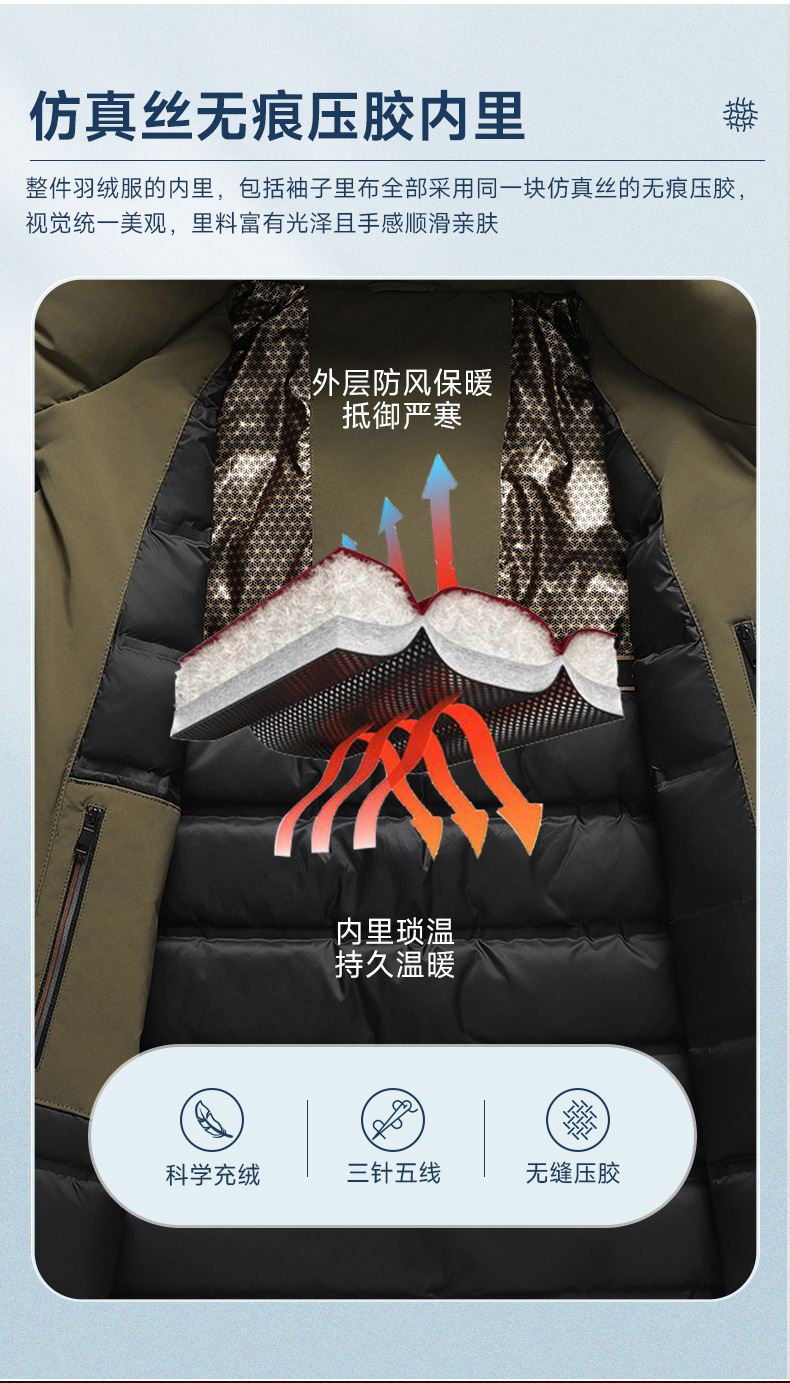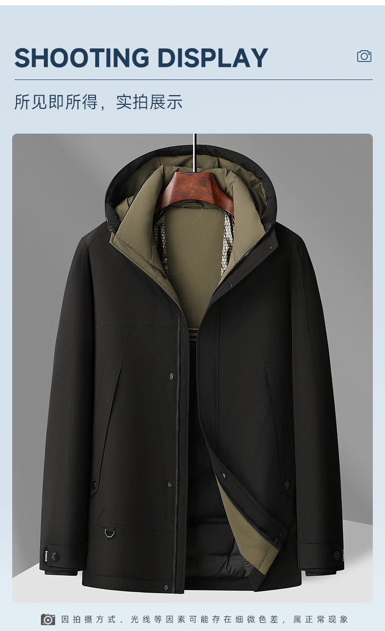 2024冬新款男士羽绒服中长款连帽时尚潮流90国标鸭绒户外工装外套