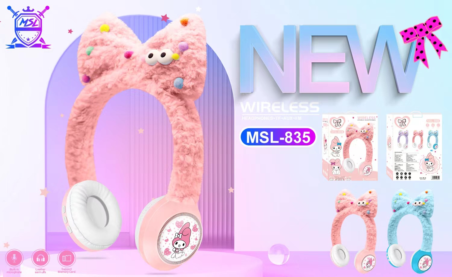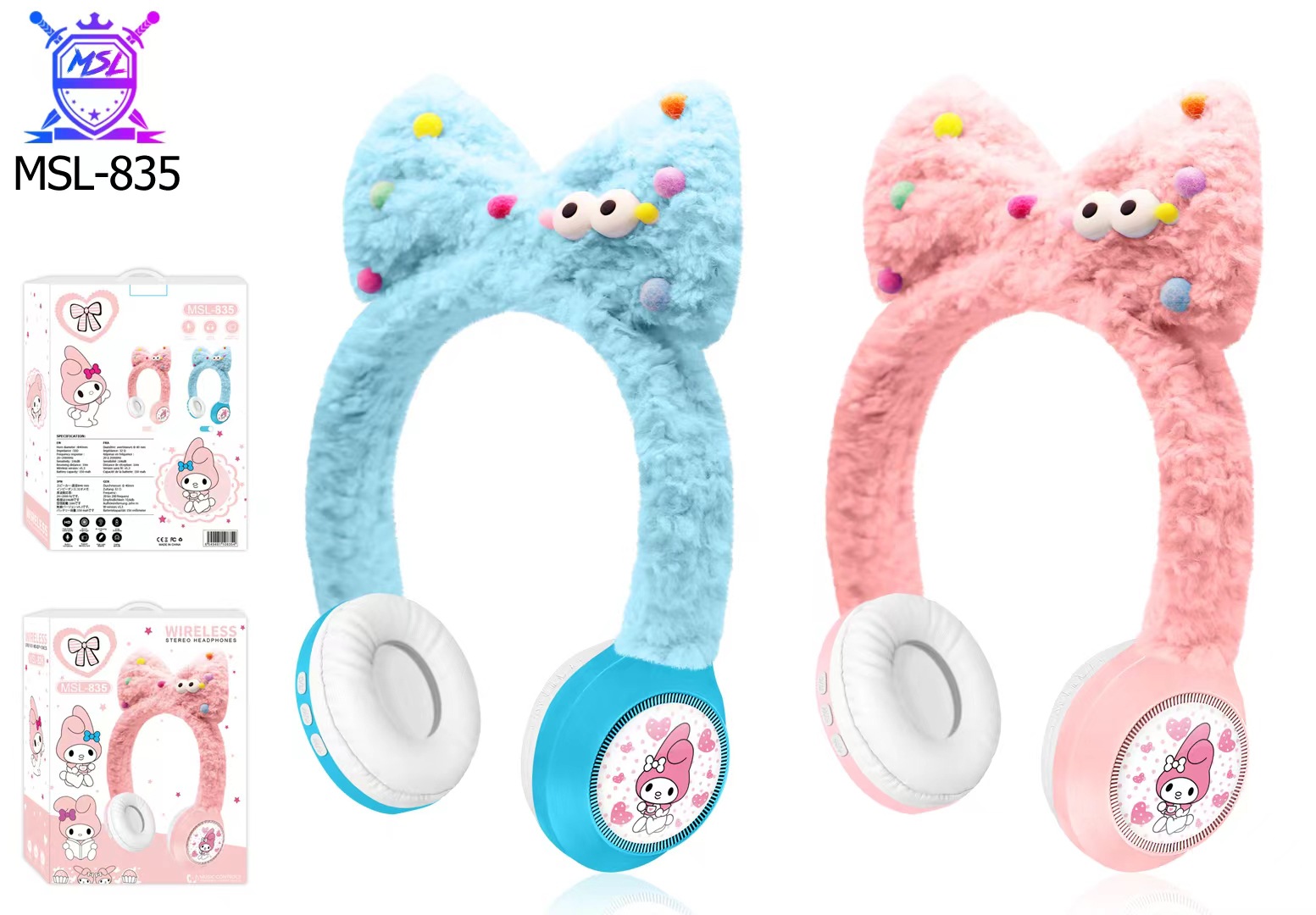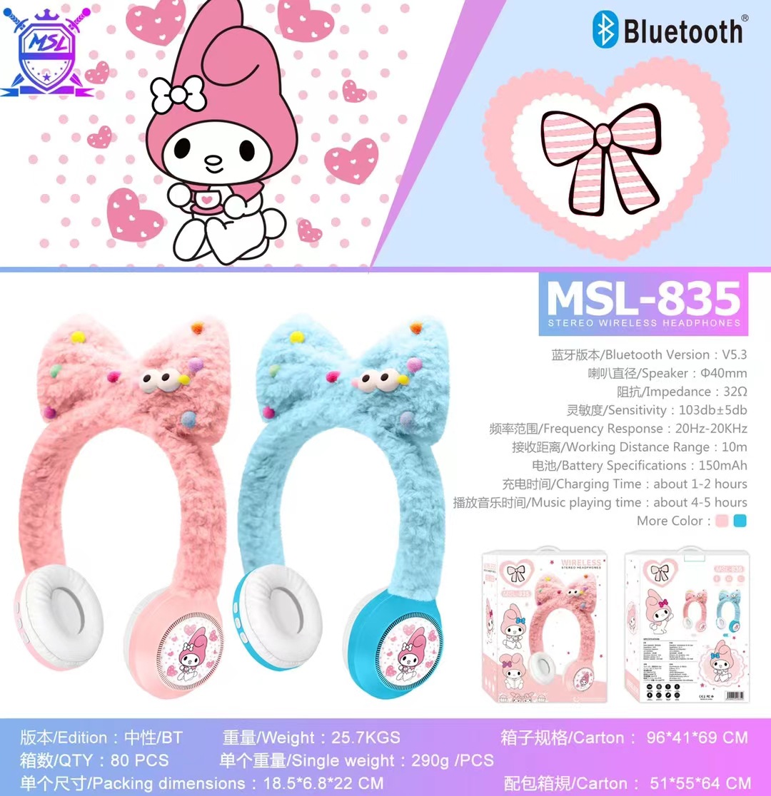 新款跨境外MSL-835创意卡通小白兔毛绒儿童无线头戴蓝牙耳机礼品