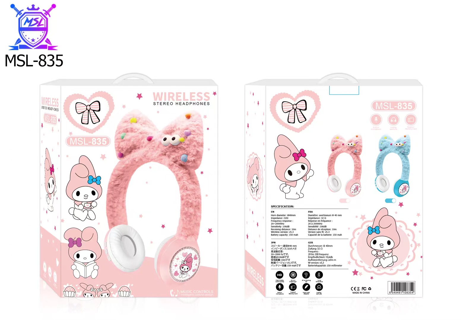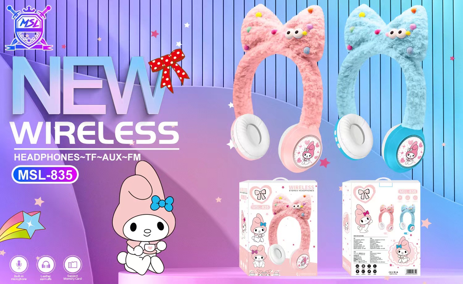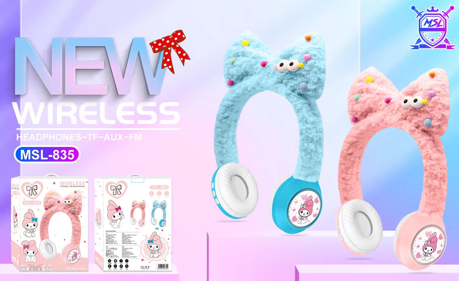 新款跨境外MSL-835创意卡通小白兔毛绒儿童无线头戴蓝牙耳机礼品