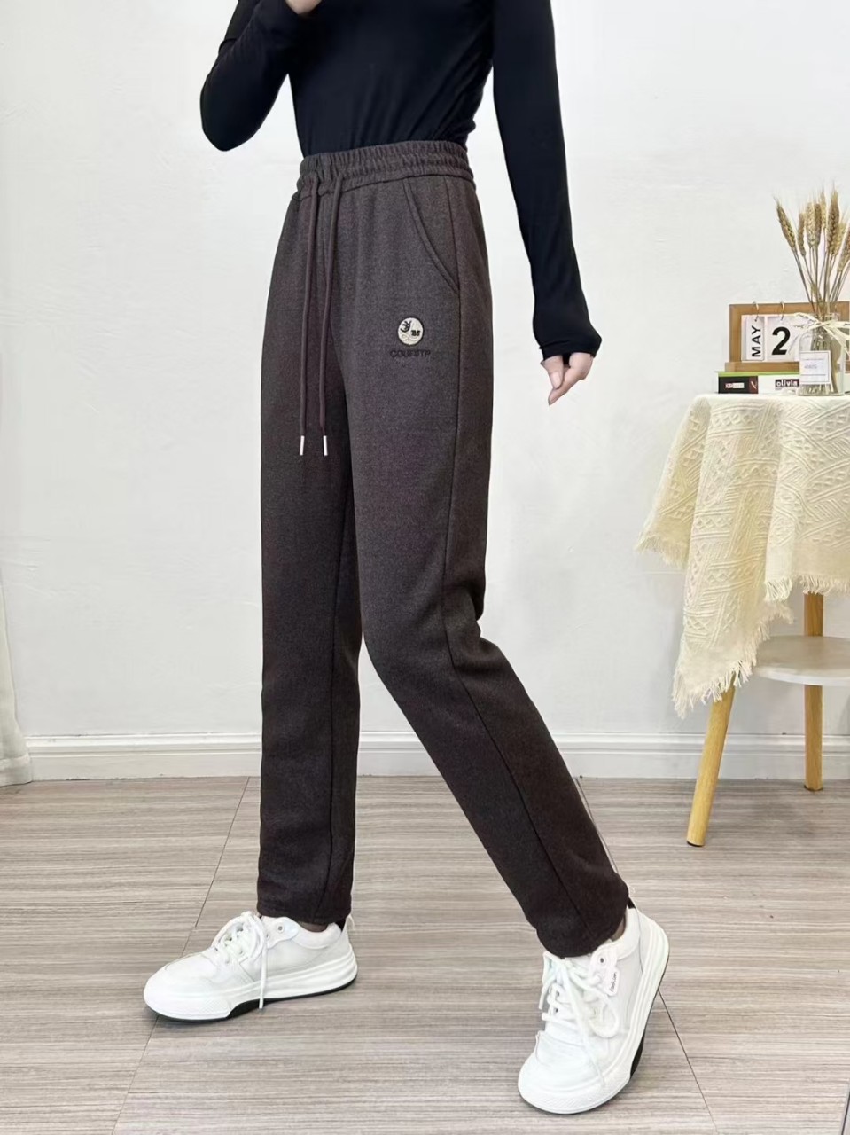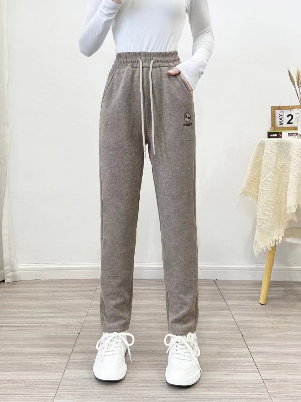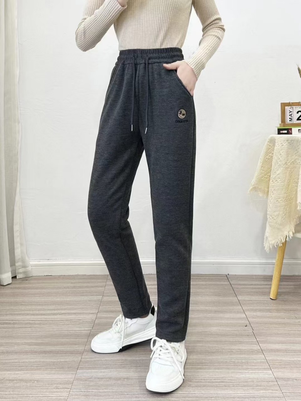 秋冬加绒加厚中老年女士休闲裤羚羊绒抽绳松紧腰小脚裤宽松妈妈裤