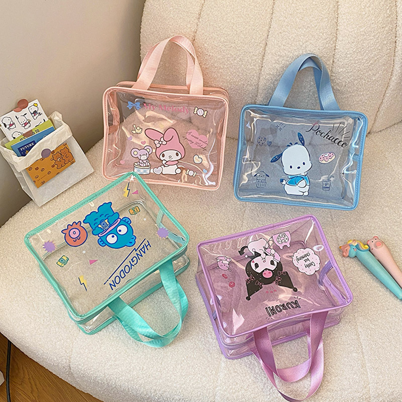 日系pvc小包可爱三郦欧彩色ins化妆包便携少女手提化妆品袋透明包