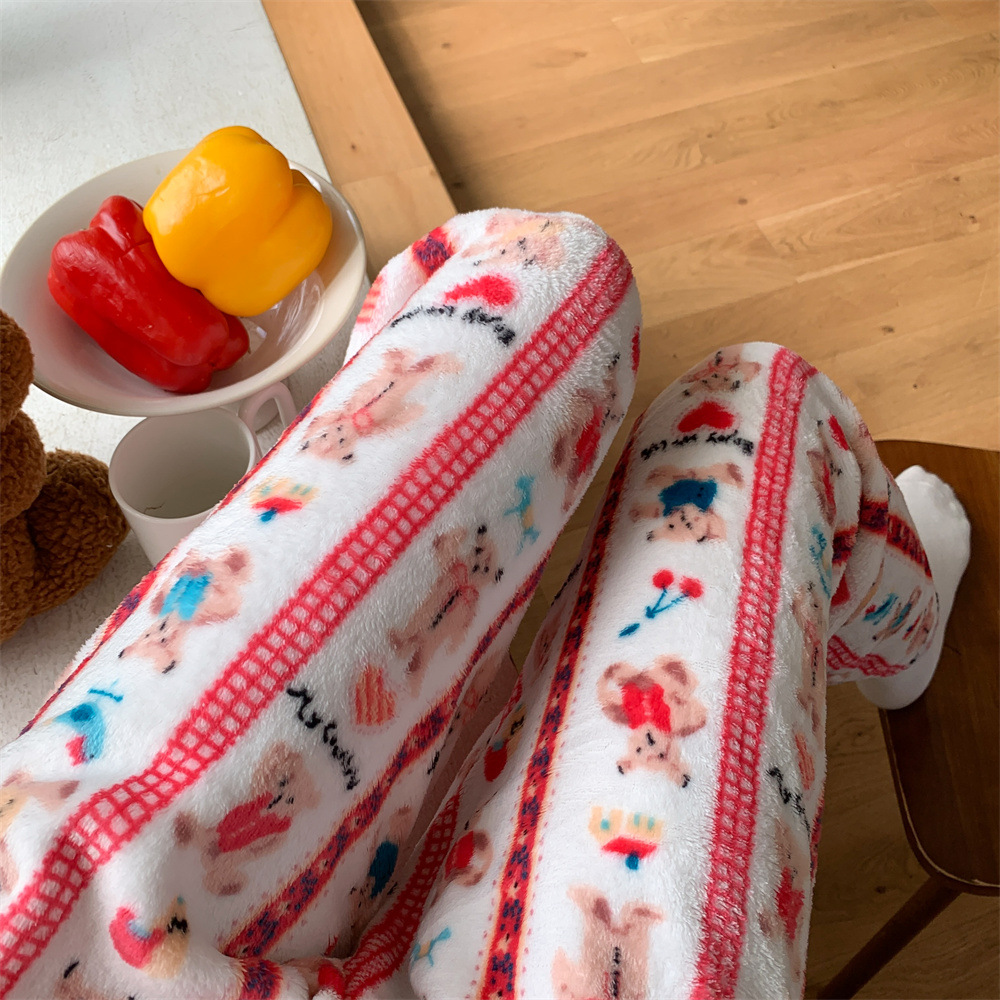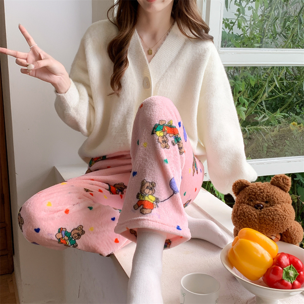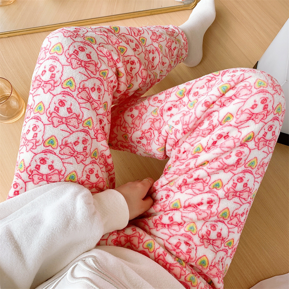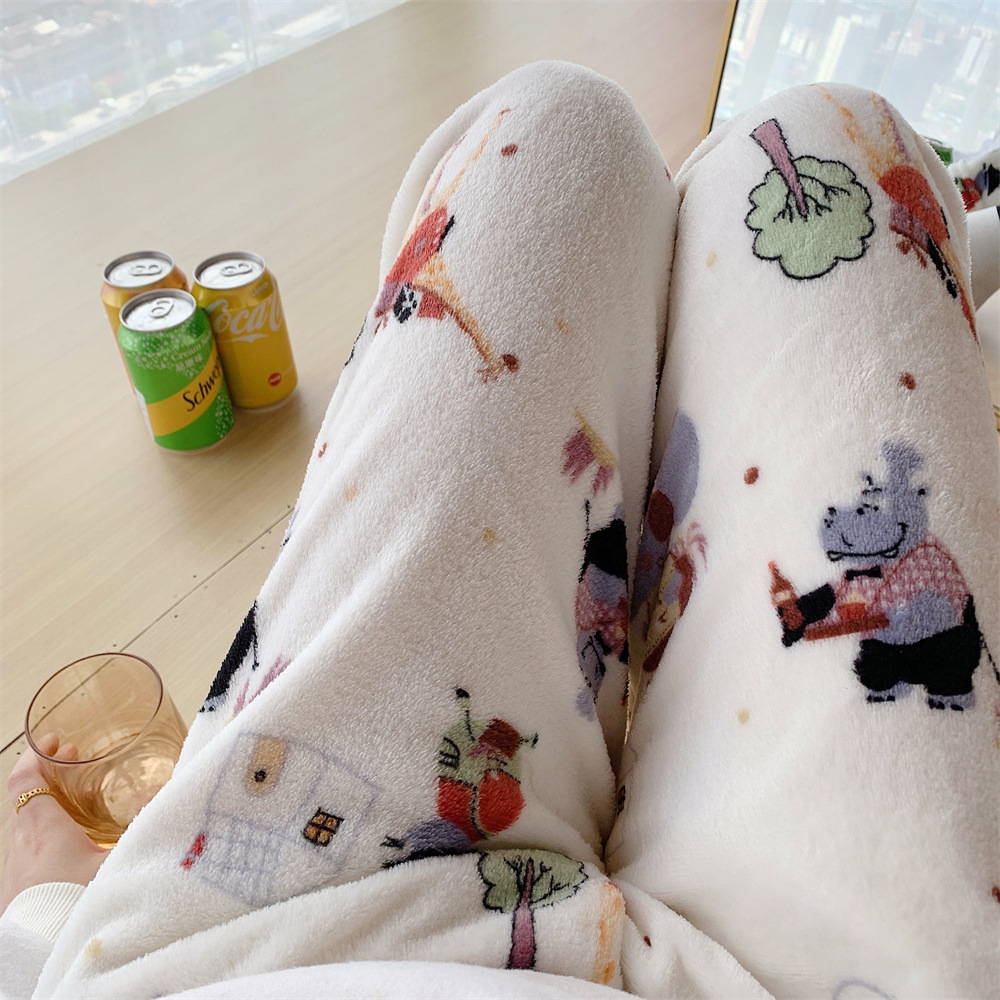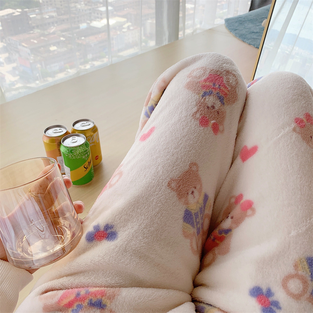 性感豹纹印花法兰绒睡裤女秋冬季新款加厚保暖冬天居家裤睡衣裤子