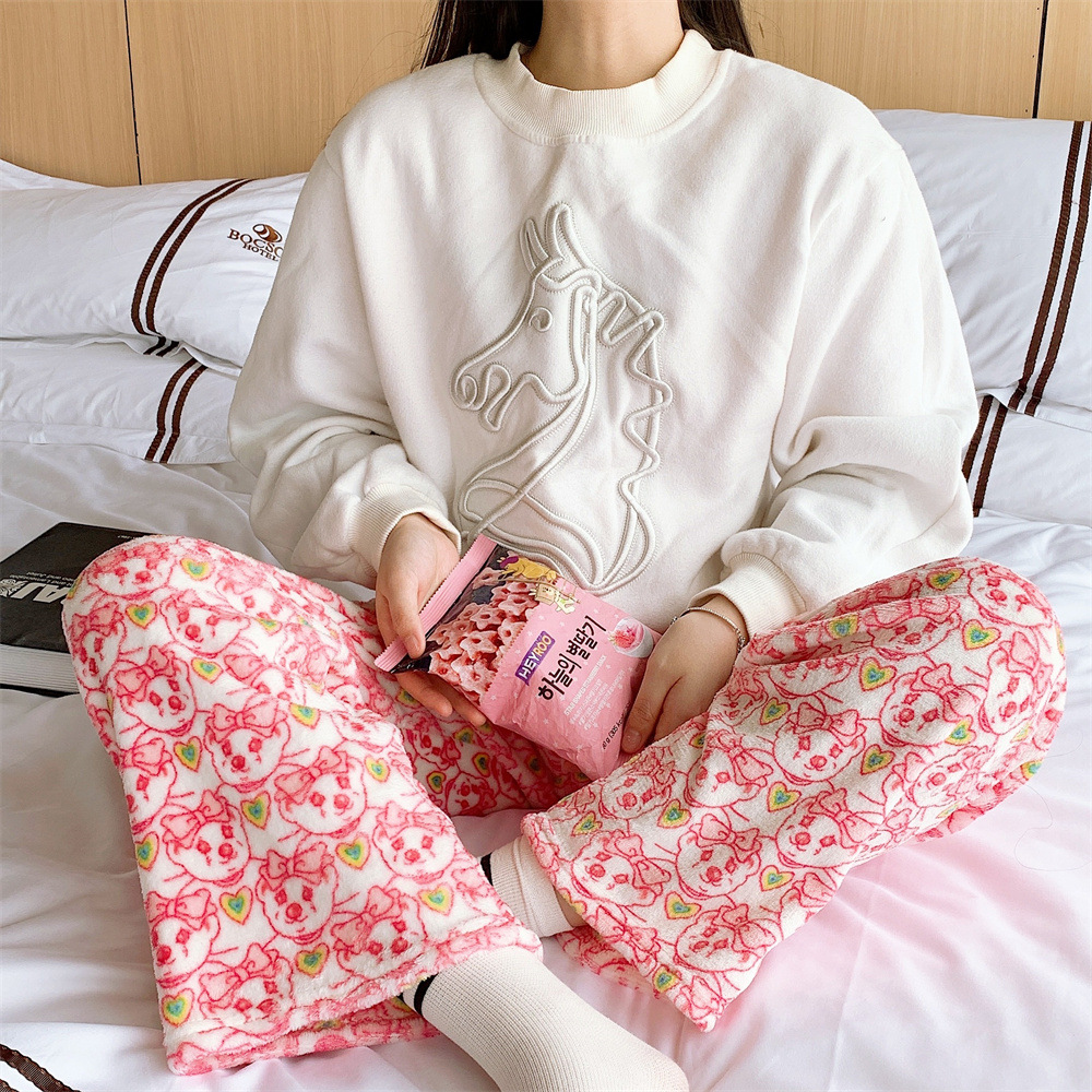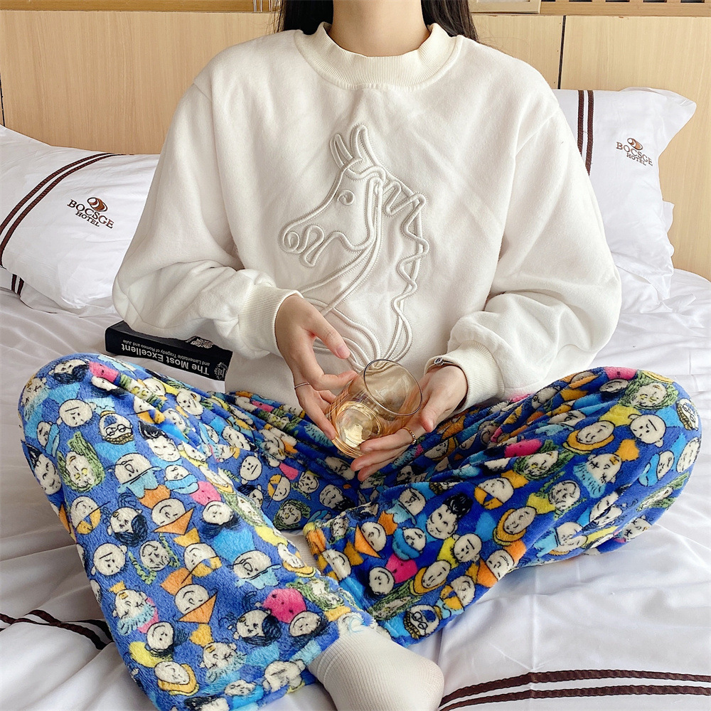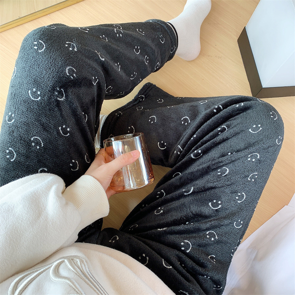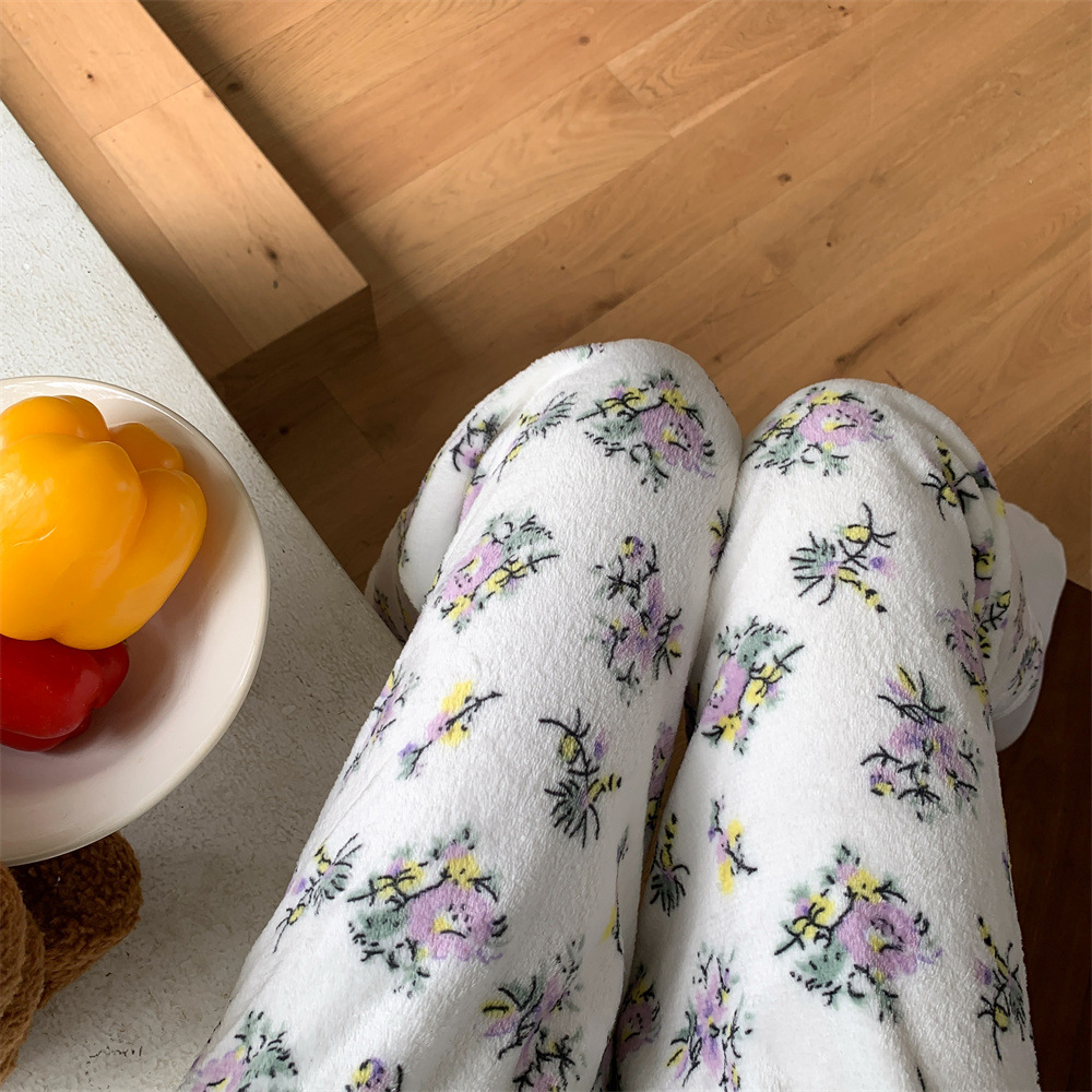 性感豹纹印花法兰绒睡裤女秋冬季新款加厚保暖冬天居家裤睡衣裤子