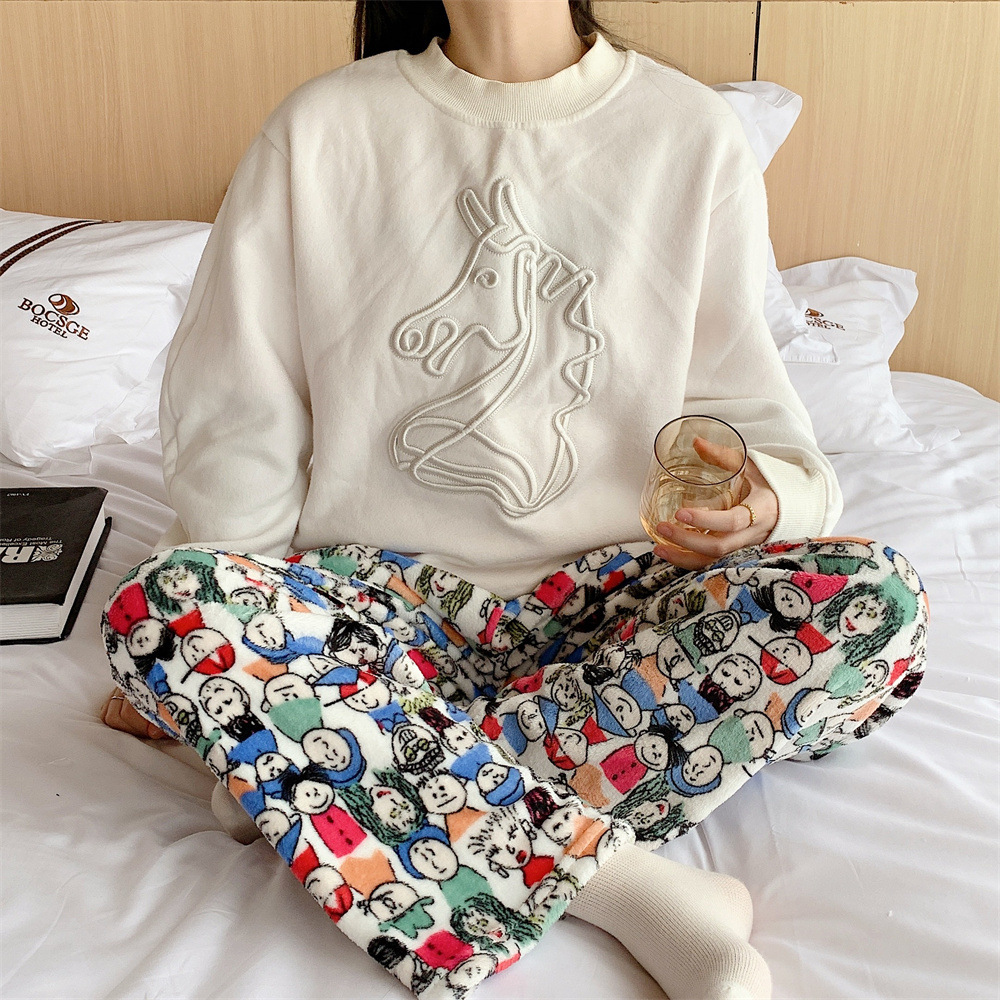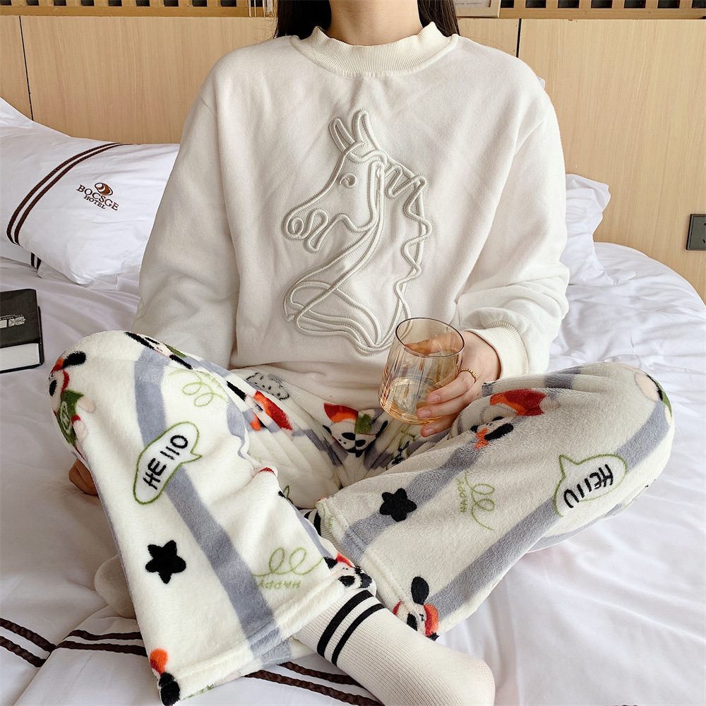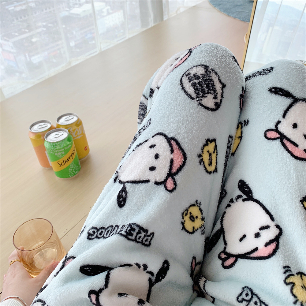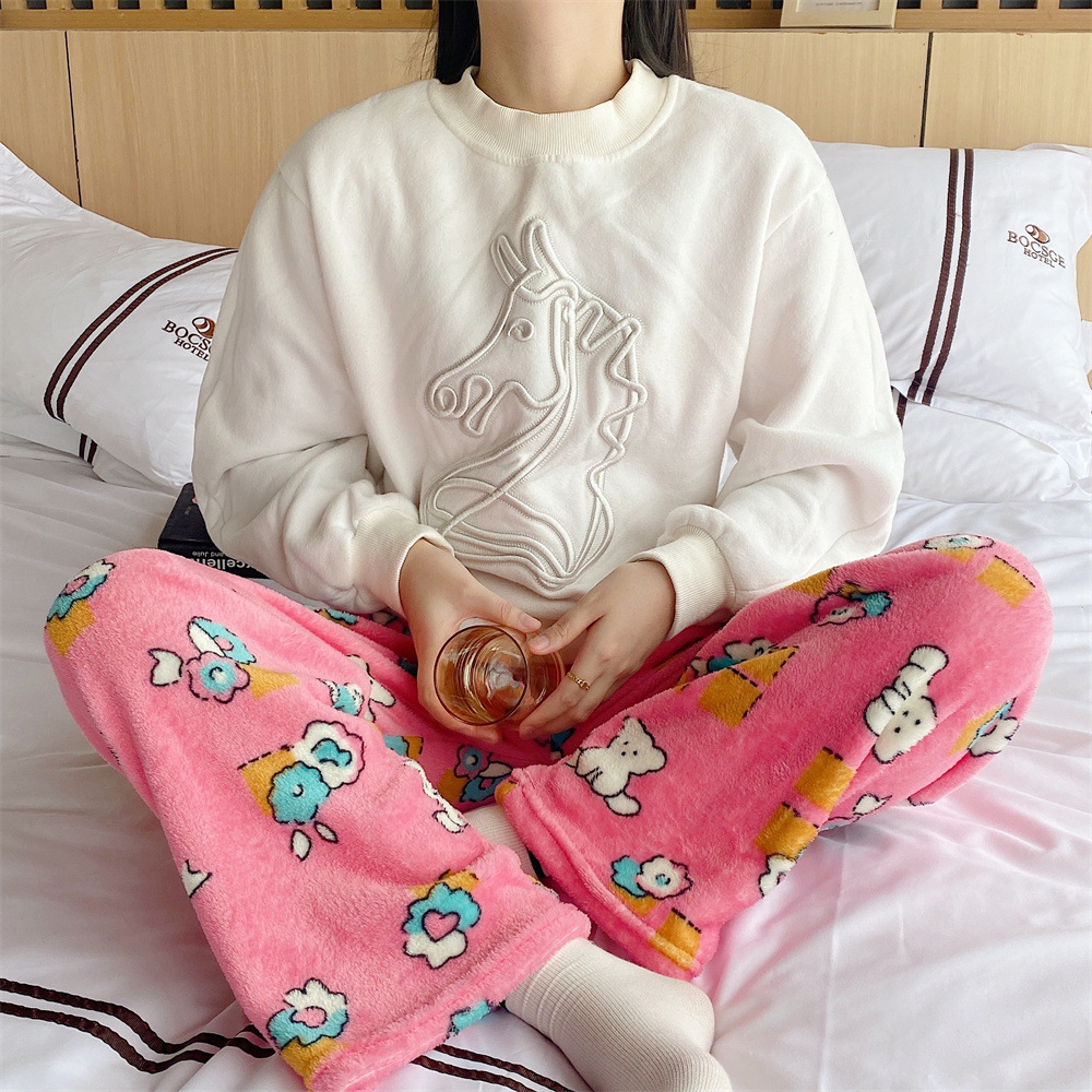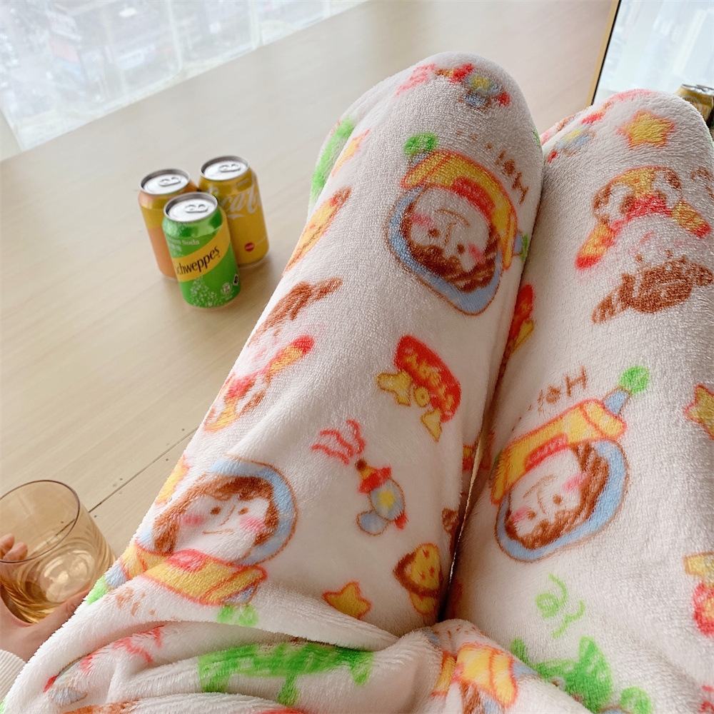 性感豹纹印花法兰绒睡裤女秋冬季新款加厚保暖冬天居家裤睡衣裤子