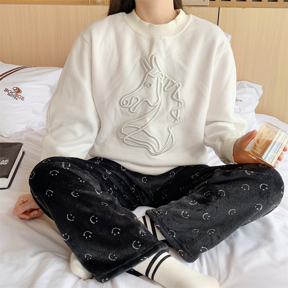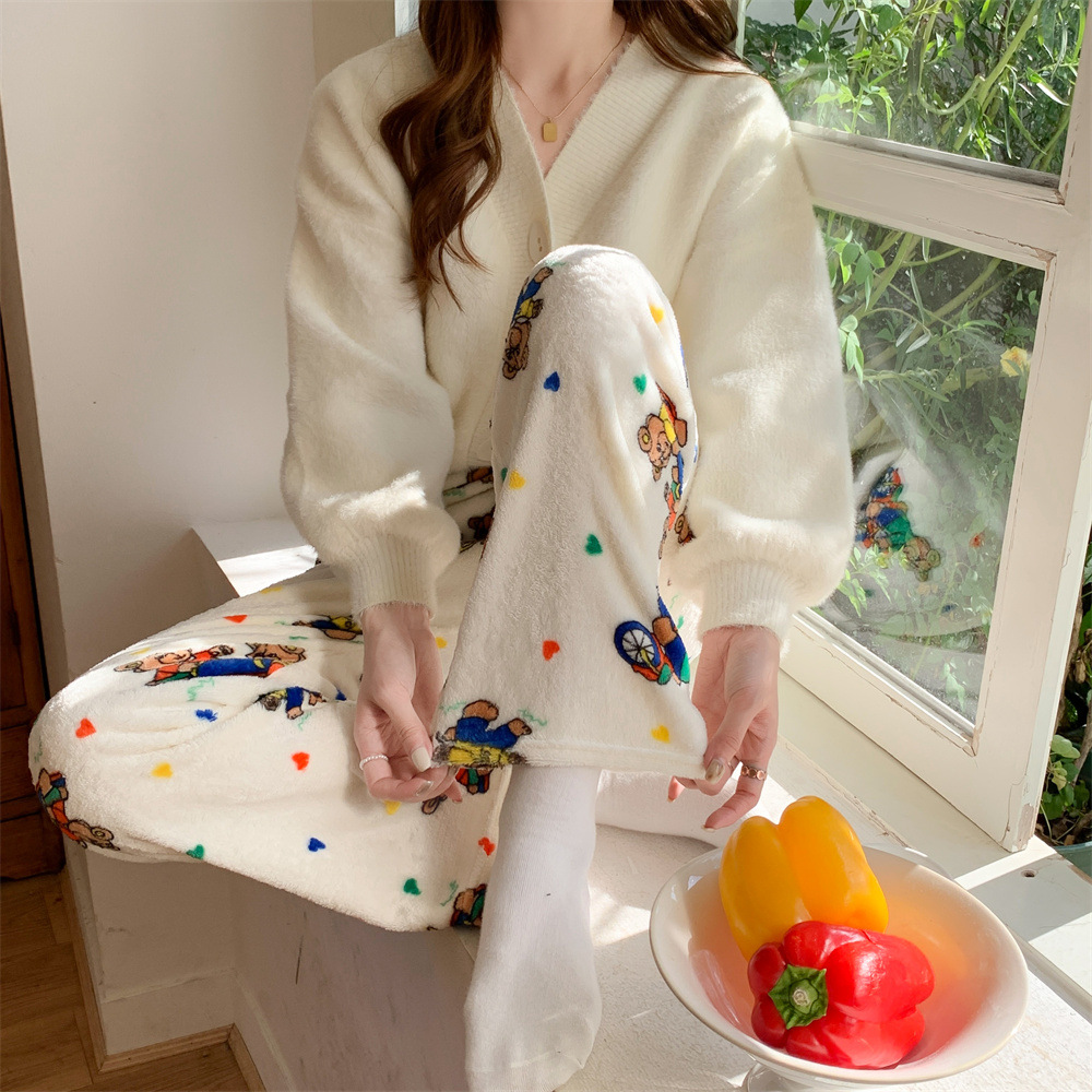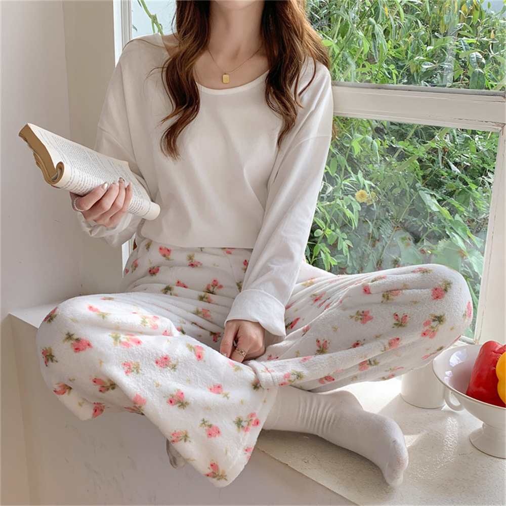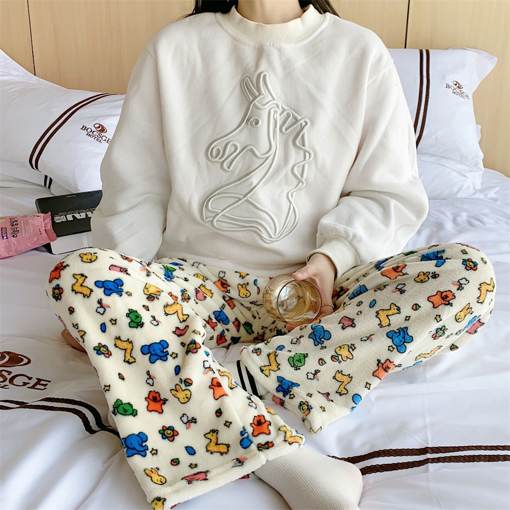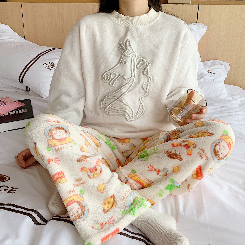 性感豹纹印花法兰绒睡裤女秋冬季新款加厚保暖冬天居家裤睡衣裤子
