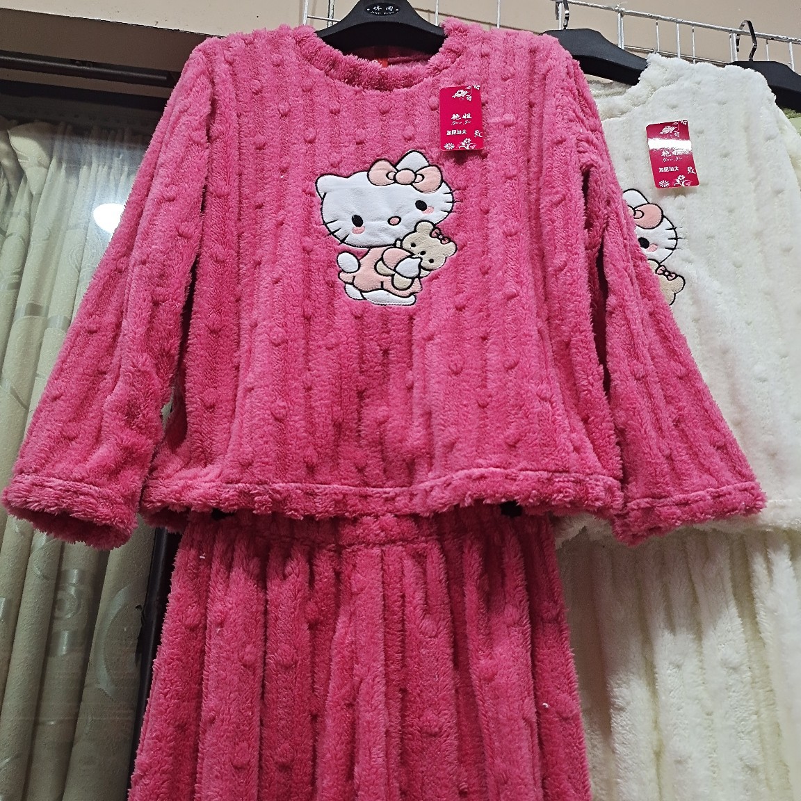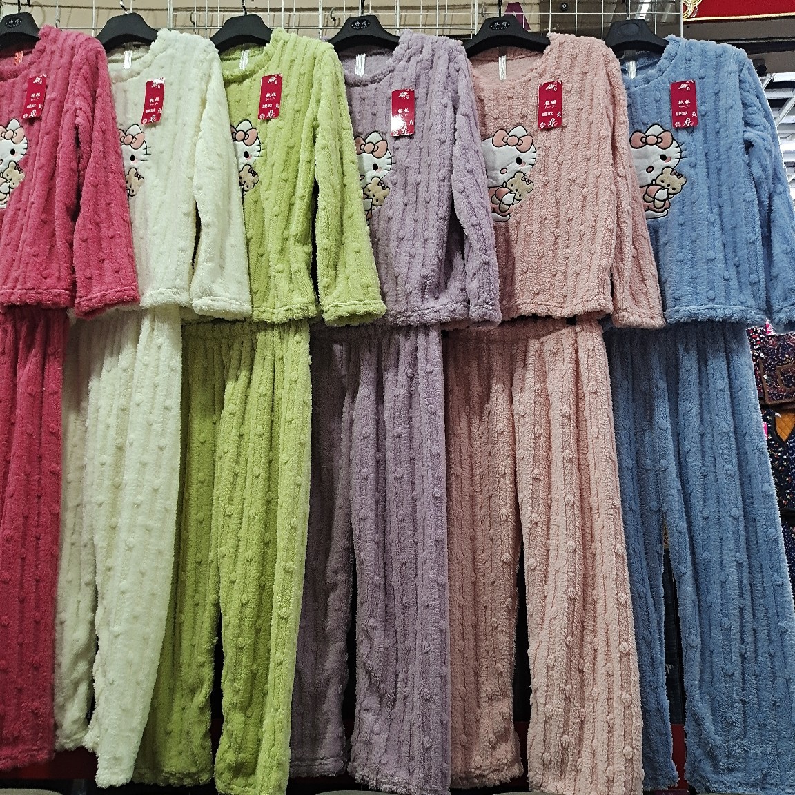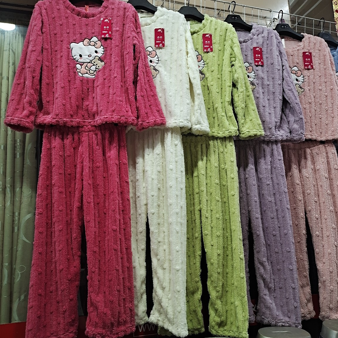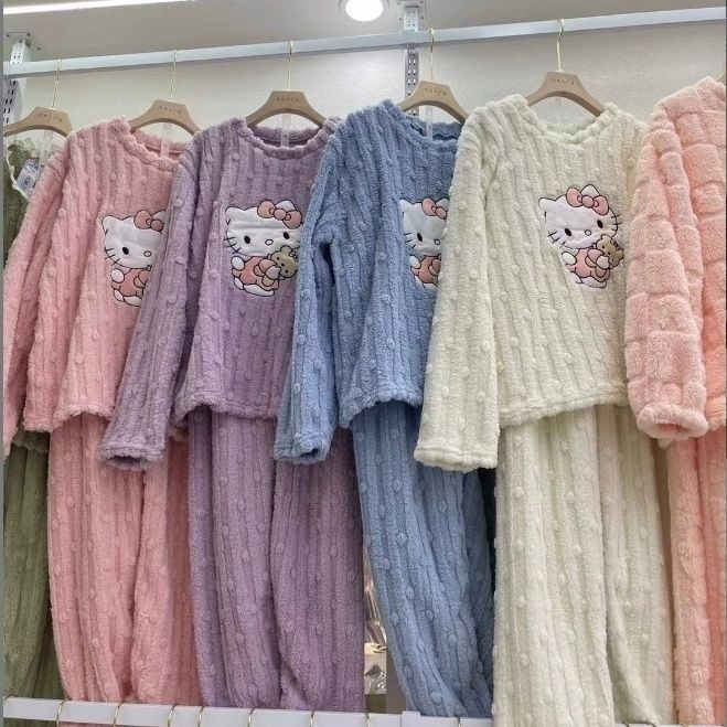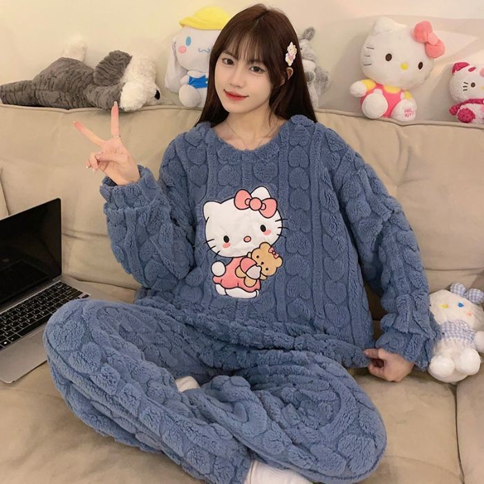 凯蒂猫珊瑚绒睡衣女秋冬季法兰绒加厚长裤甜美卡通可爱家居服套装