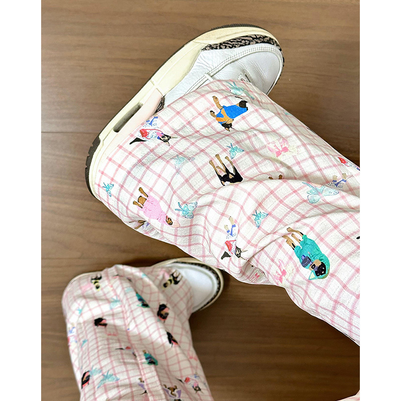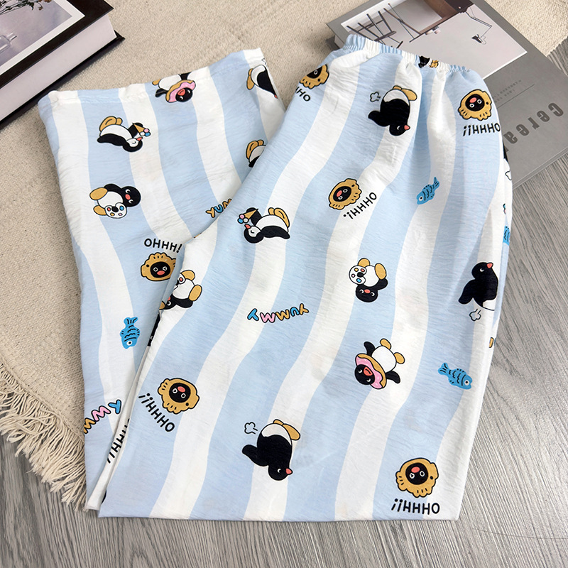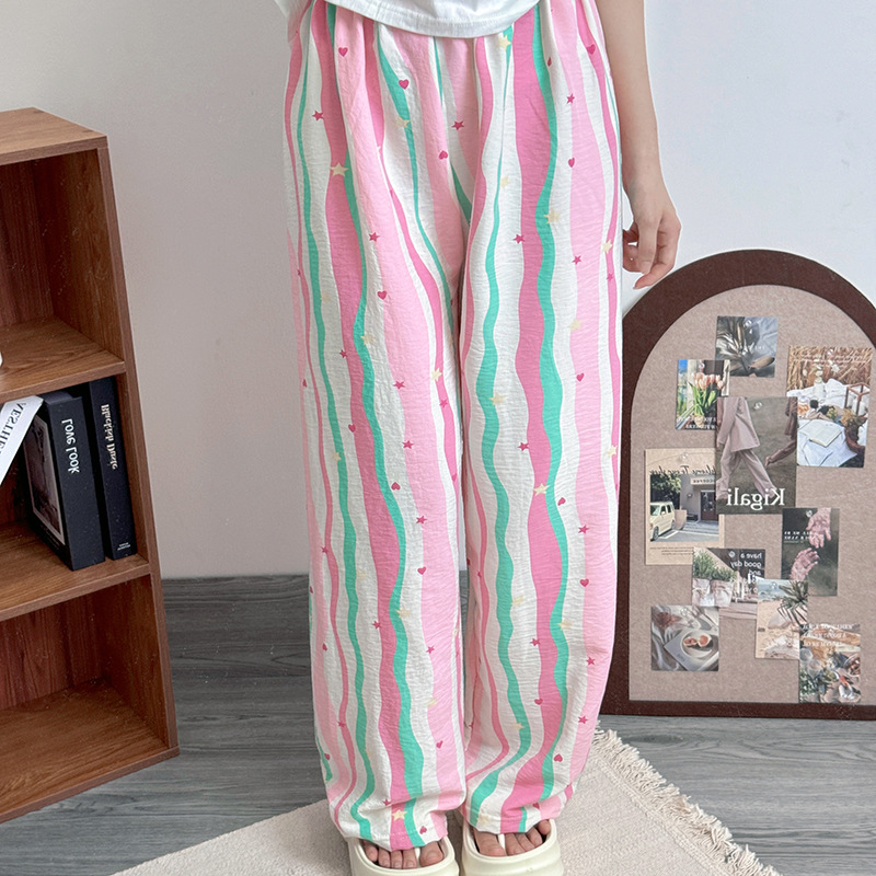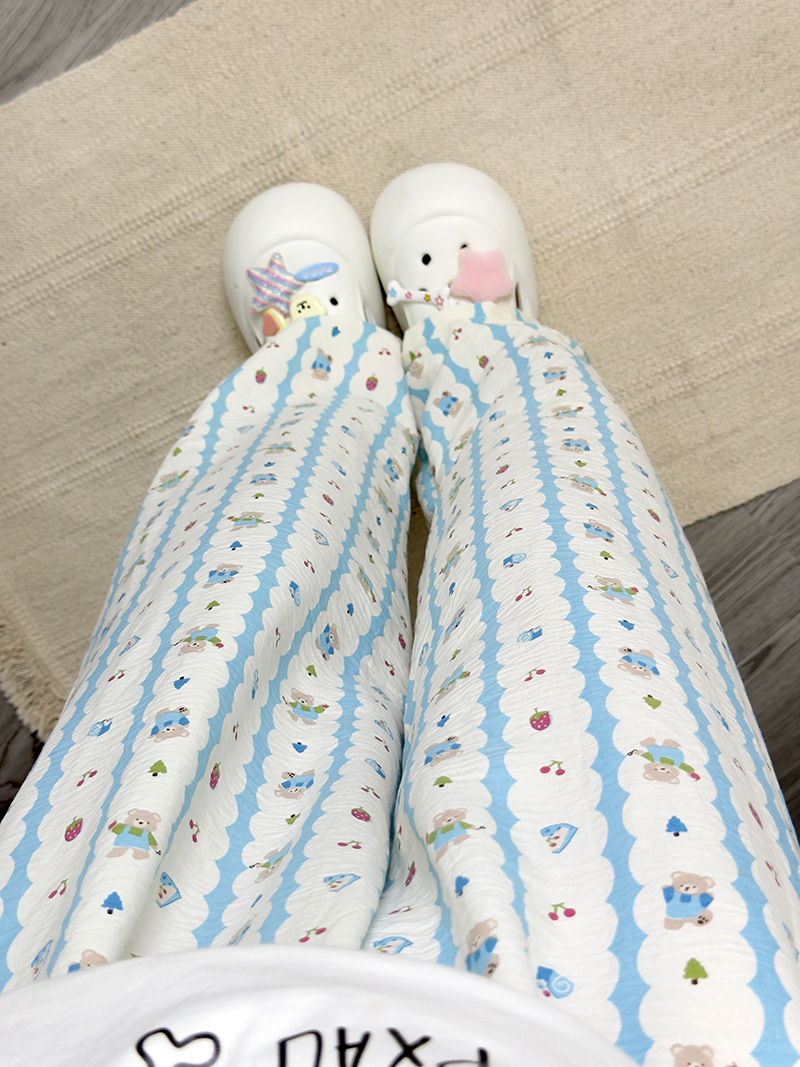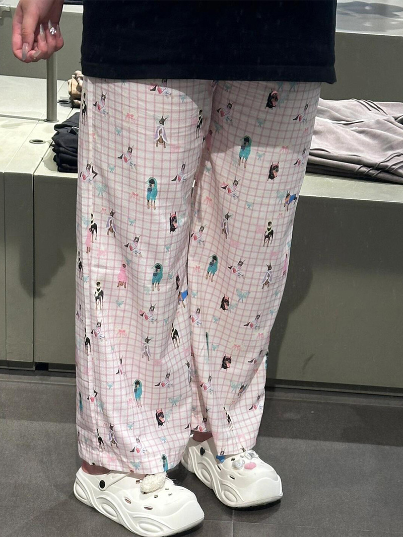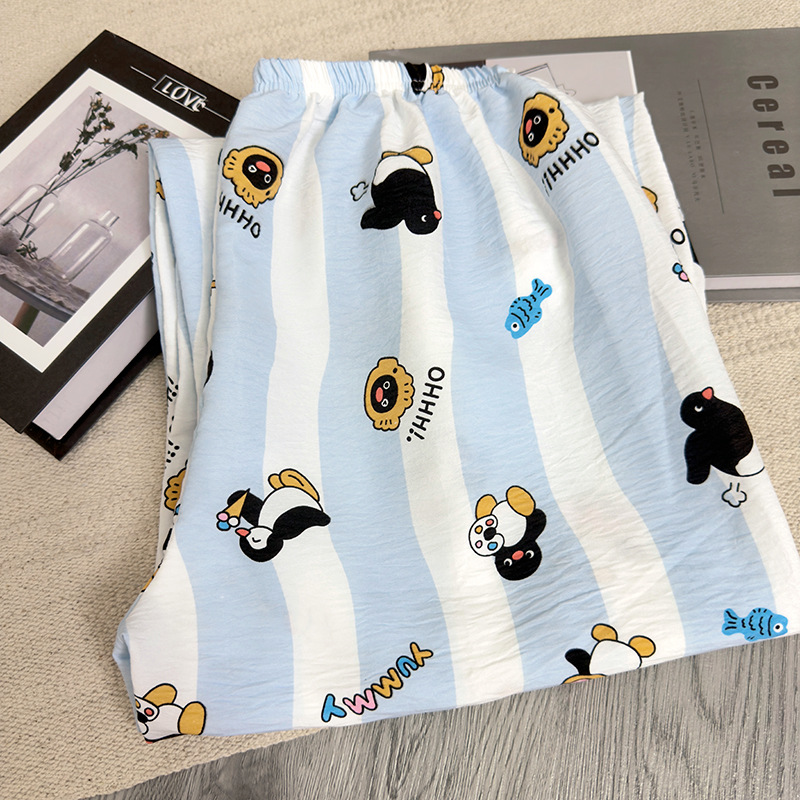 夏季新款睡裤粉色凯蒂猫印花宽松居家薄款卡通休闲长裤可外穿遛弯
