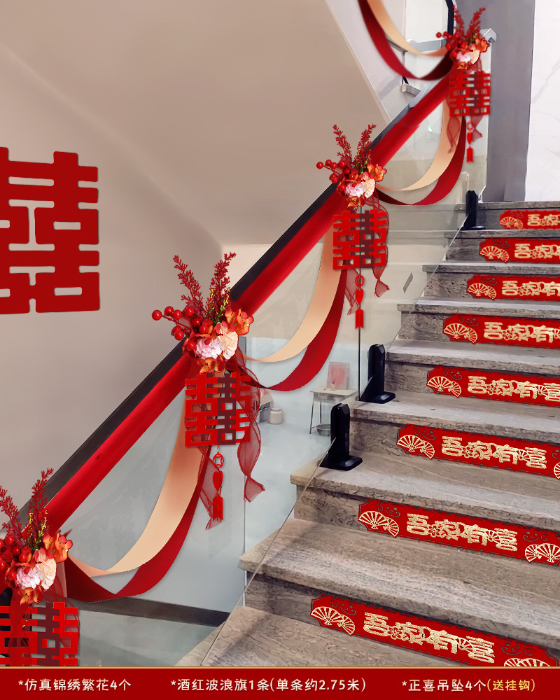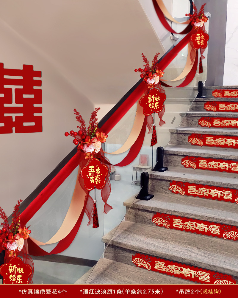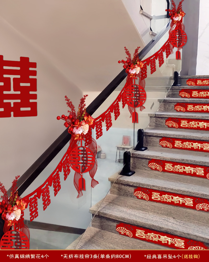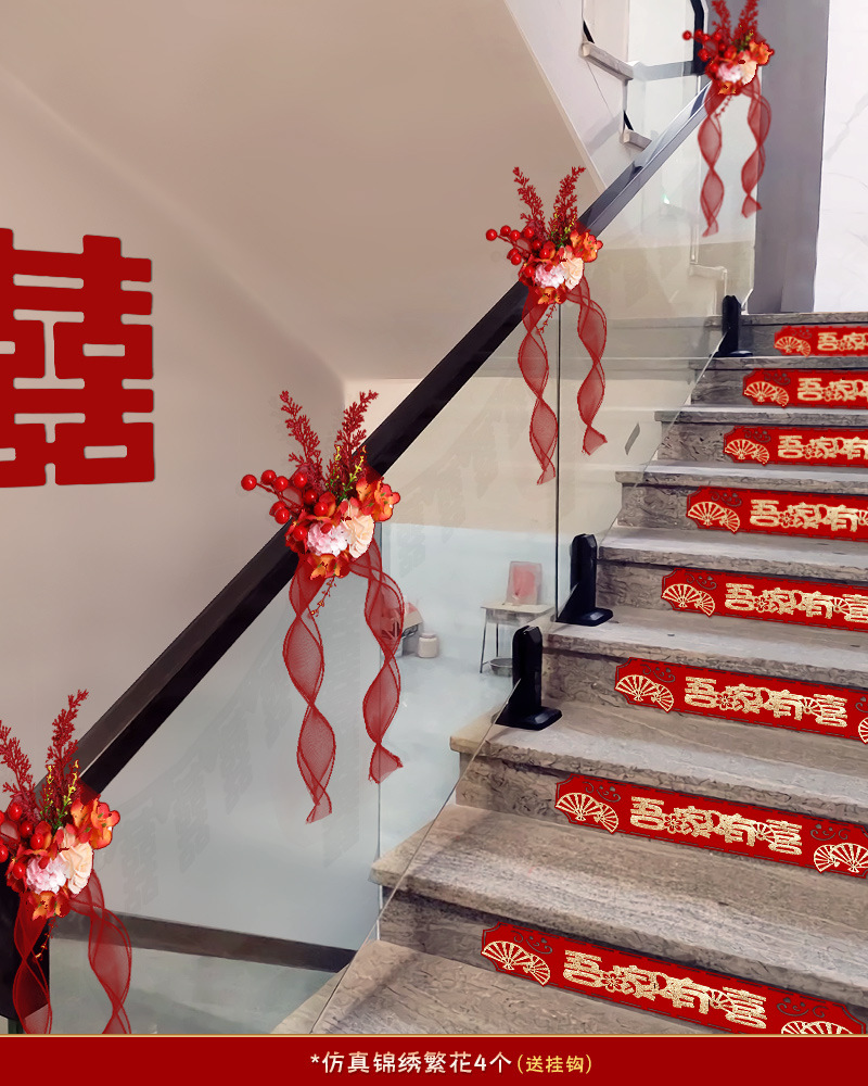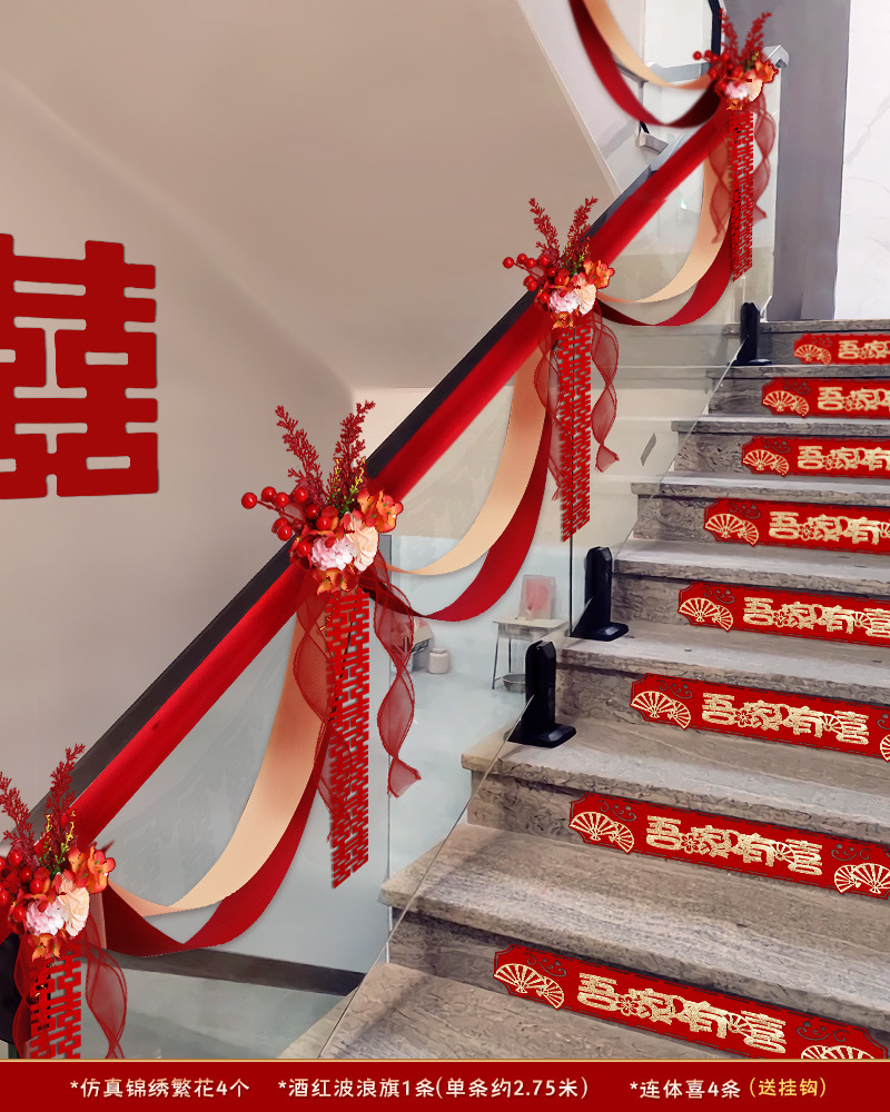 结婚楼梯扶手装饰婚房布置套装婚礼台阶拉花扶梯挂件婚庆用品大全