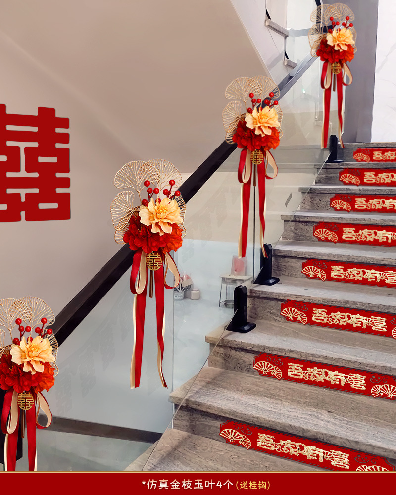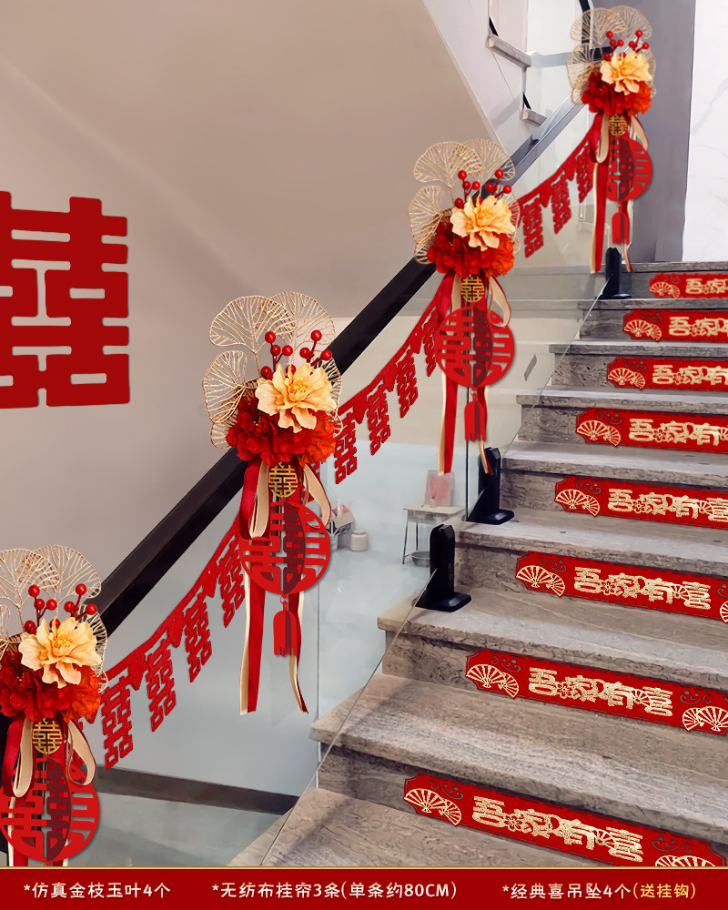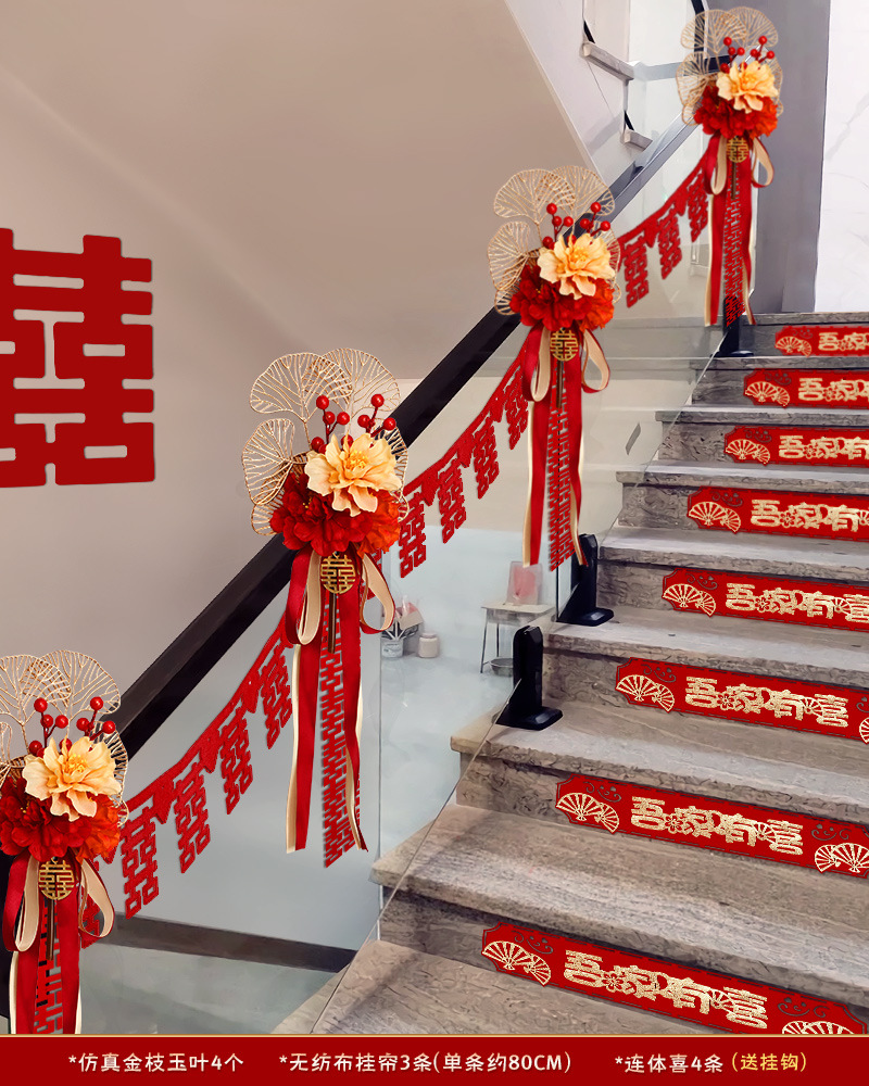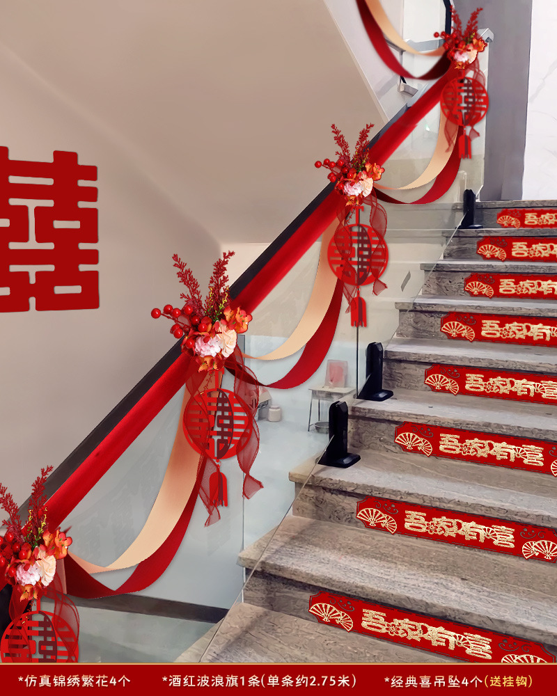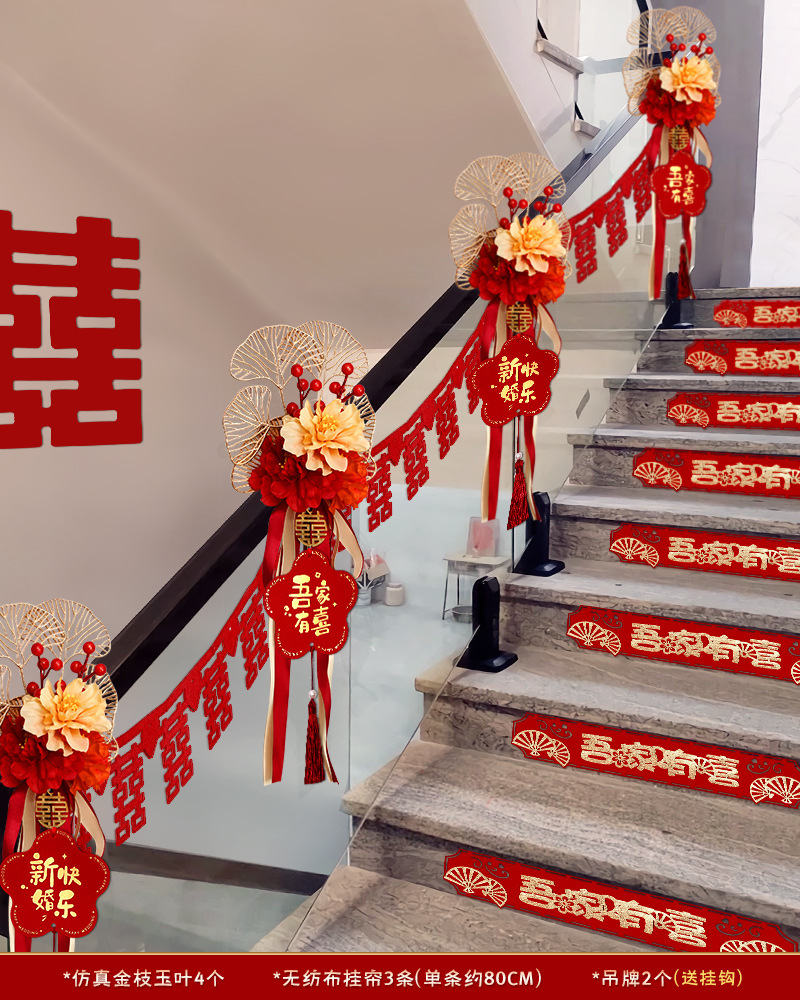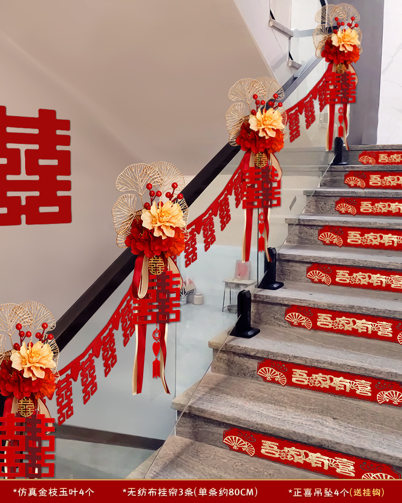 结婚楼梯扶手装饰婚房布置套装婚礼台阶拉花扶梯挂件婚庆用品大全