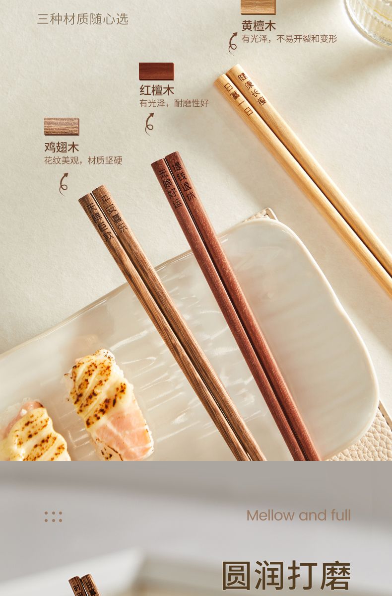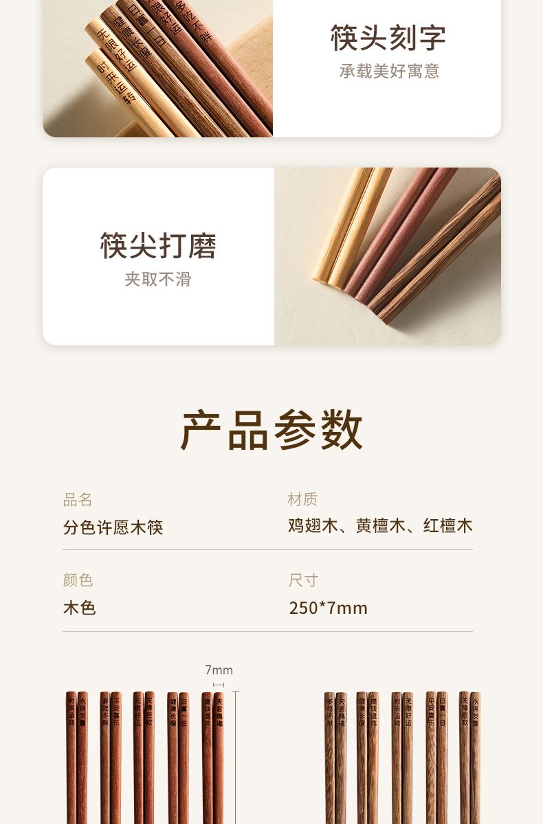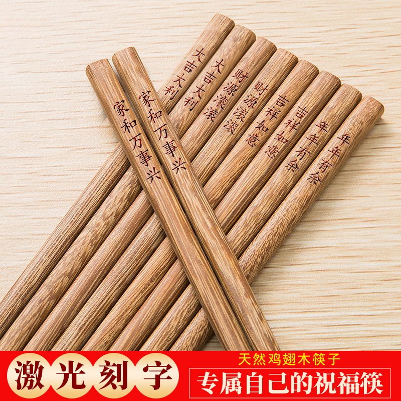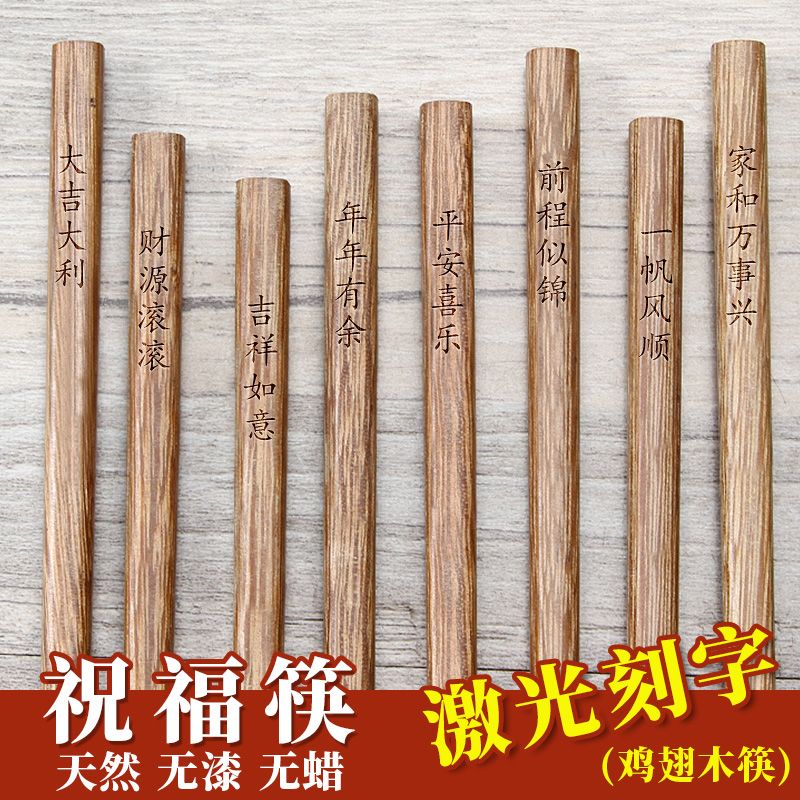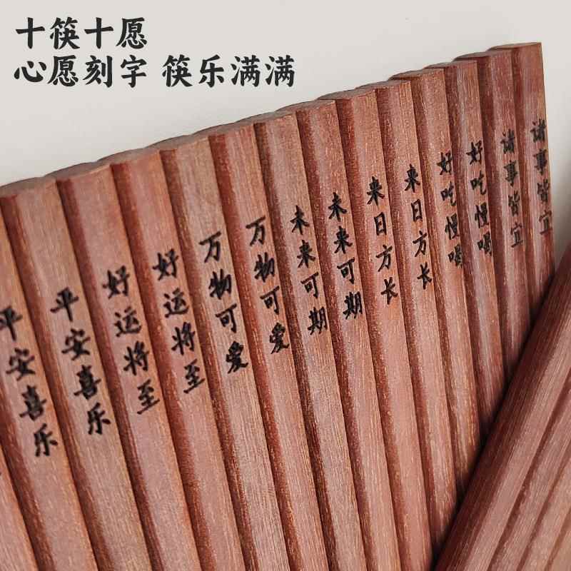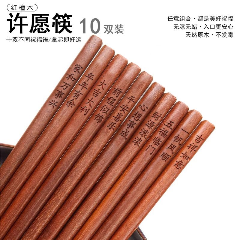 许愿实木筷子中式高档红檀木分餐筷子家用不易发霉鸡翅木刻字筷子