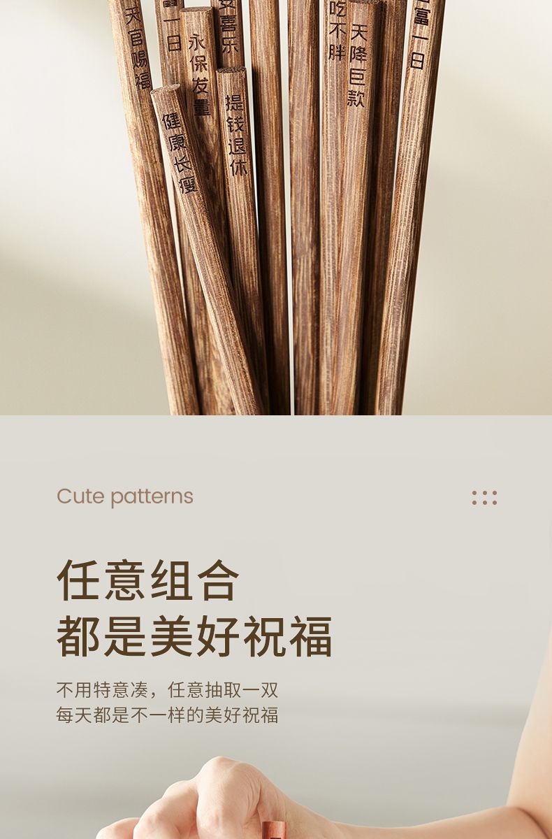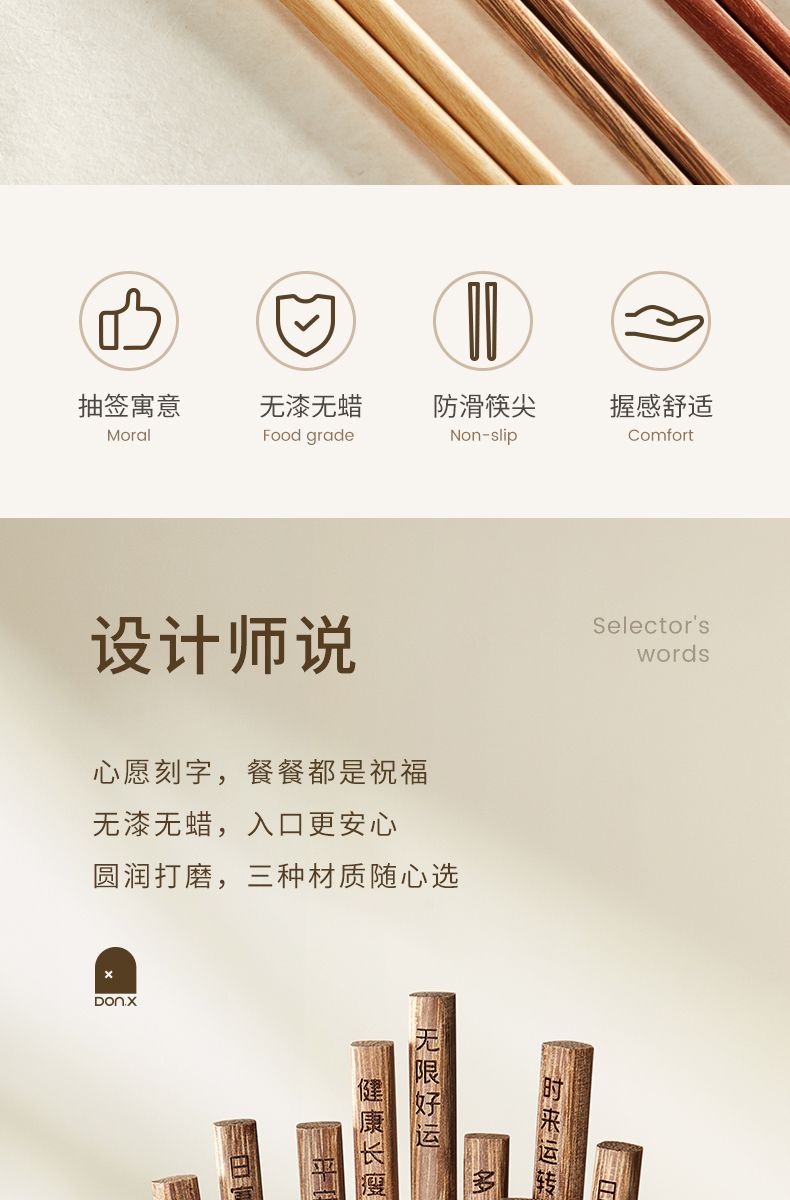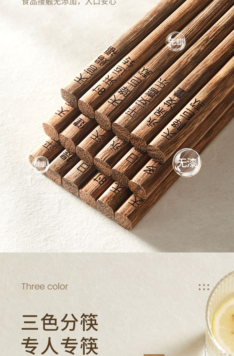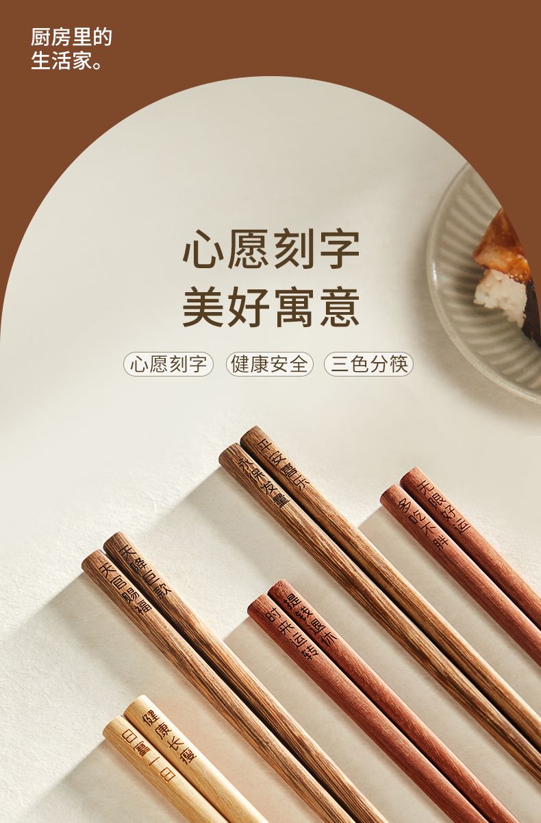许愿实木筷子中式高档红檀木分餐筷子家用不易发霉鸡翅木刻字筷子