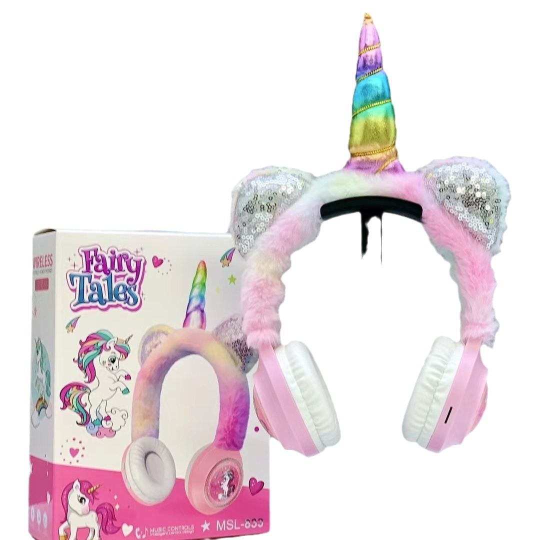 新款跨外境MSL-833创意卡通独角兽毛绒无线儿童头戴蓝牙耳机礼品