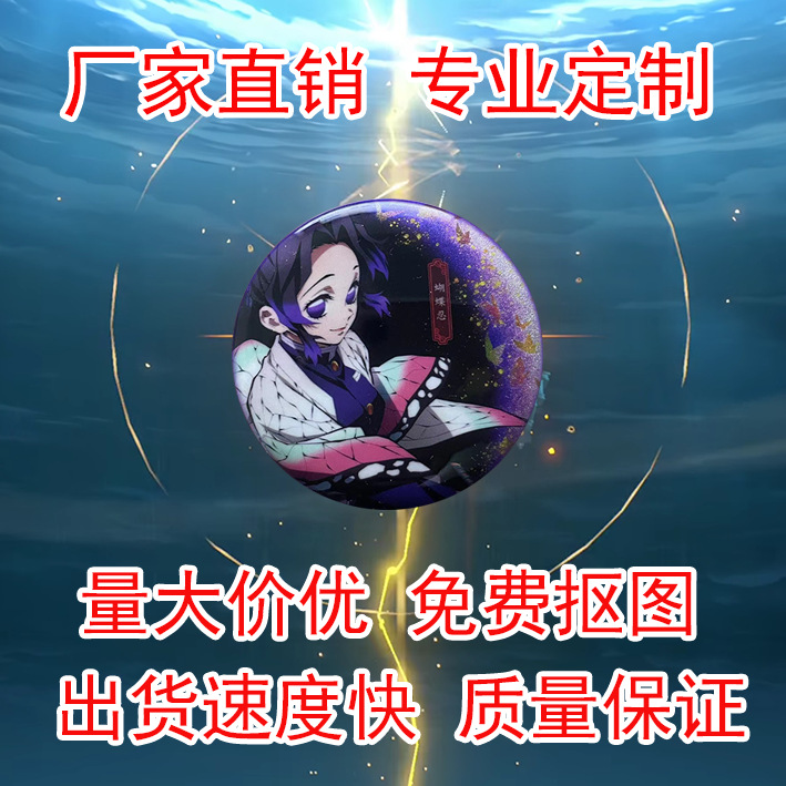 马口铁徽章双闪吧唧谷子反光拉丝自印泡面二次元周边动漫方形胸章
