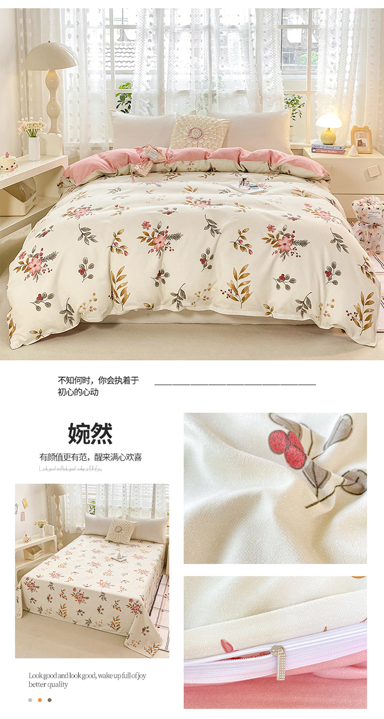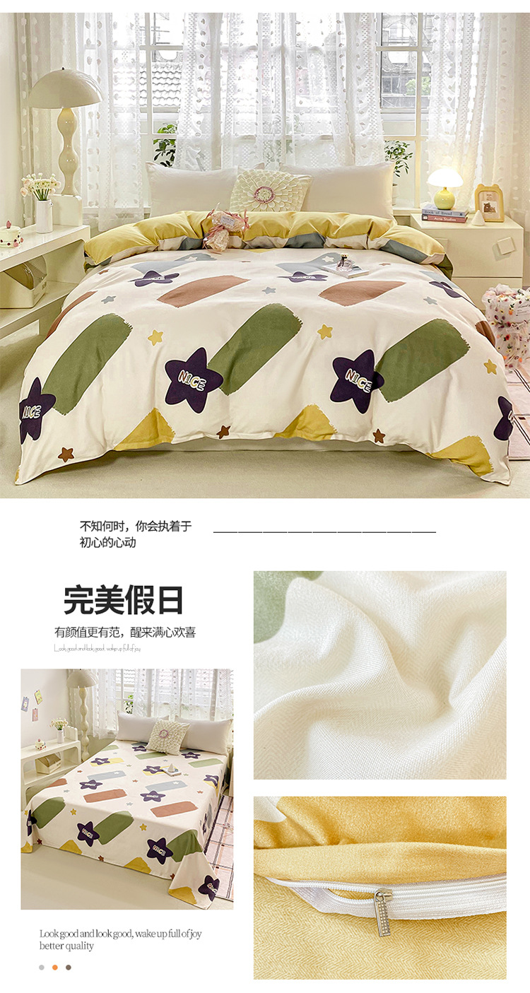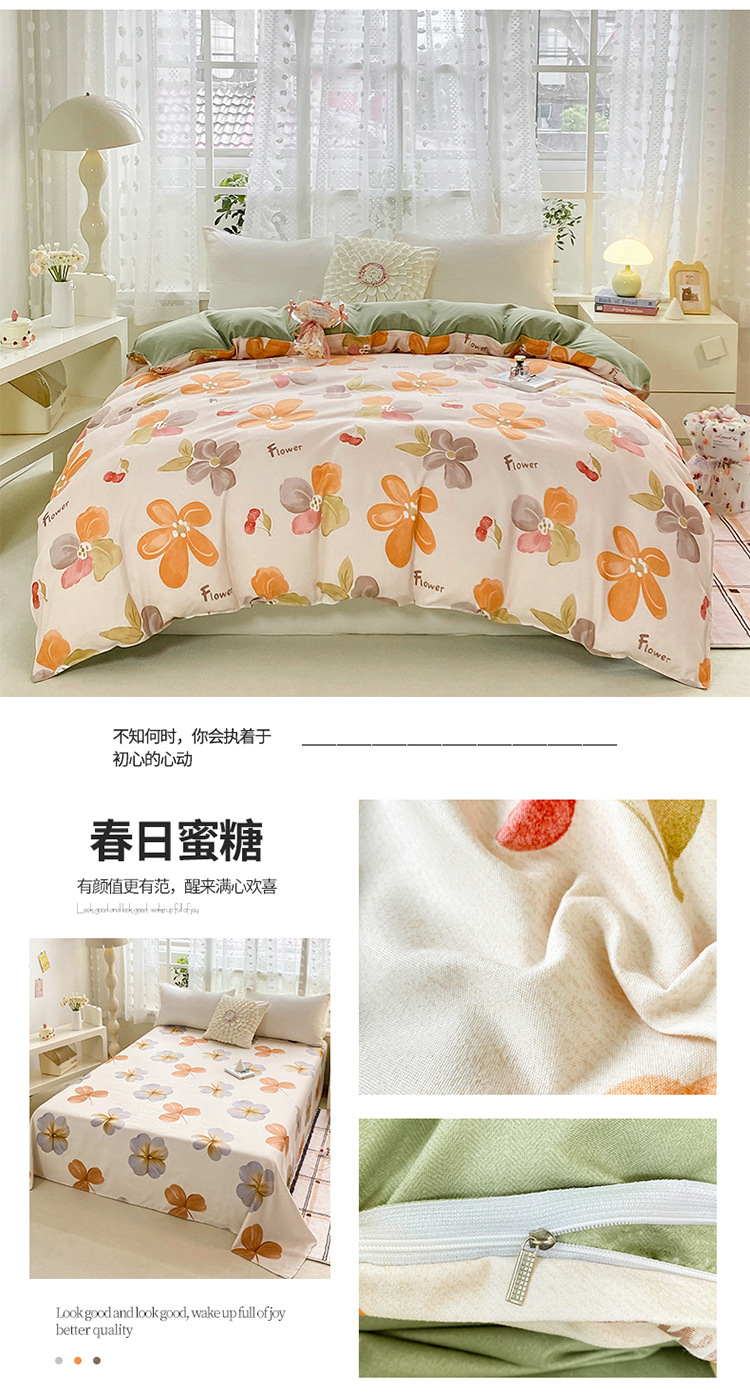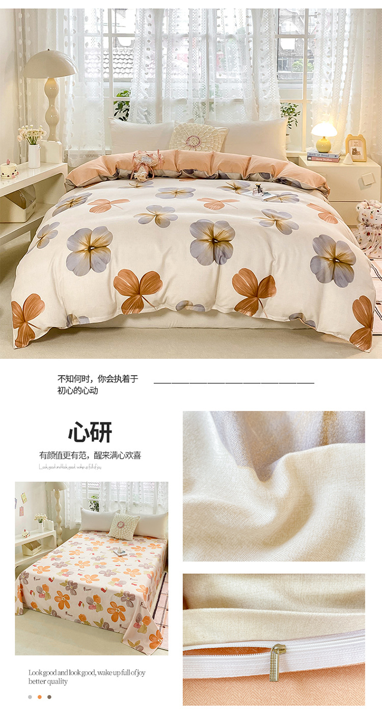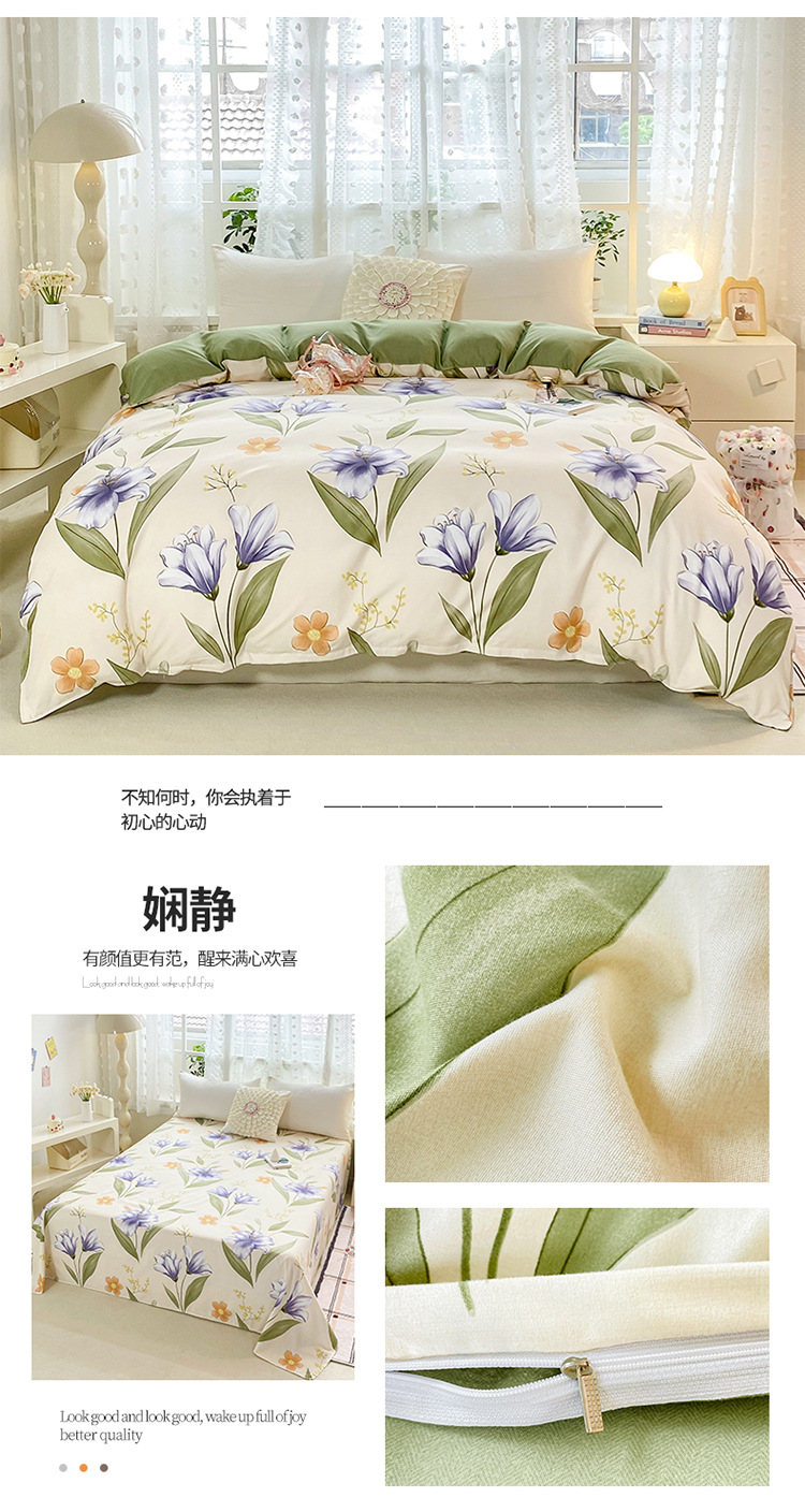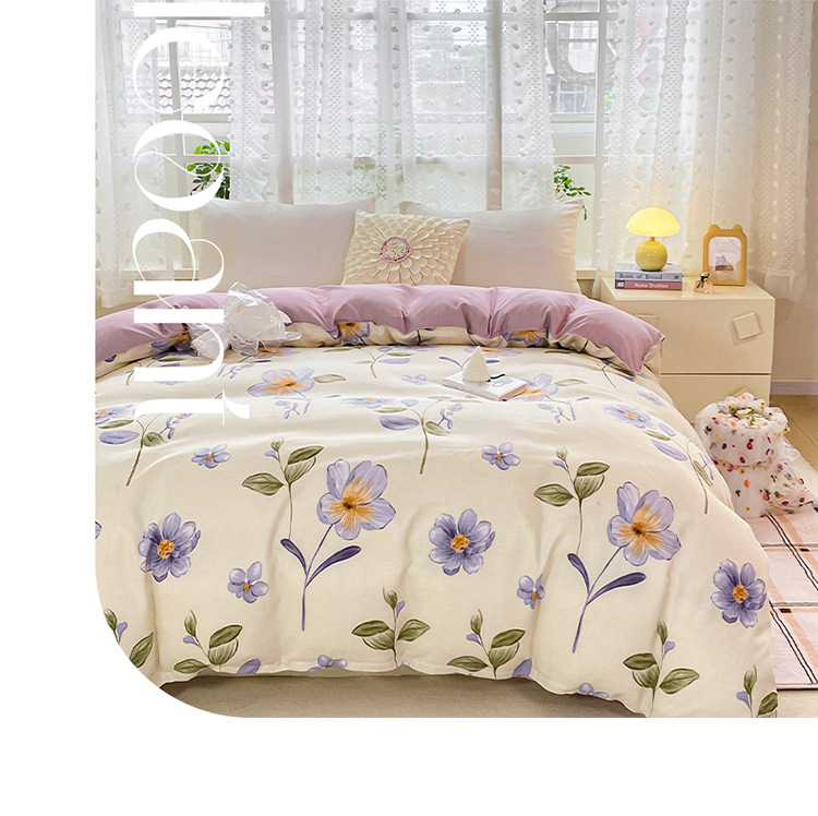 a类水洗棉印花单人被套床上用品四件套加厚磨毛双人床单直播代发