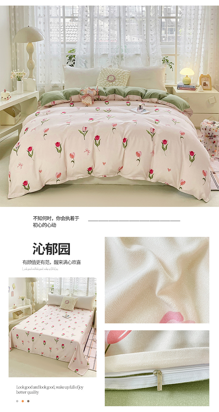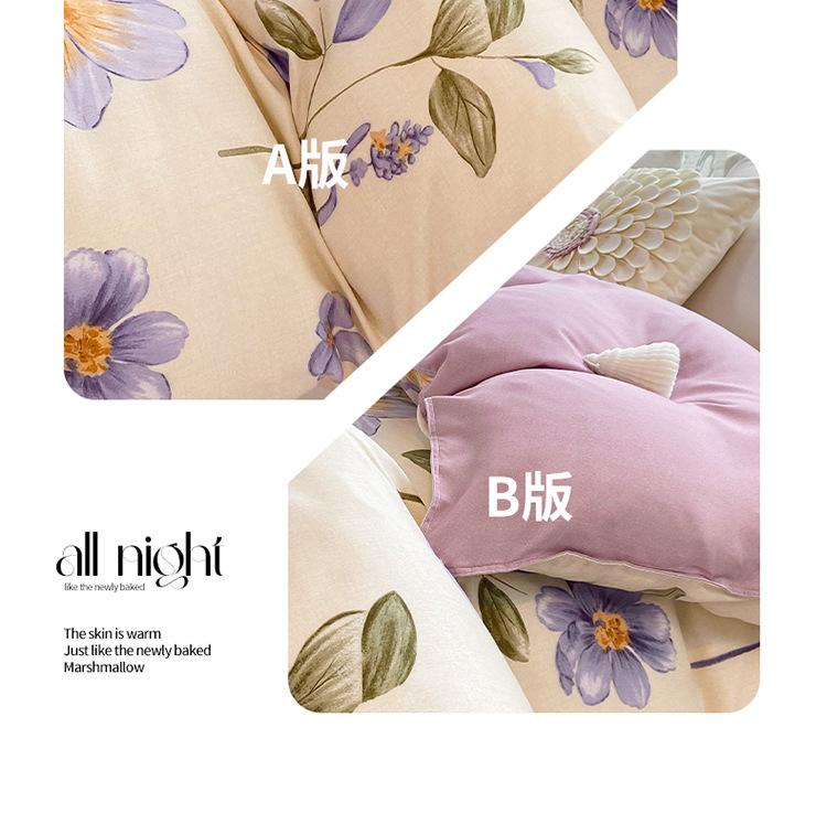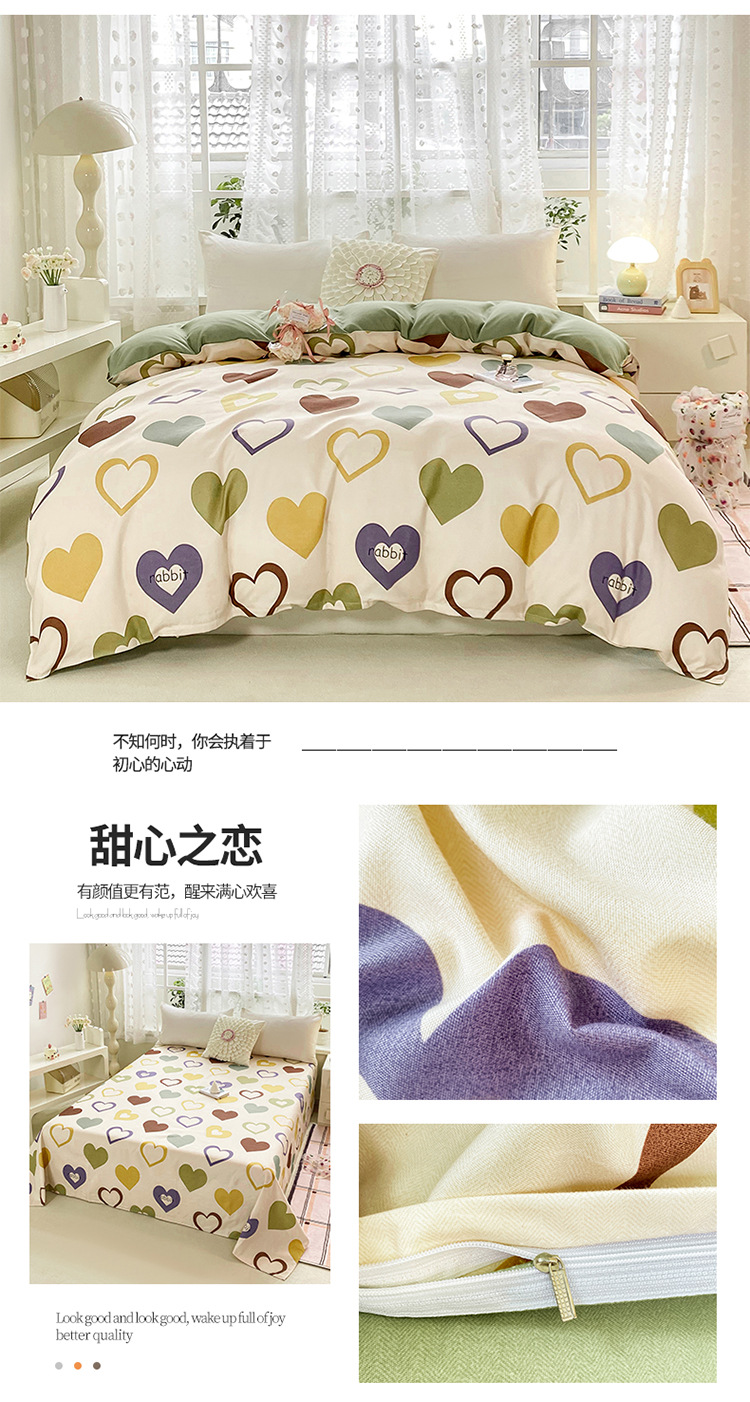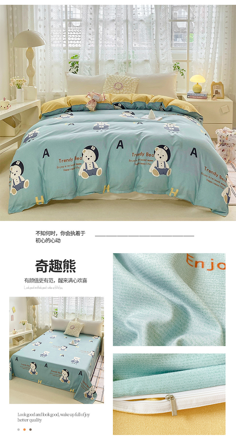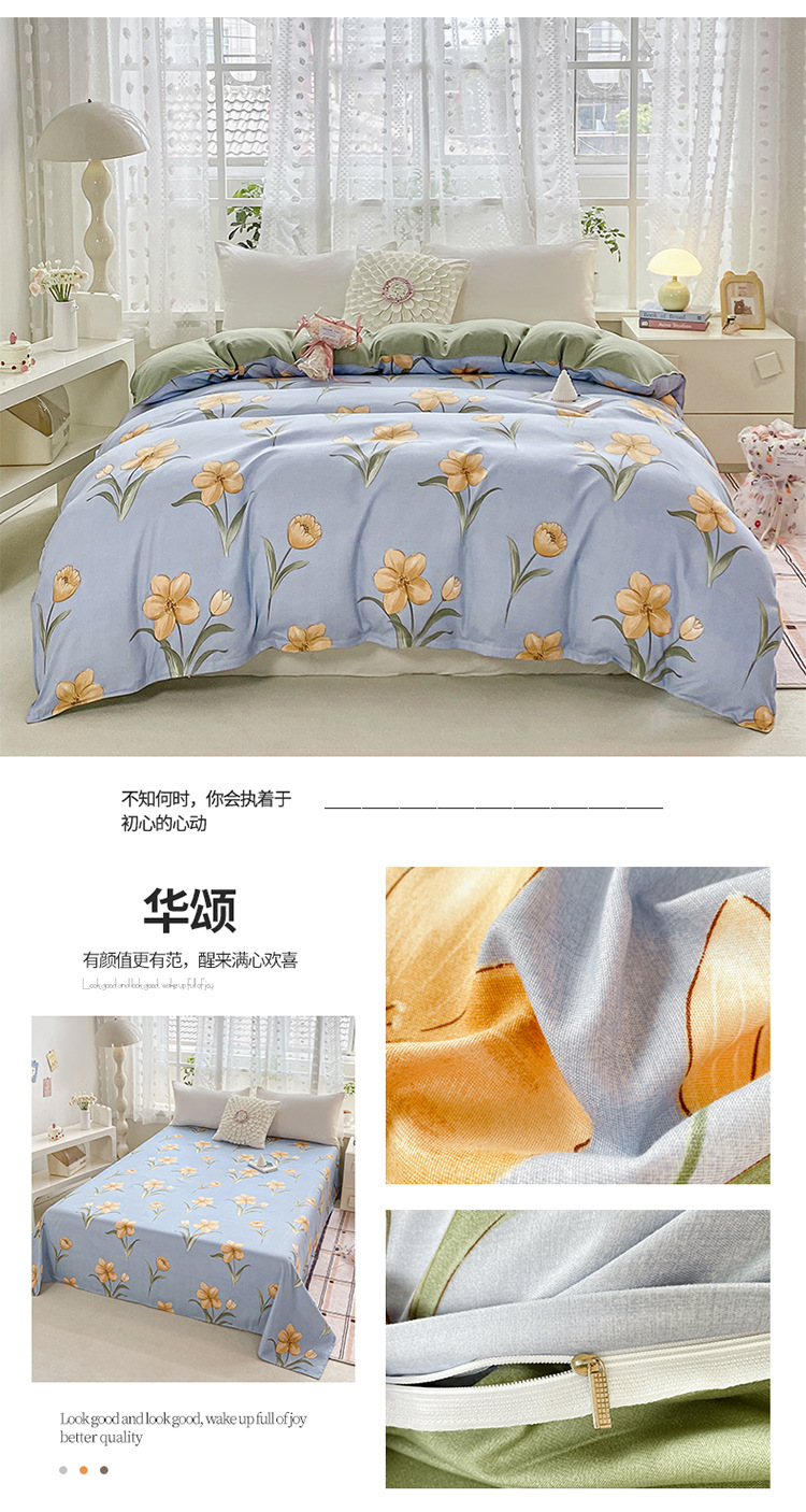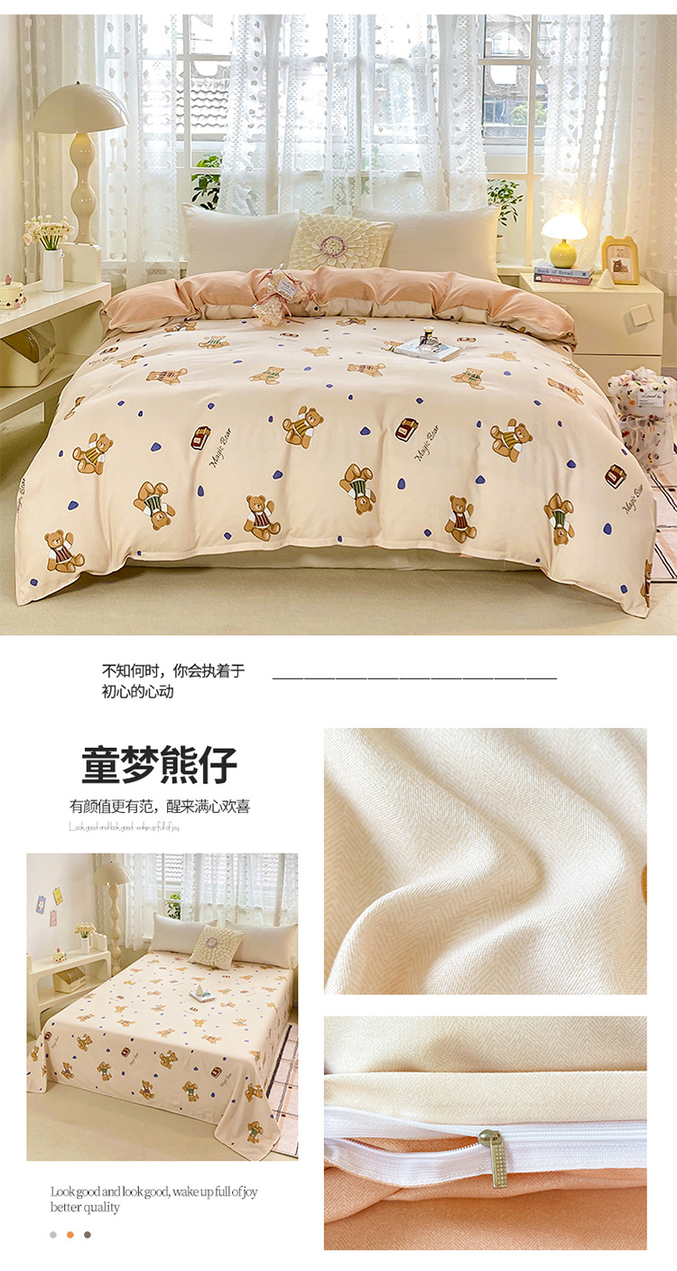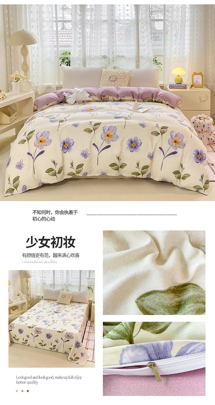 a类水洗棉印花单人被套床上用品四件套加厚磨毛双人床单直播代发