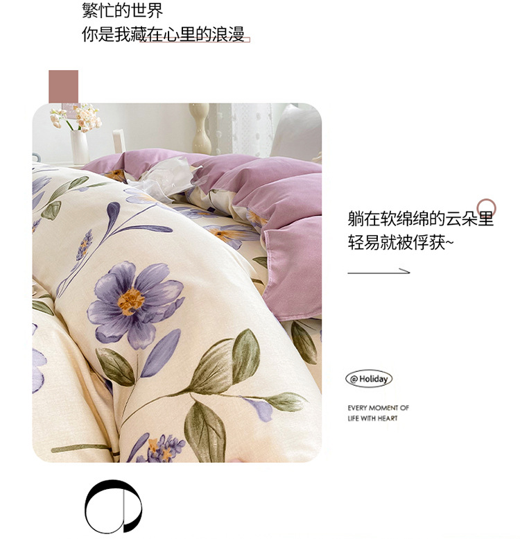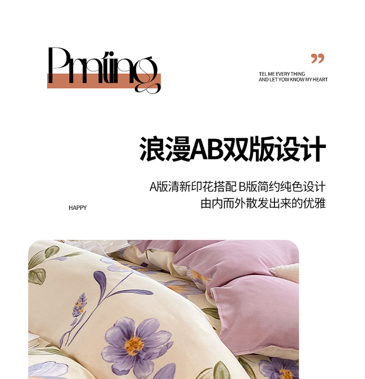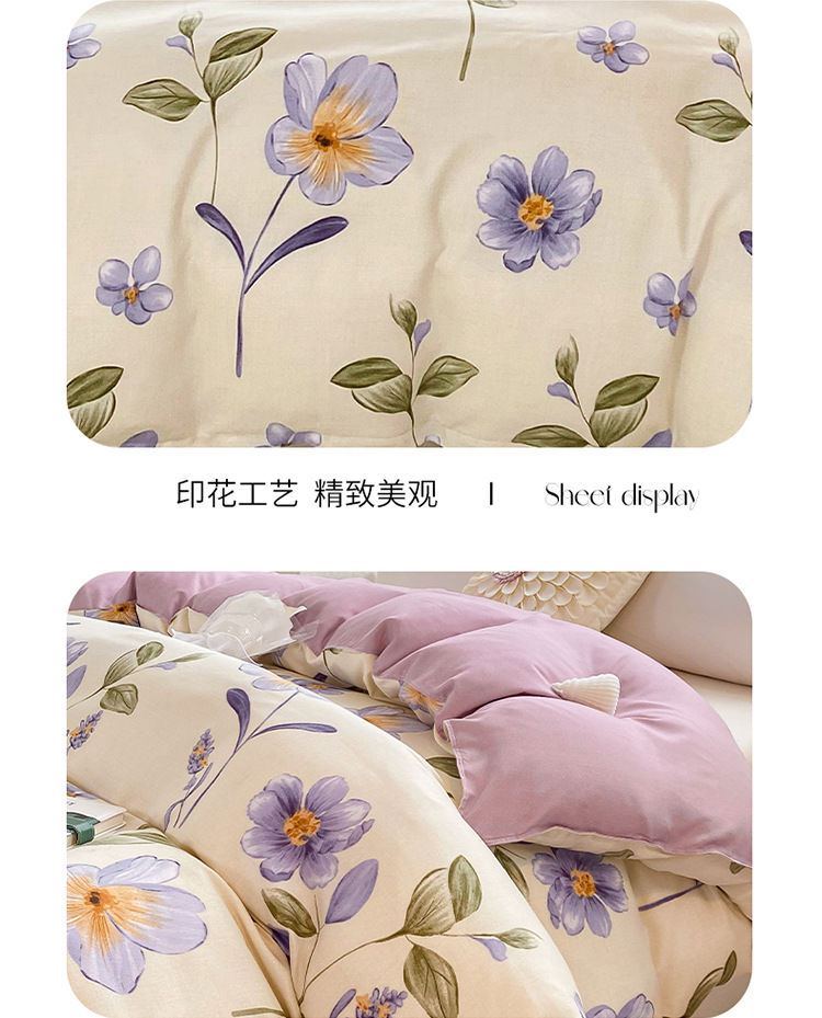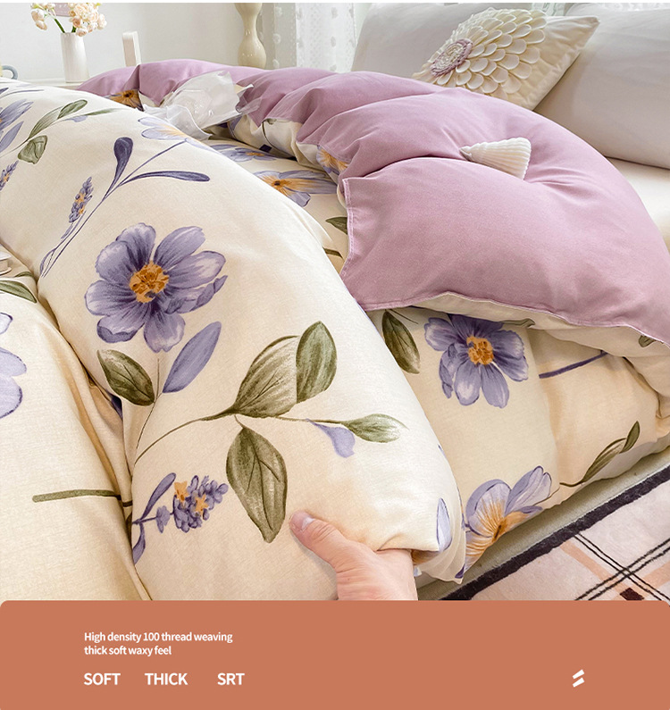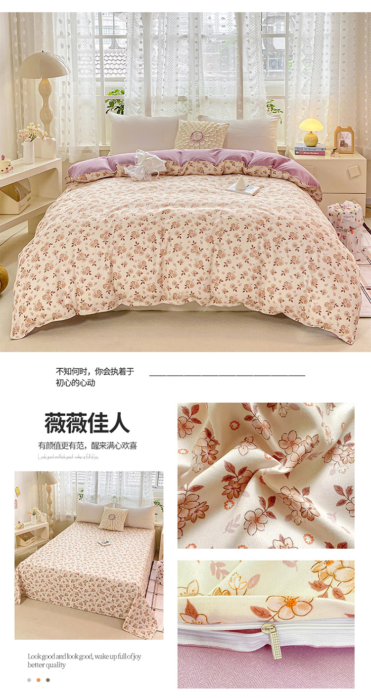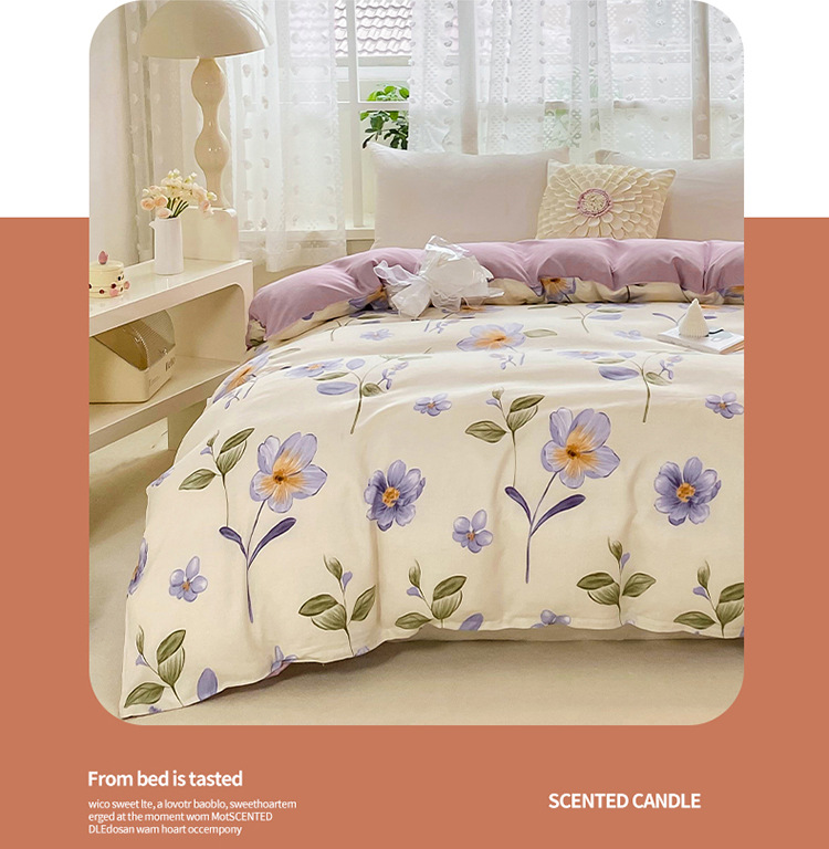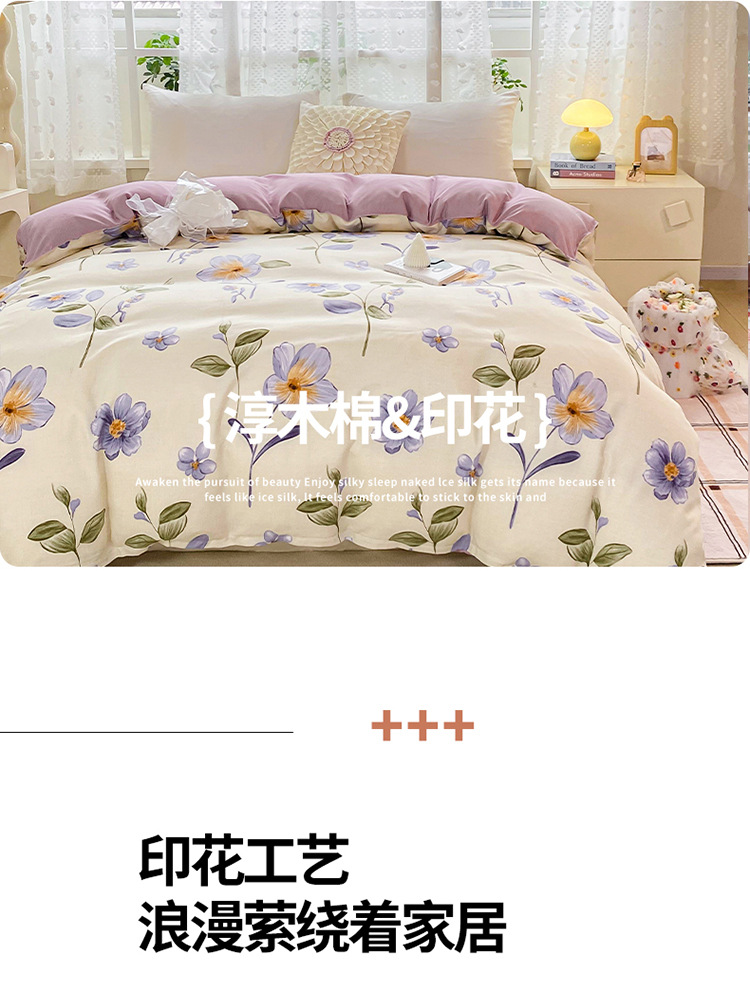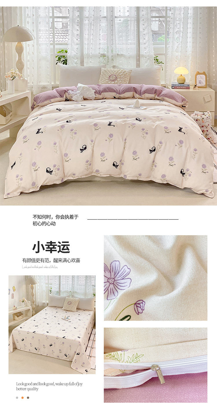 a类水洗棉印花单人被套床上用品四件套加厚磨毛双人床单直播代发