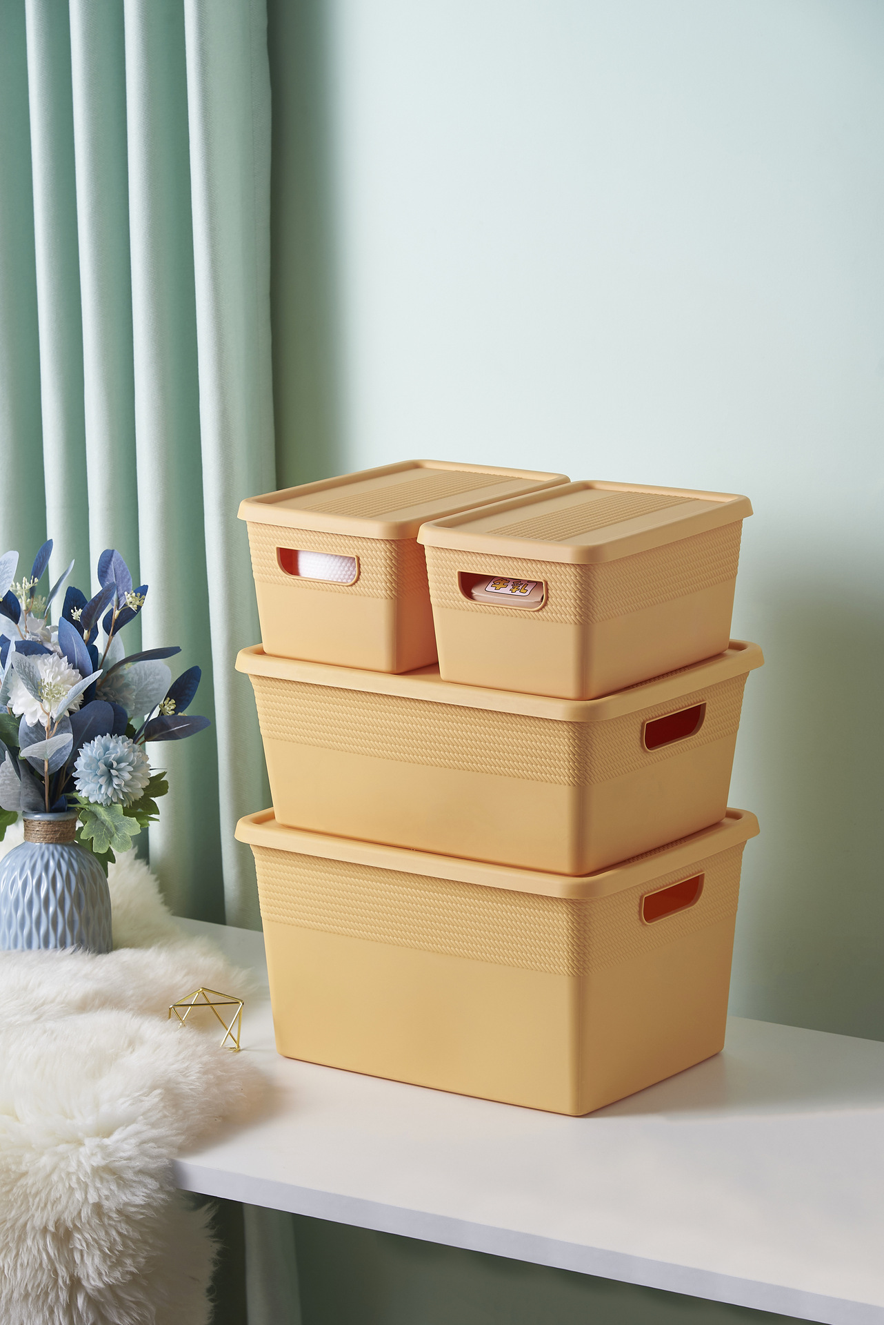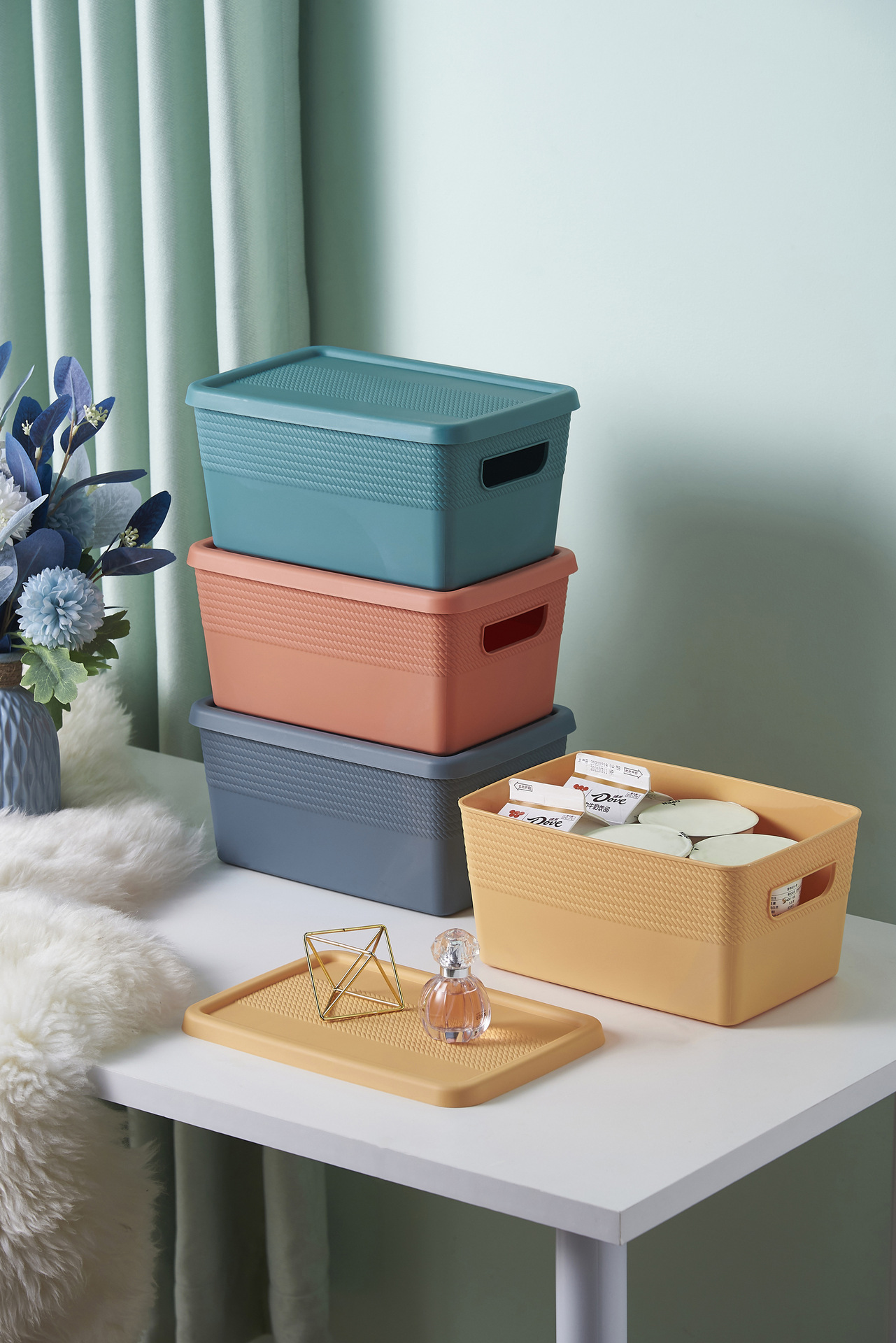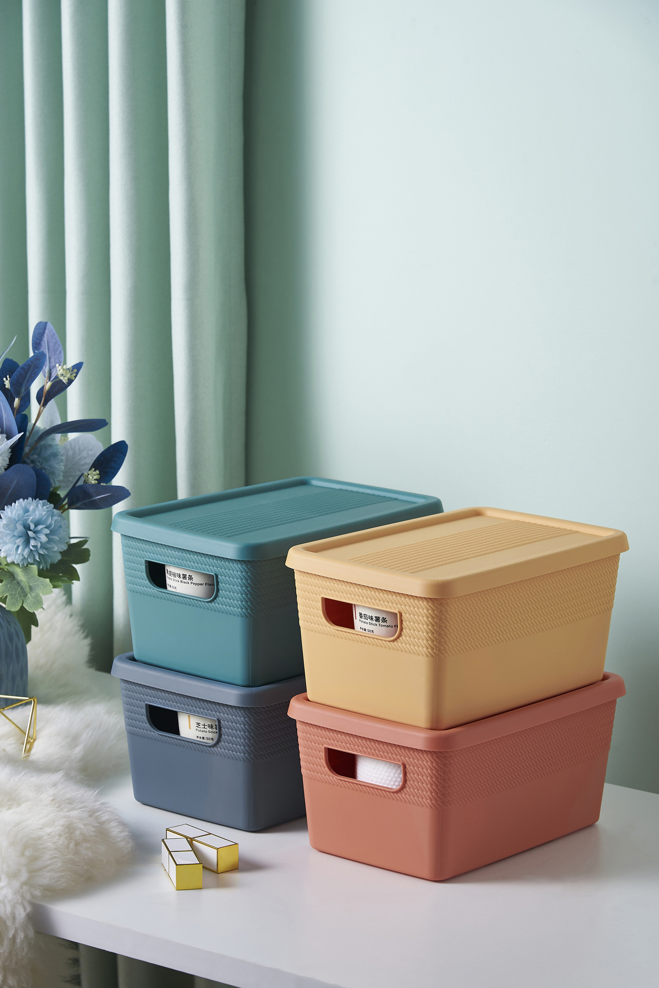 零食储物筐可爱宿舍家用带盖桌面收纳盒杂物整理箱塑料篮