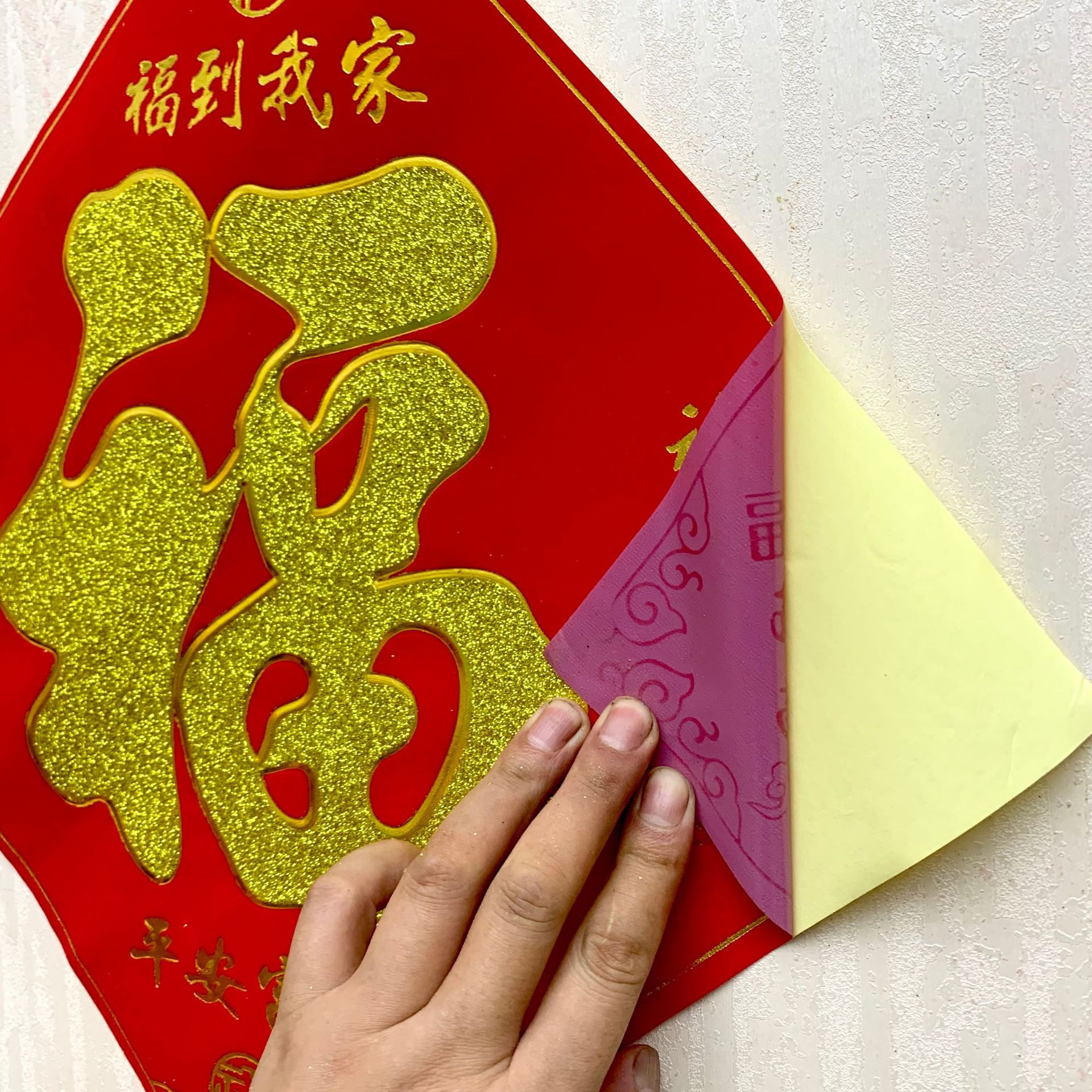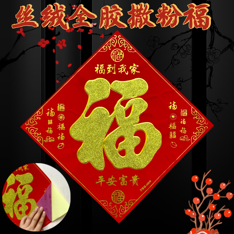 全背胶丝绒撒粉福字福到我家撕不破春节新款金粉自粘丝绒福字贴