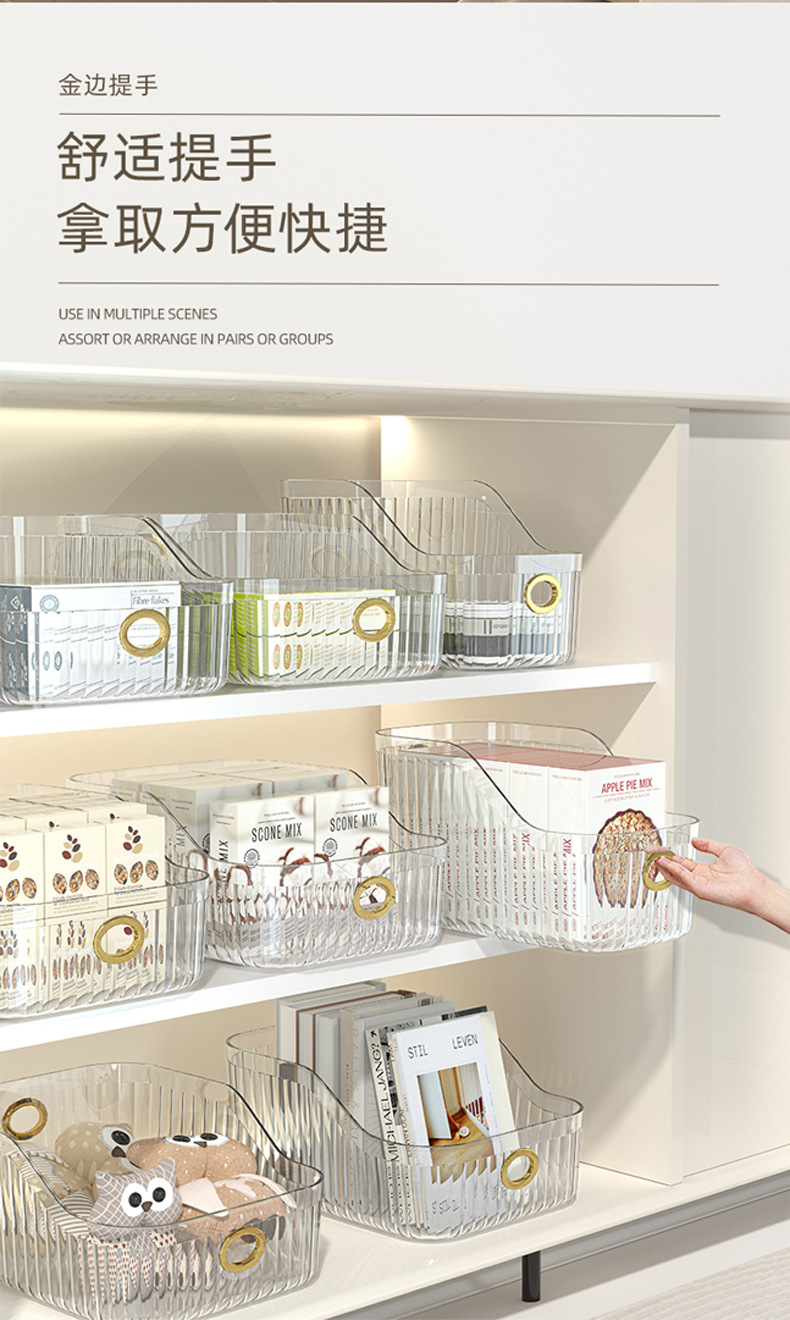 家用厨房浴室卫生间客厅茶几置物收纳盒PET桌面整理筐化妆护肤品