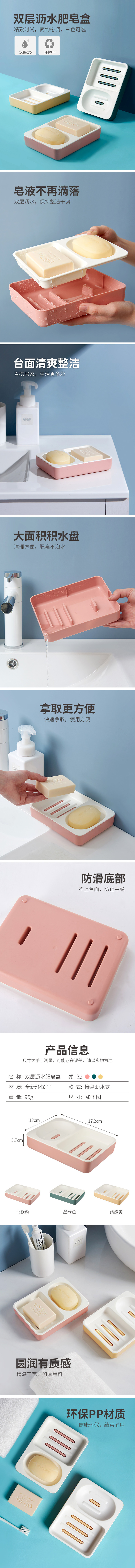 双层两格收纳肥皂沥水盒1305香皂盒双格塑料皂盒家居卫浴肥皂盒