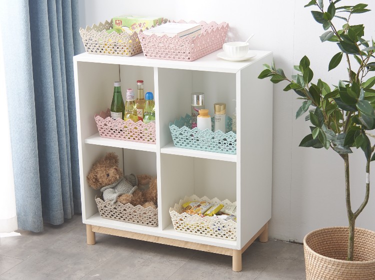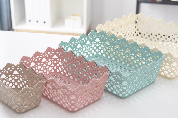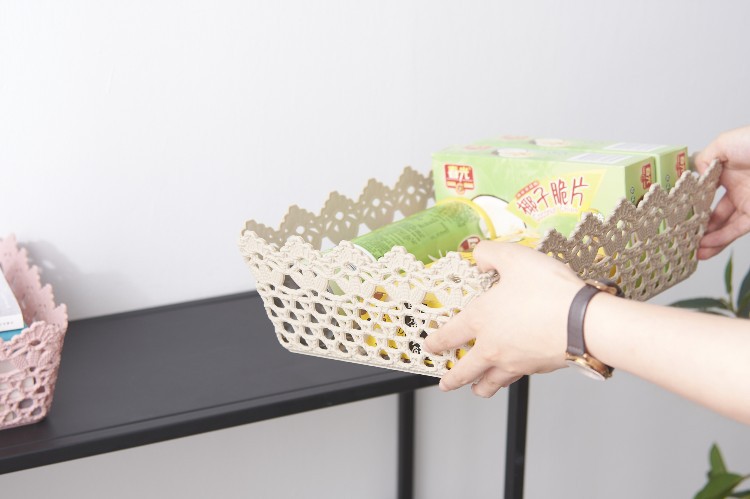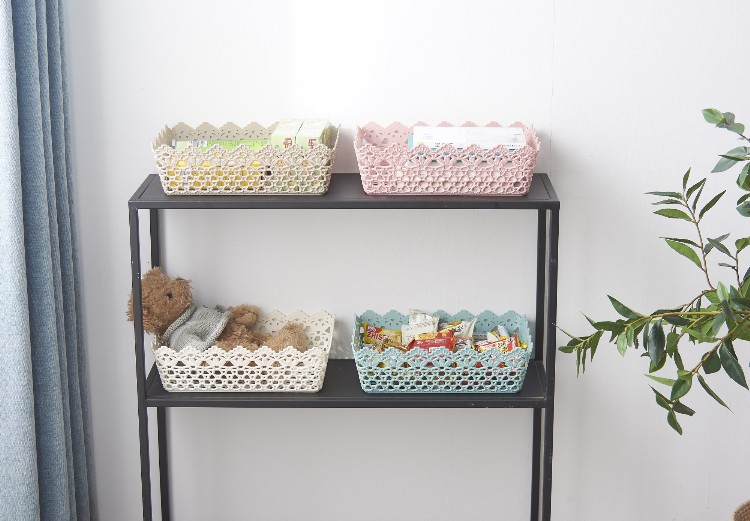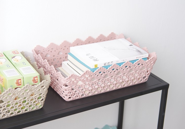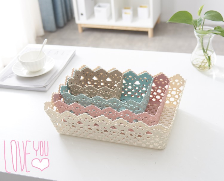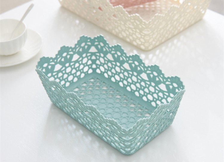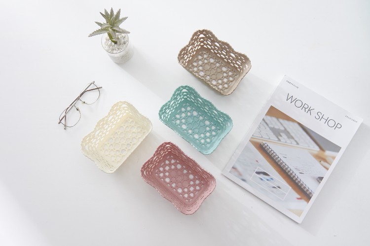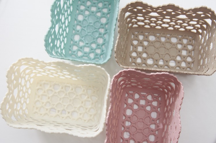 长方形韩式可爱仿藤编收纳盒 置物篮 塑料家居镂空收纳框