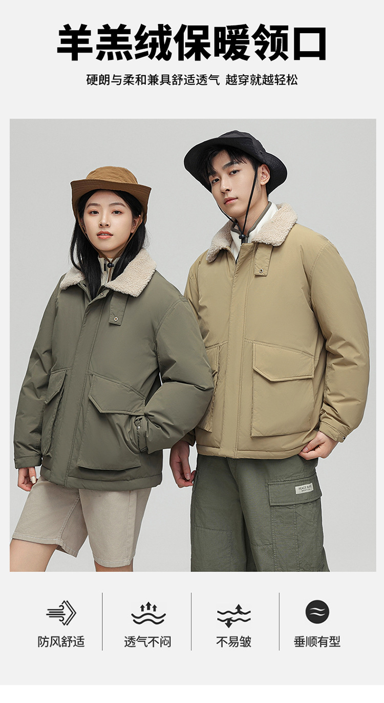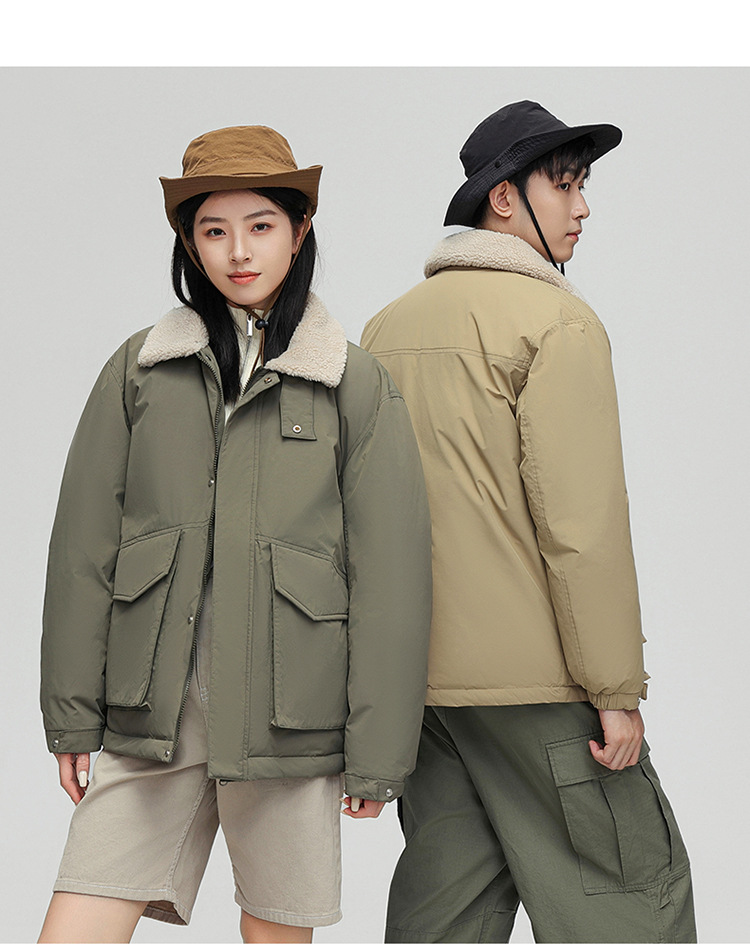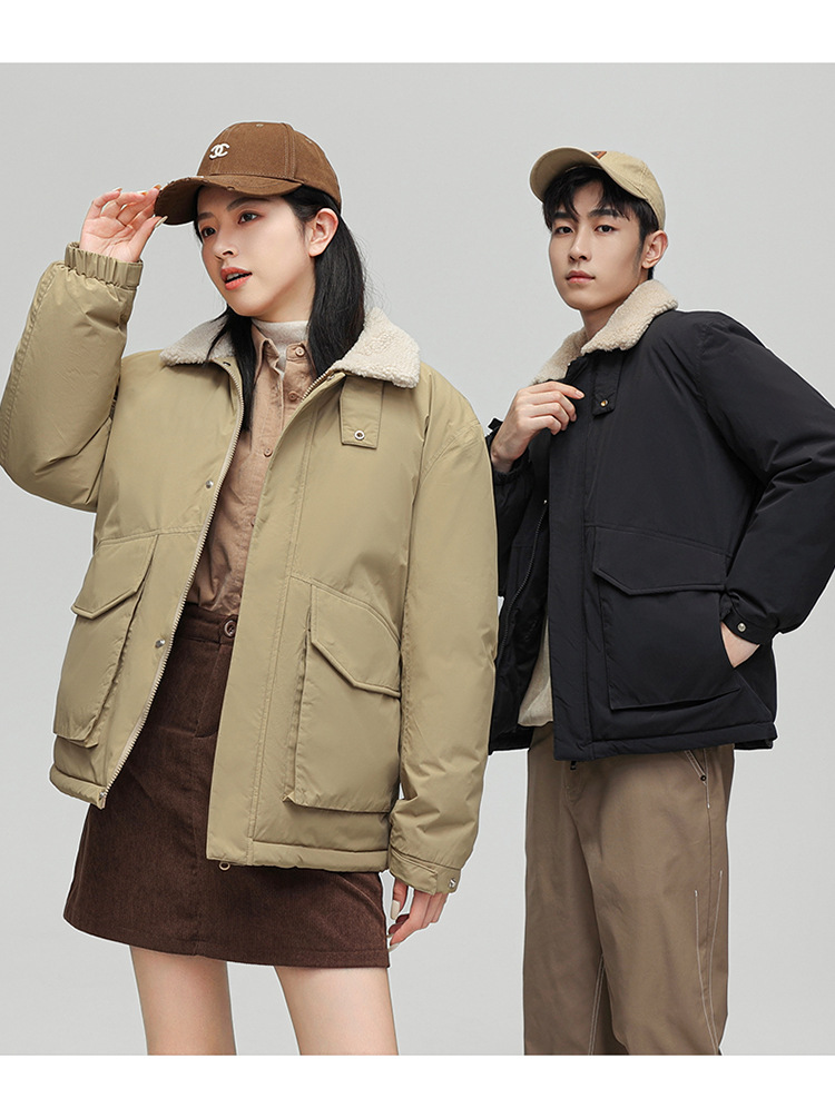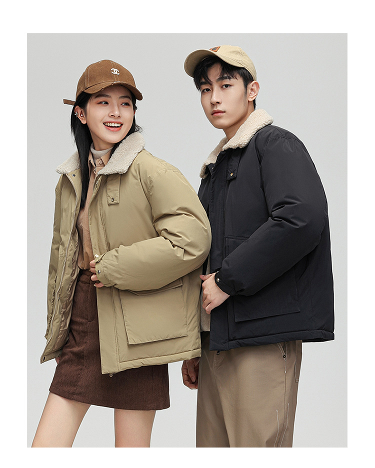 羽绒服男士毛领外套韩版保暖休闲情侣宽松冬季工装90白鸭绒上衣潮