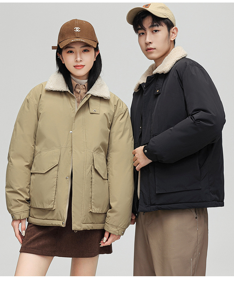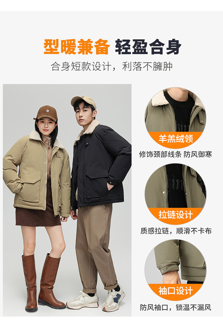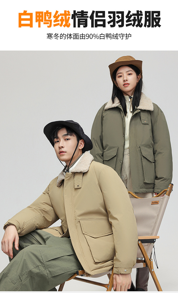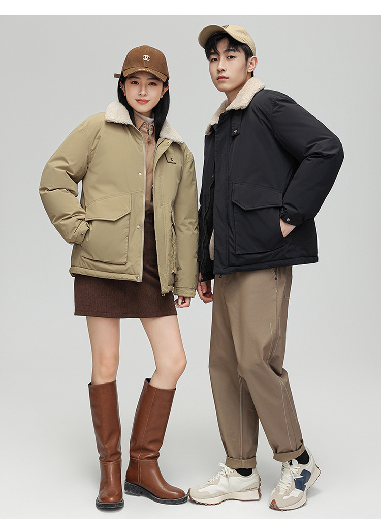 羽绒服男士毛领外套韩版保暖休闲情侣宽松冬季工装90白鸭绒上衣潮