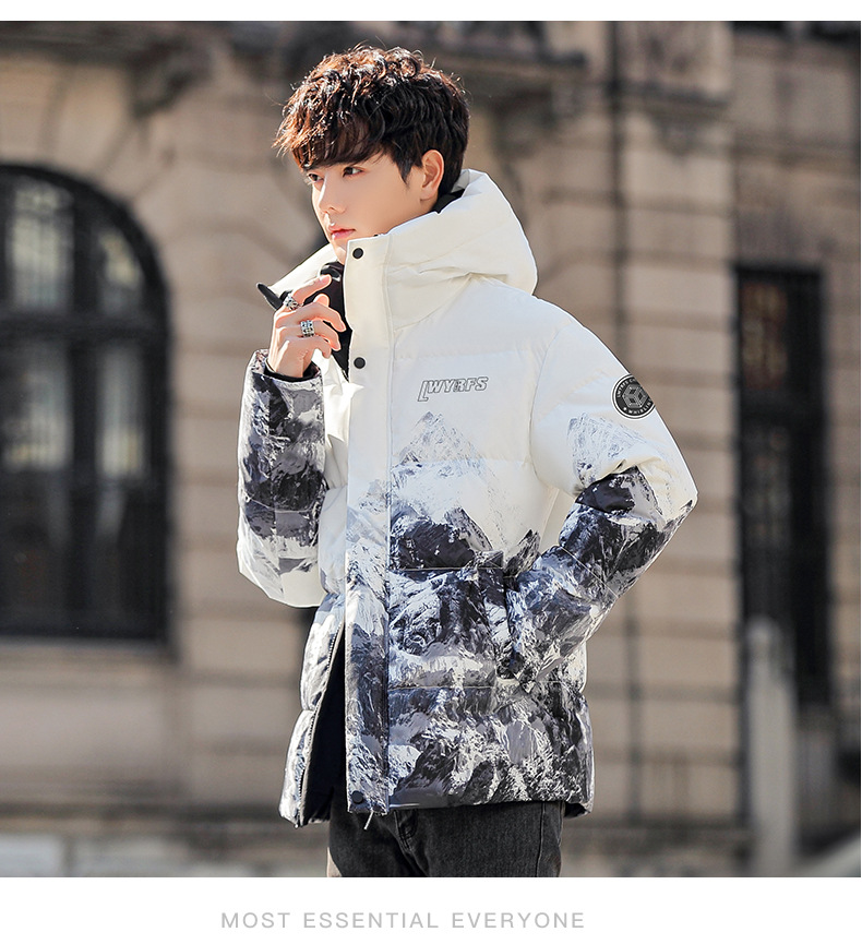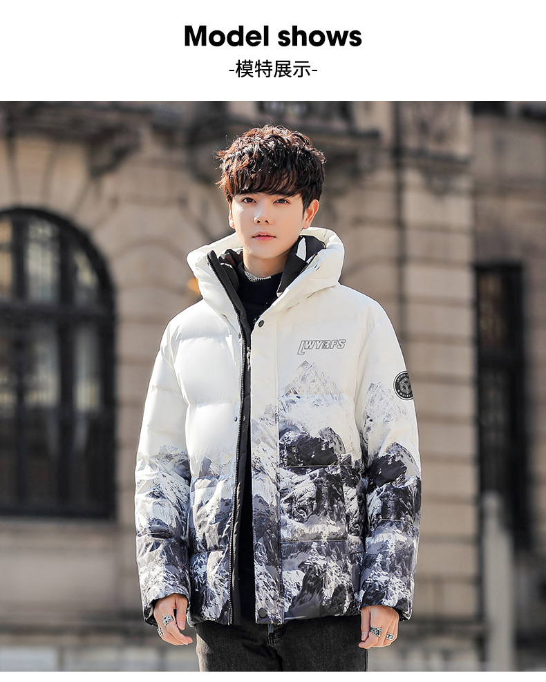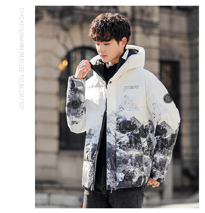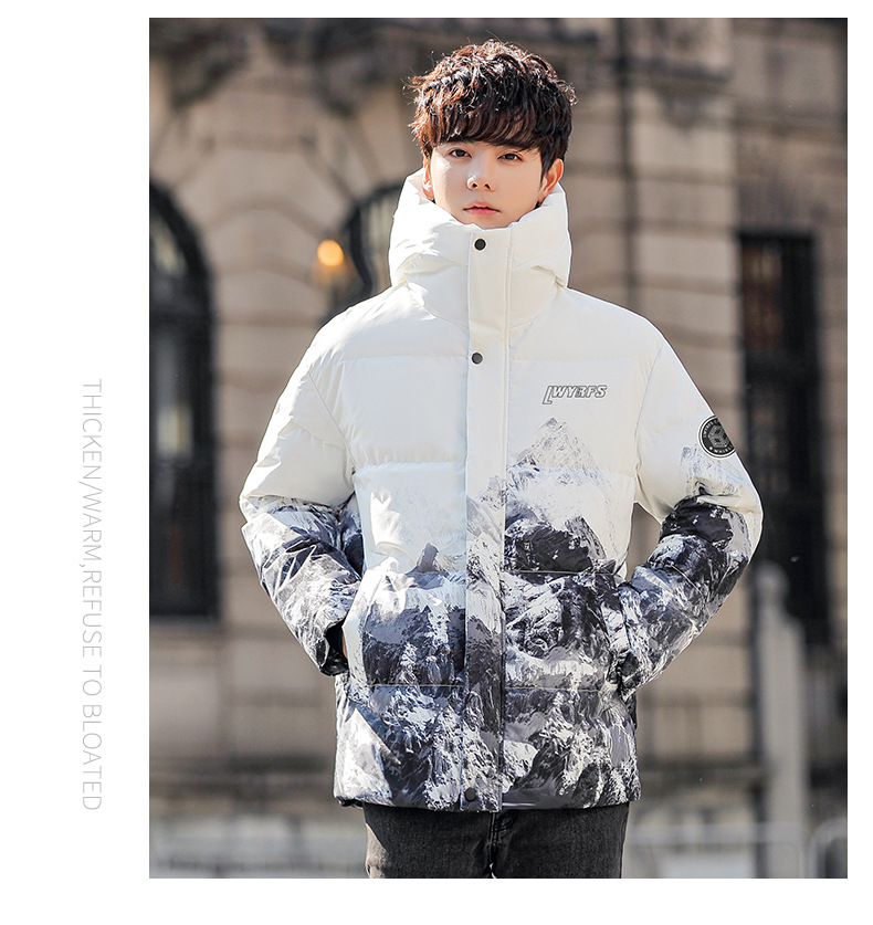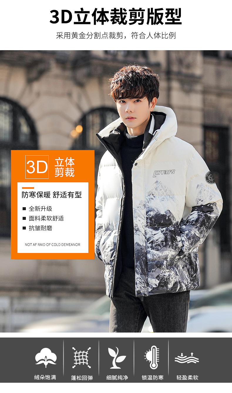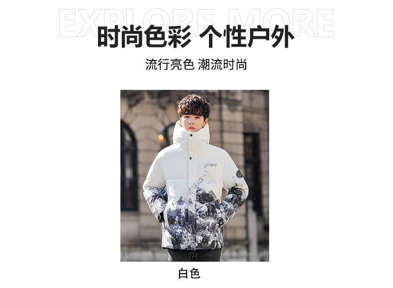 羽绒服男2023短款冬季新款加厚保暖潮流时尚连帽白鸭绒外套情侣装