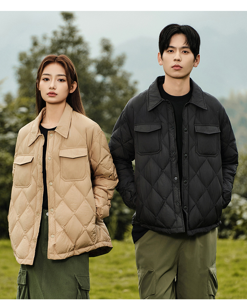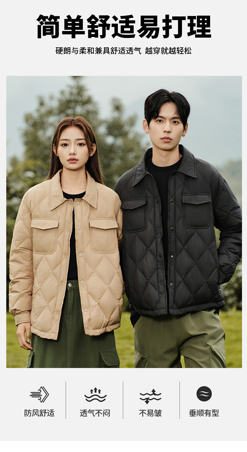 2023情侣羽绒服男士冬季短款翻领轻薄90白鸭绒外套单排扣男款潮牌