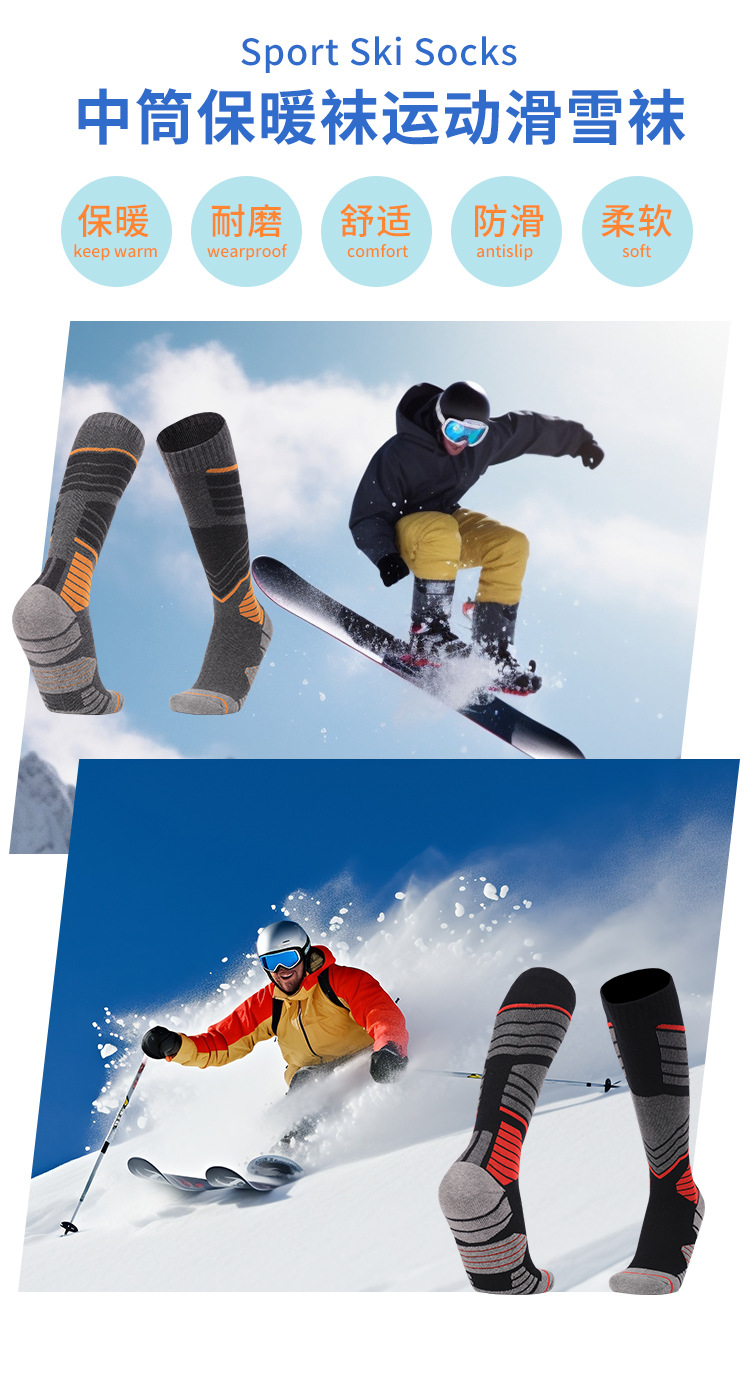 佛山袜子新品冬季棉袜户外加厚保暖袜男士运动吸汗透气长筒袜子