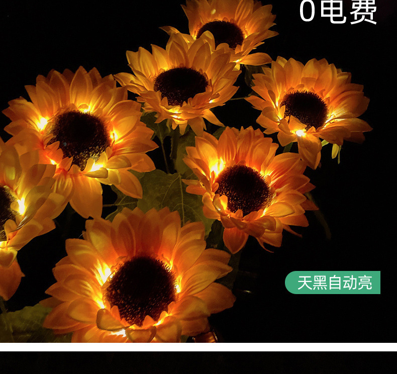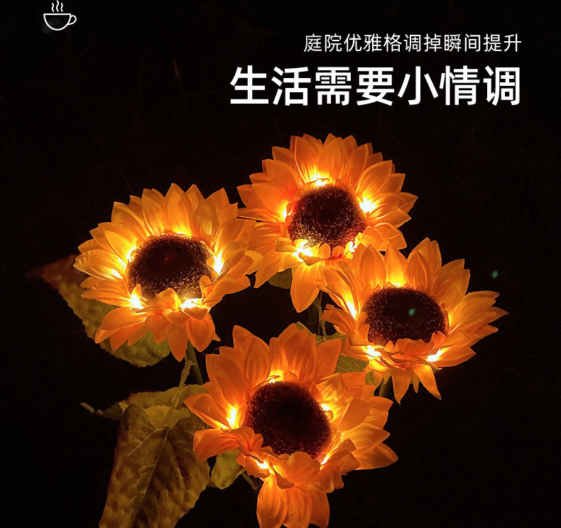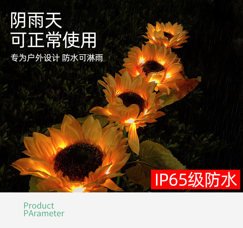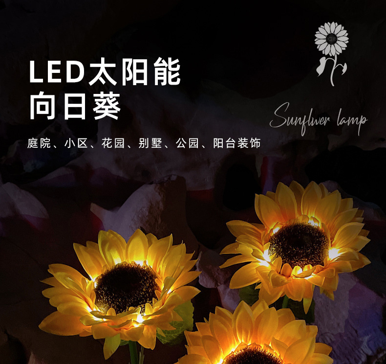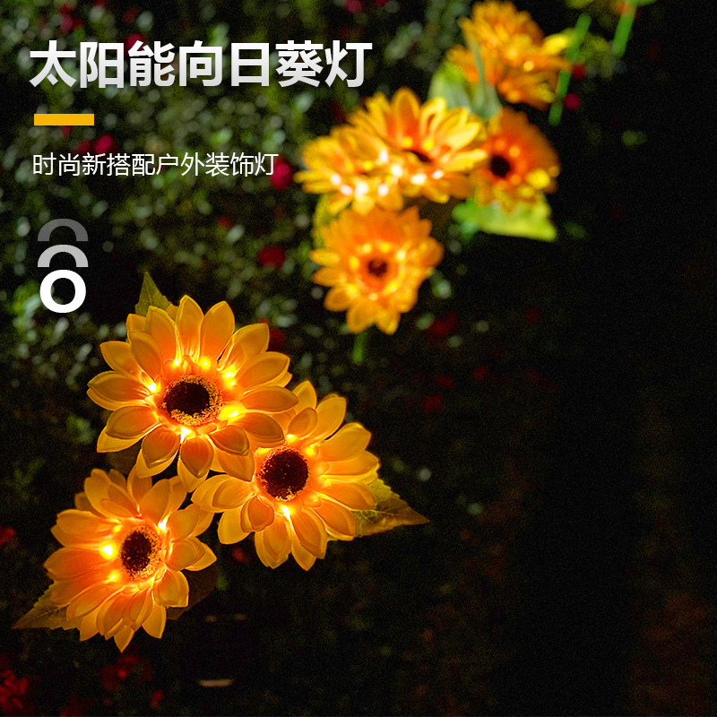 智能光控太阳能向日葵灯 防水仿真庭院景观灯 免充电太阳能户外灯