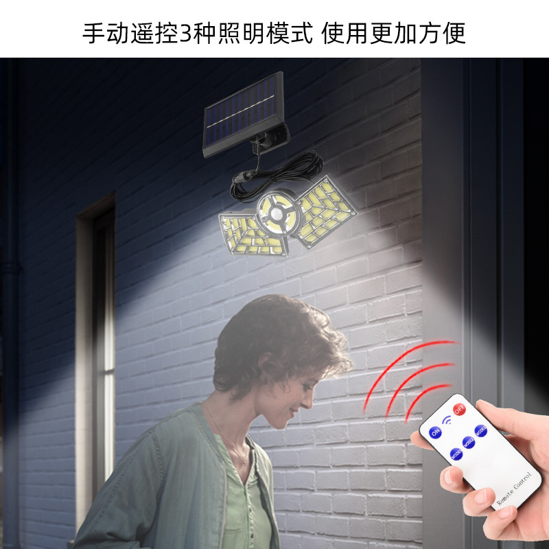 跨境新款太阳能三头分体壁灯户外人体感应灯家用庭院灯车库灯路灯