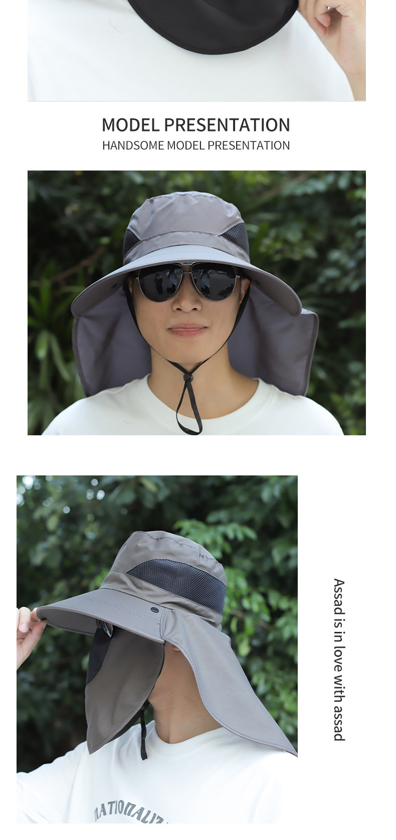 户外钓鱼帽遮阳防晒防紫外线户外钓鱼露营登山遮阳帽大檐遮脸护颈